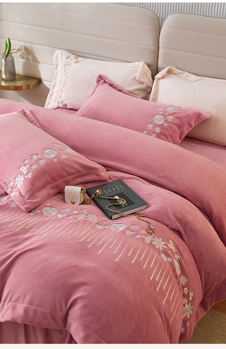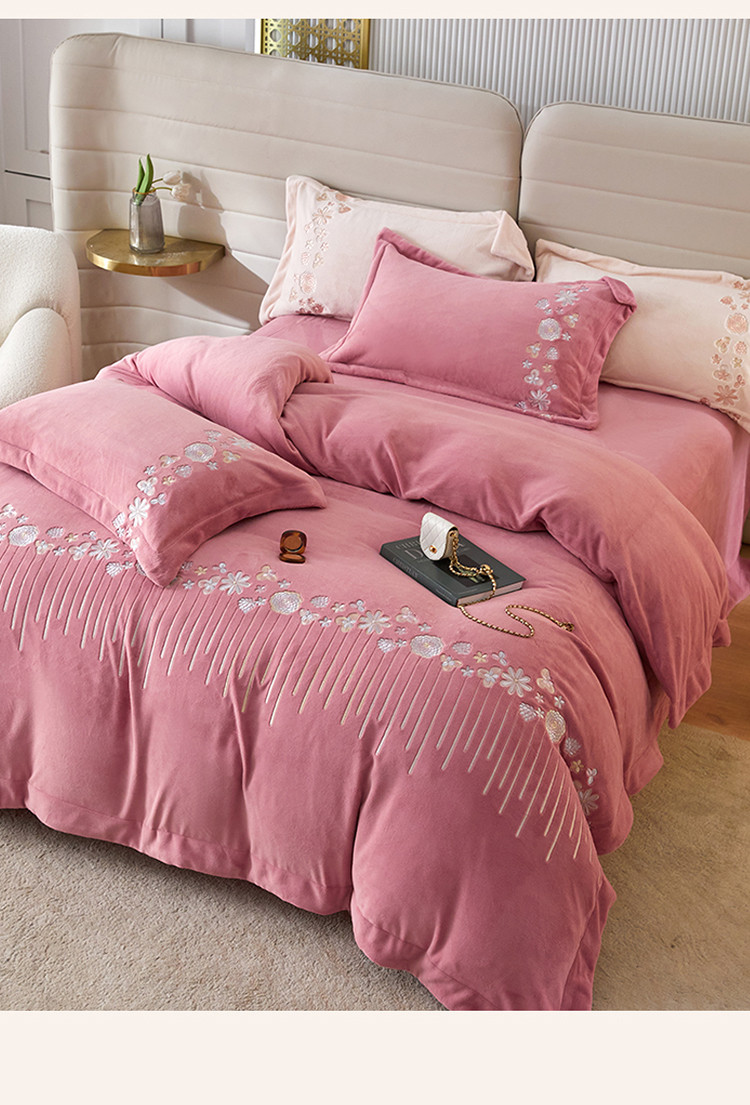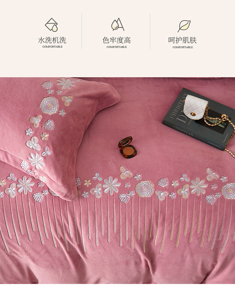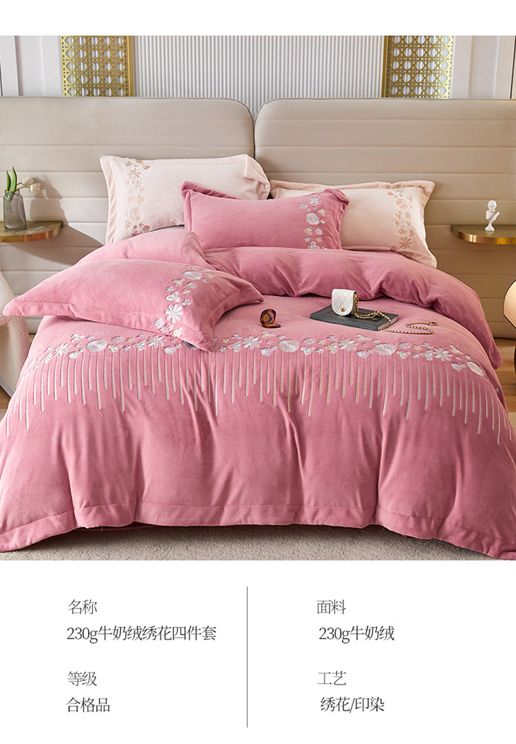 (总)名品优仓 2025新款220克牛奶绒绣花四件套-珊瑚,珊瑚-宝石蓝,珊瑚-粉色,珊瑚-姜黄,珊瑚-米杏,珊瑚-沫粉,珊瑚-杏粉