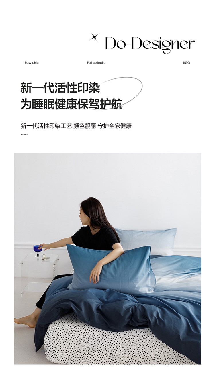 雅居纺 2023新款13070全棉渐变色四件套 苍海