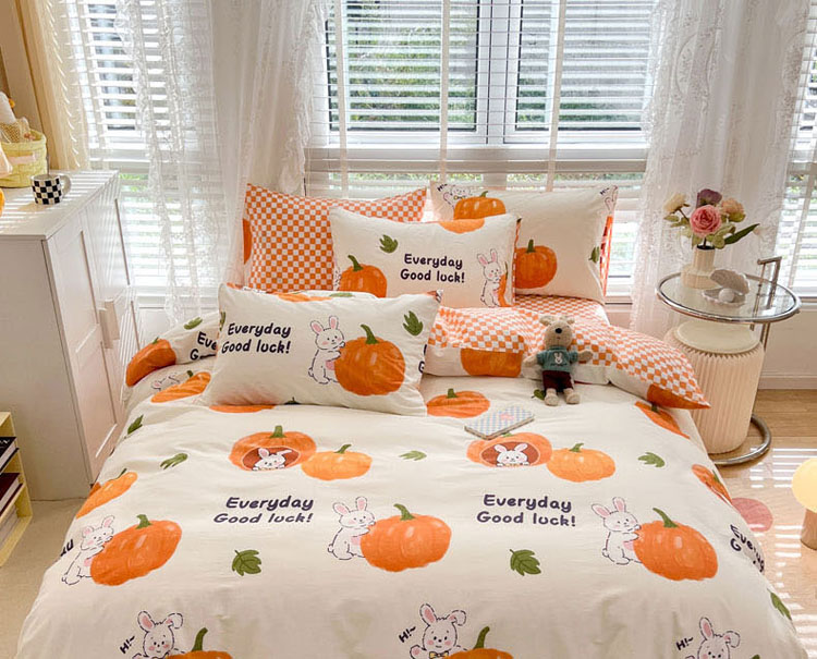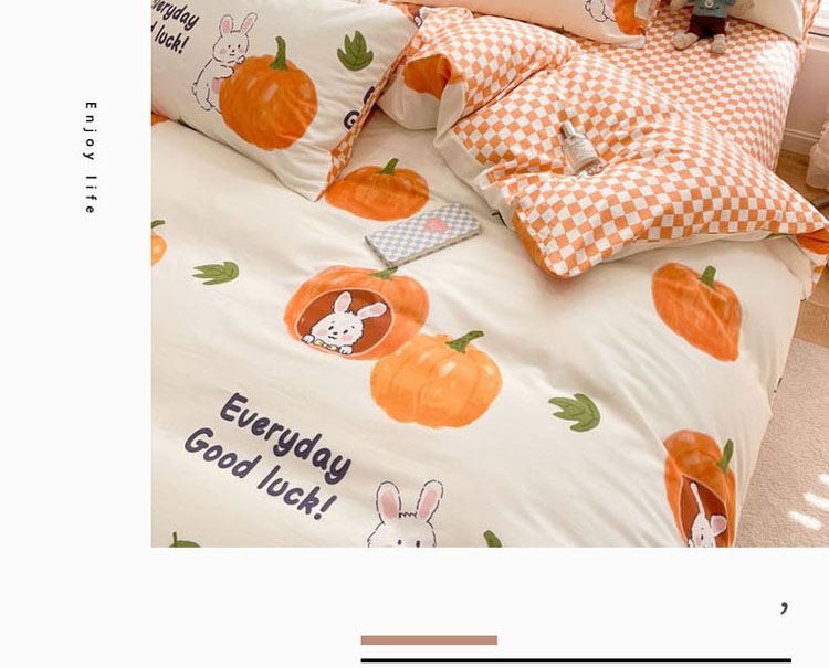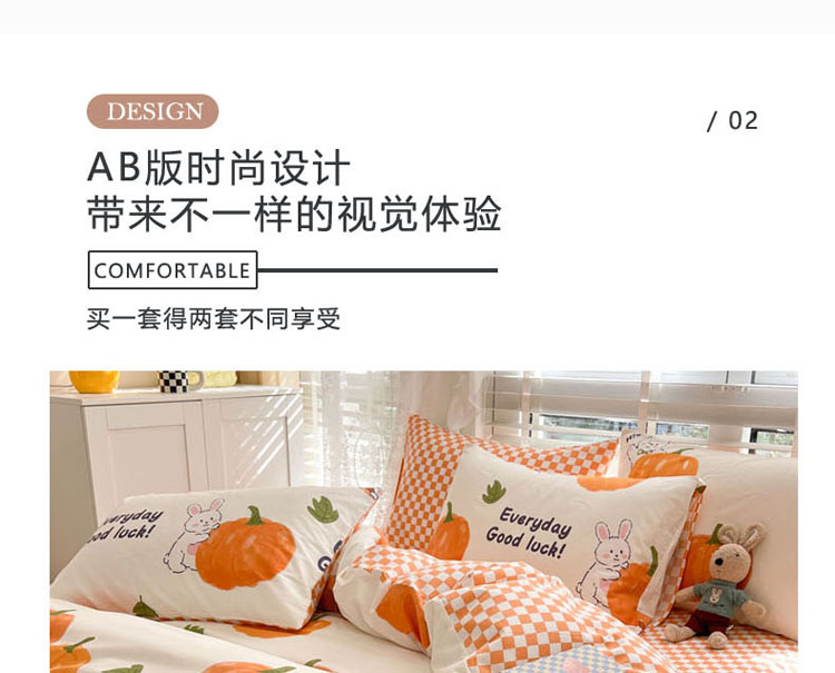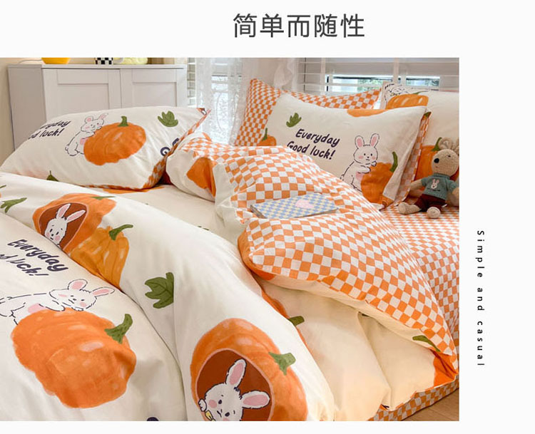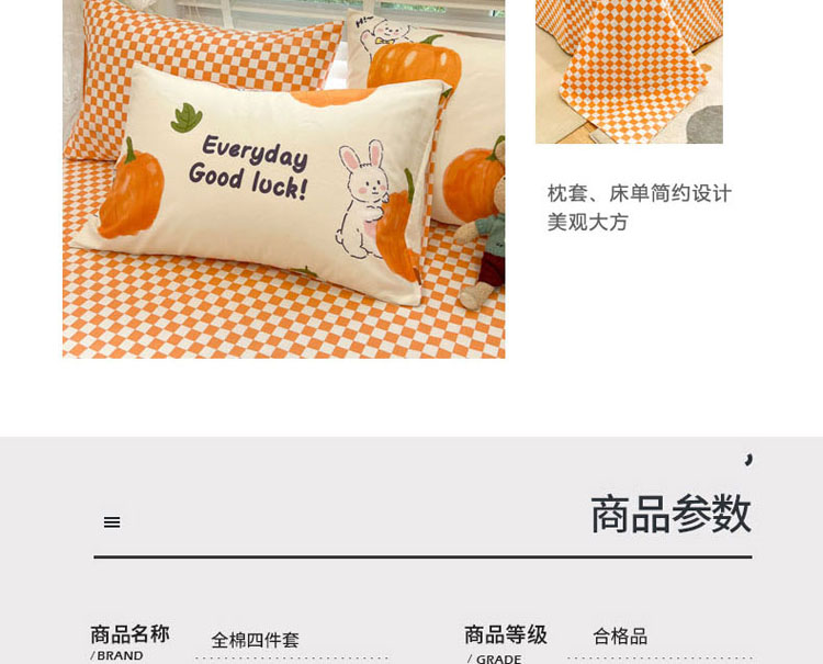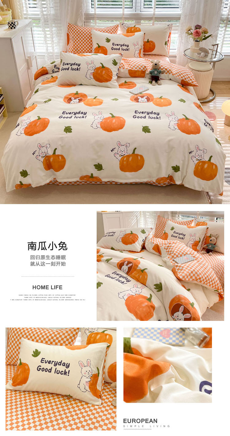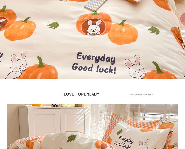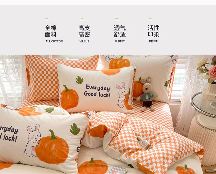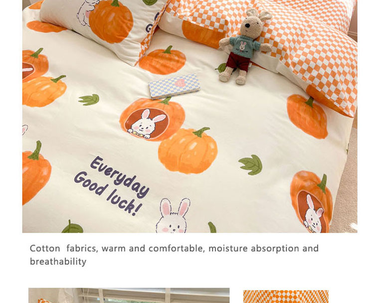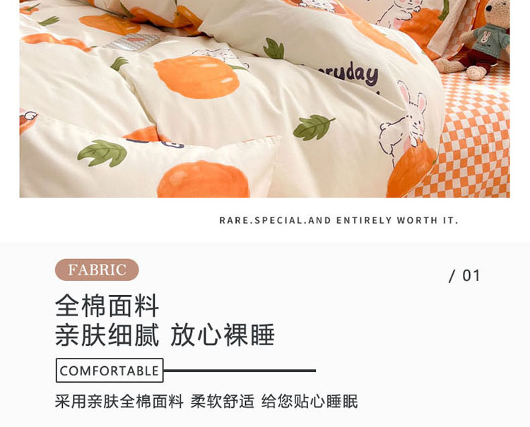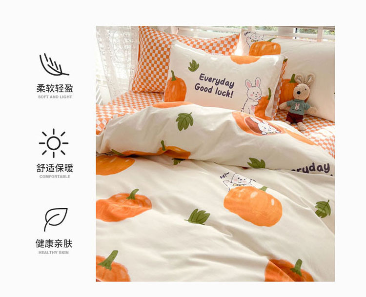 商品名称:梦家居 2023春季新品小清新系列全棉单被套 南瓜小兔