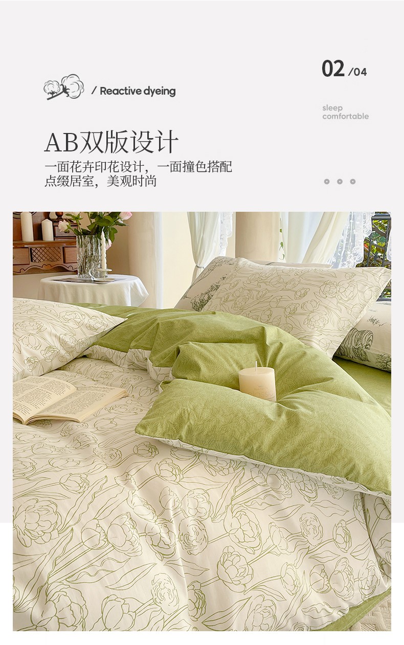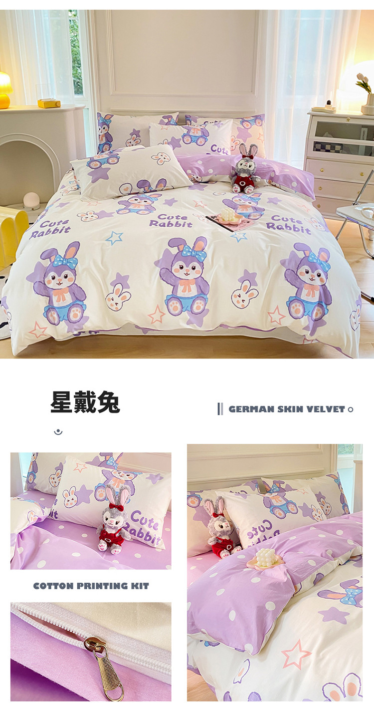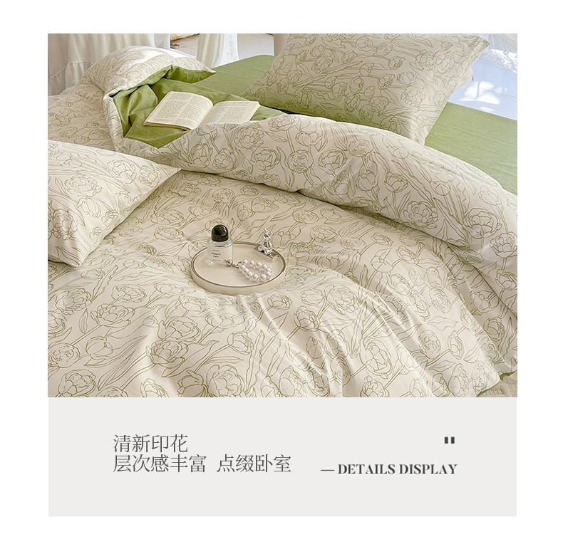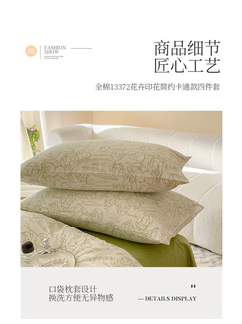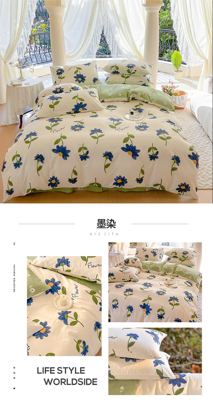 总星巴k家纺 2023新款全棉13372花卉印花简约卡通款多规格四件套