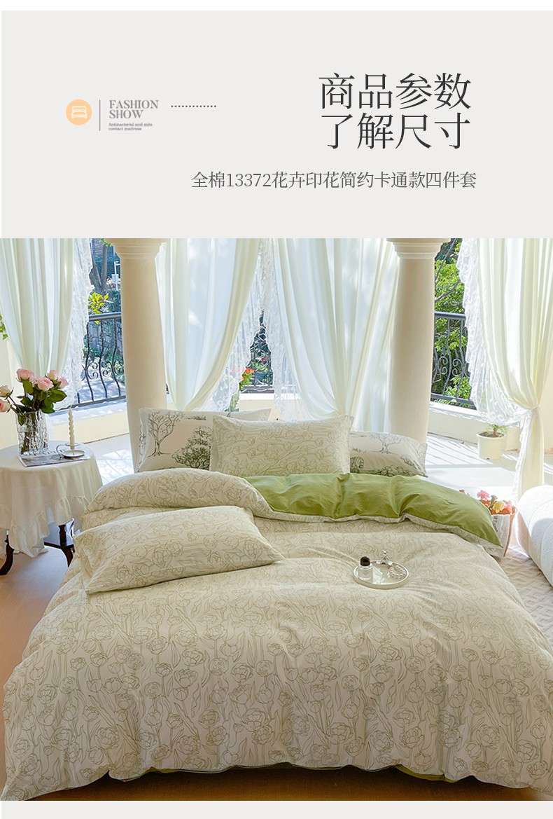商品名称:总星巴k家纺 2023新款全棉13372花卉印花简约卡通款多规格四件套