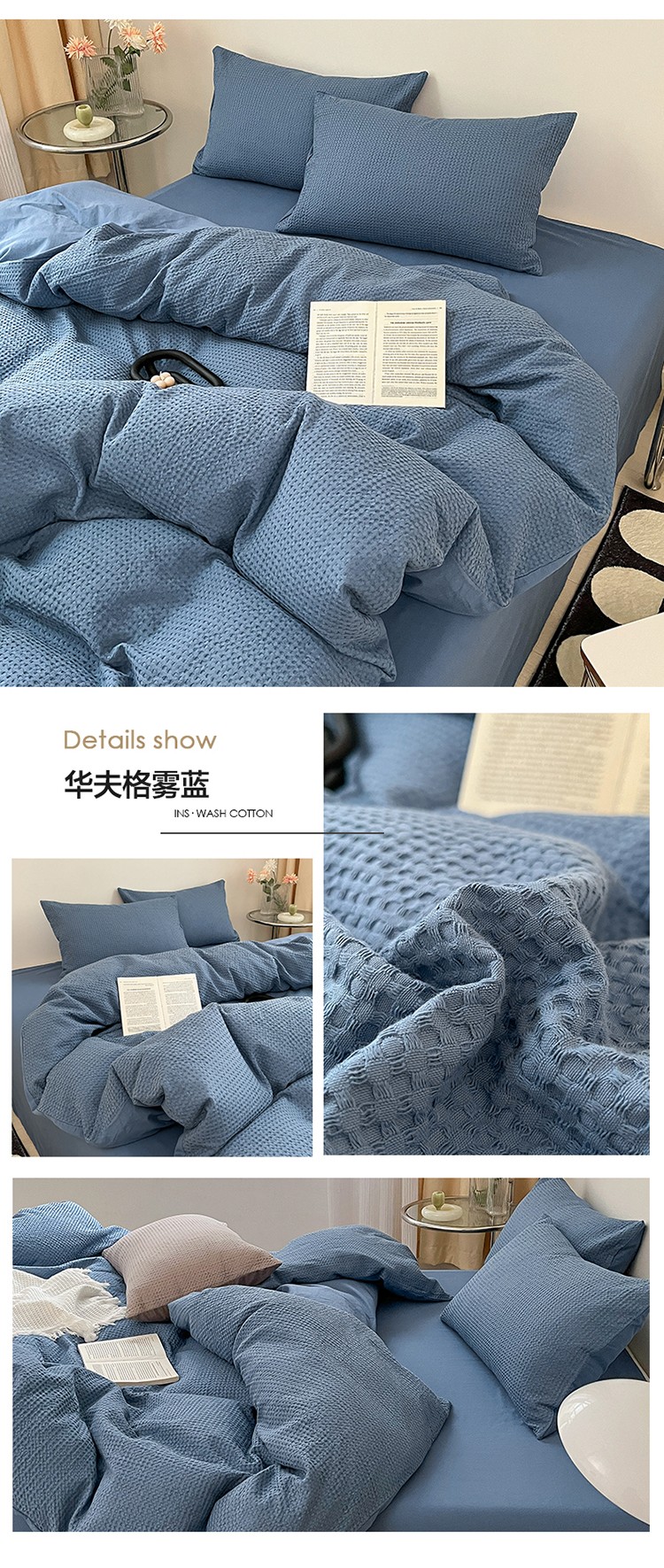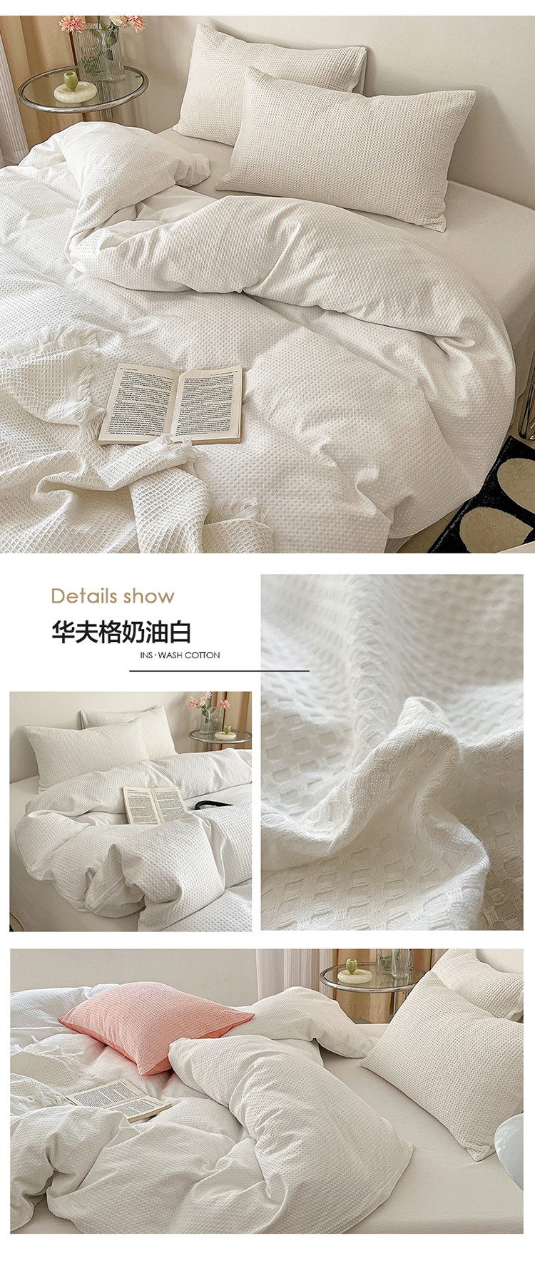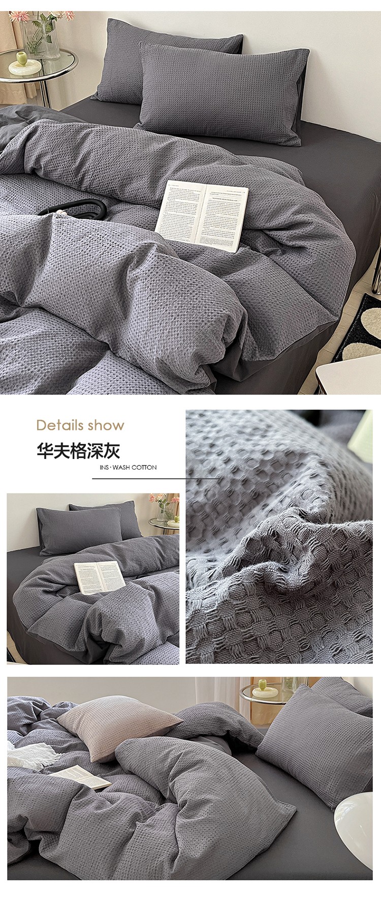 (总)雅居纺家纺 2022新款全棉华夫格普通款四件套,焦糖,米驼,奶油白,柔粉,深灰,雾蓝,月灰