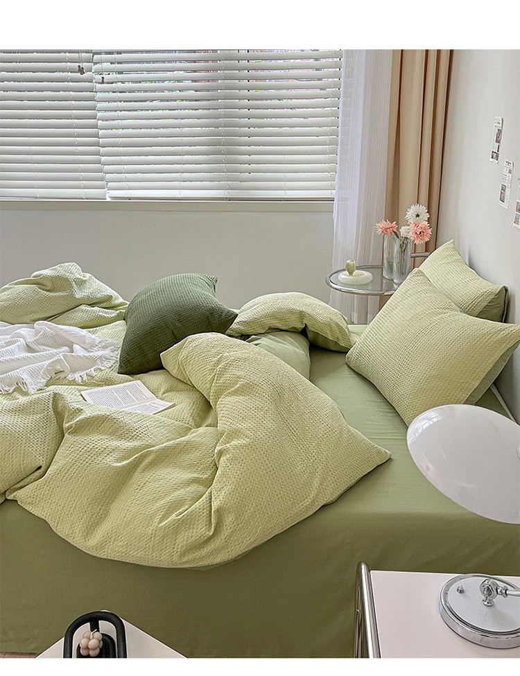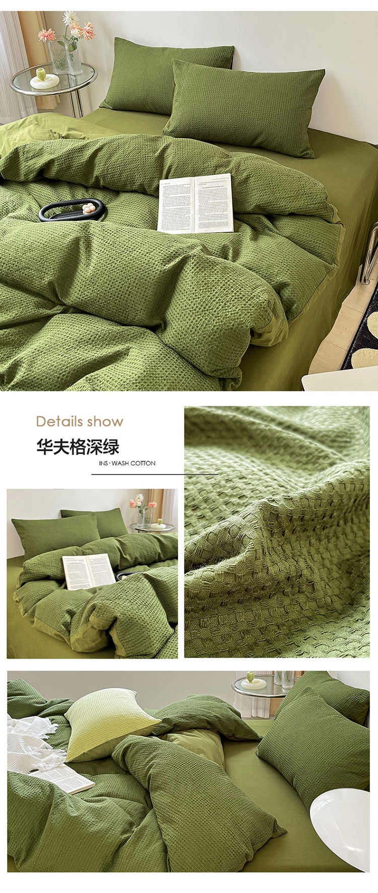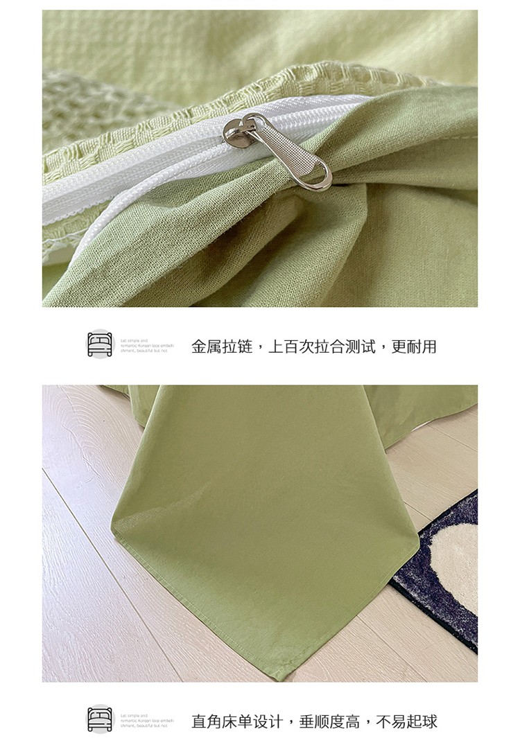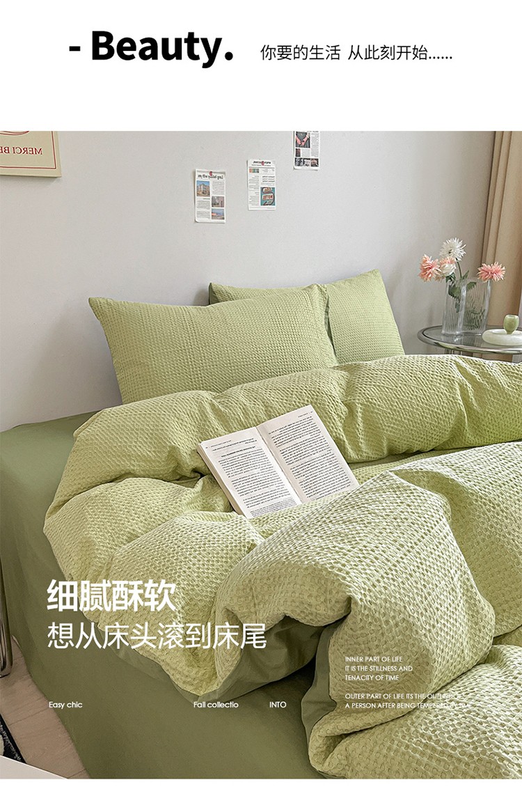 (总)雅居纺家纺 2022新款全棉华夫格普通款四件套,焦糖,米驼,奶油白,柔粉,深灰,雾蓝,月灰
