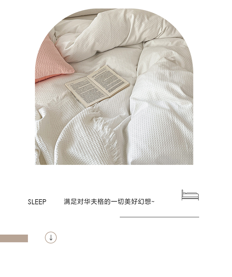 (总)雅居纺家纺 2022新款全棉华夫格普通款四件套,焦糖,米驼,奶油白,柔粉,深灰,雾蓝,月灰