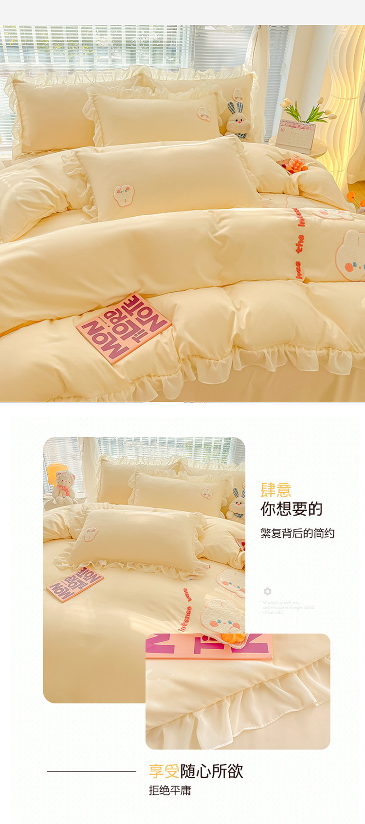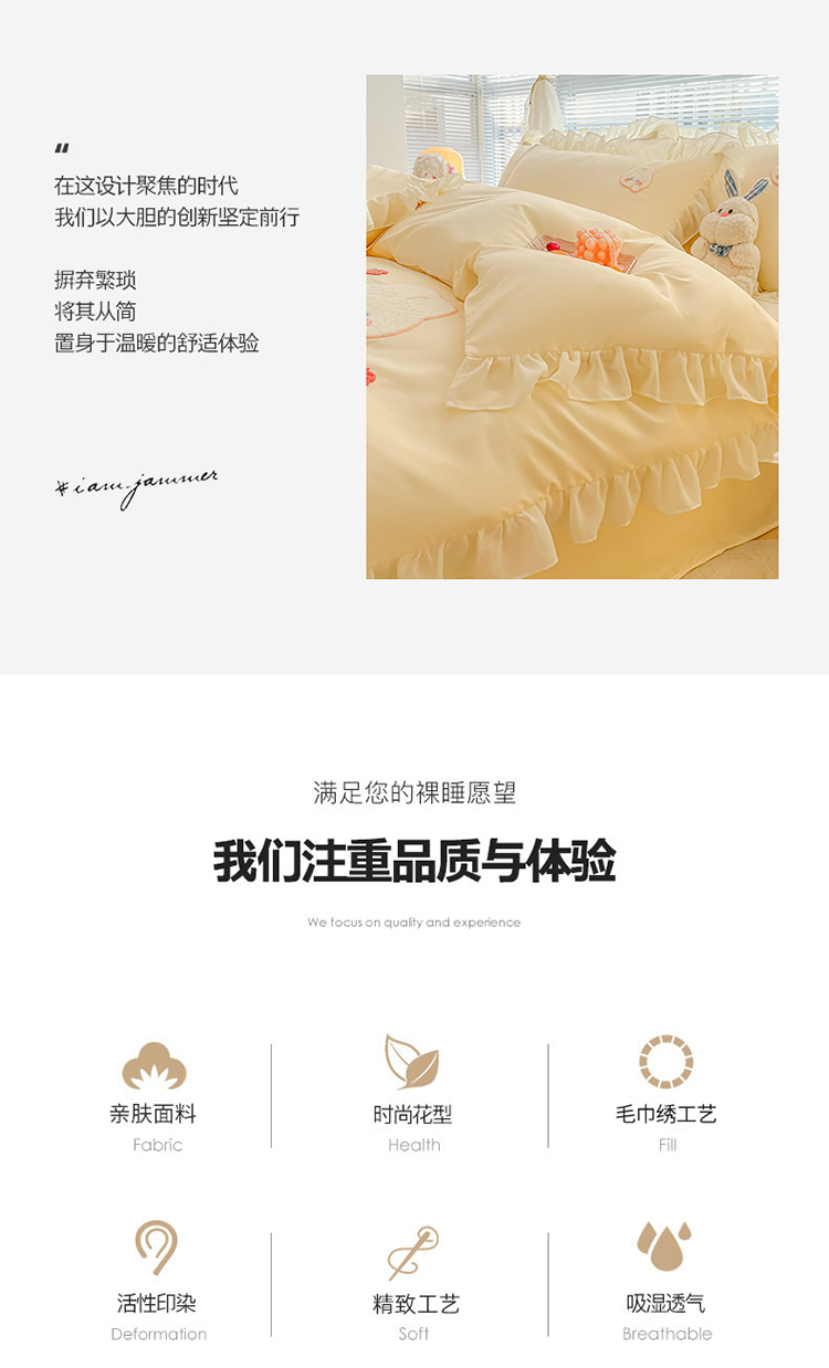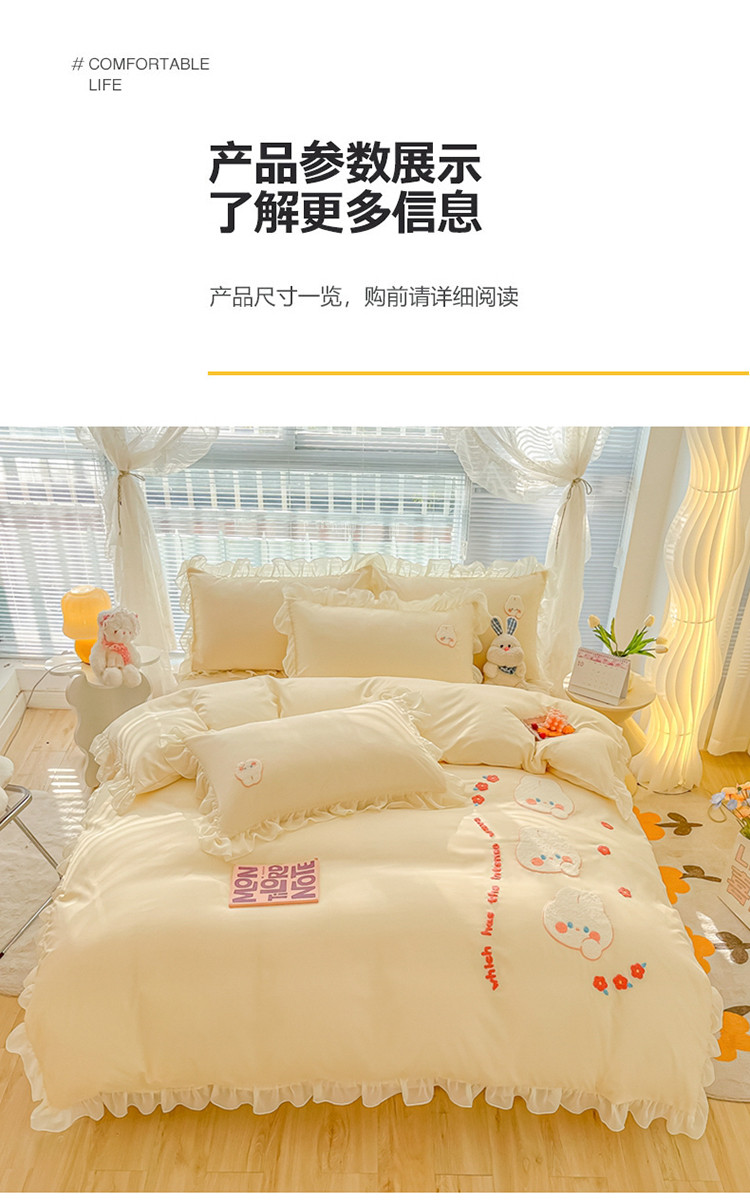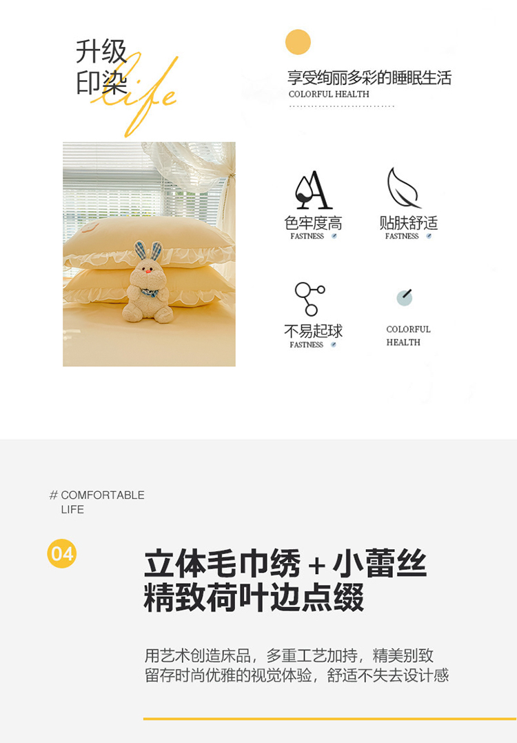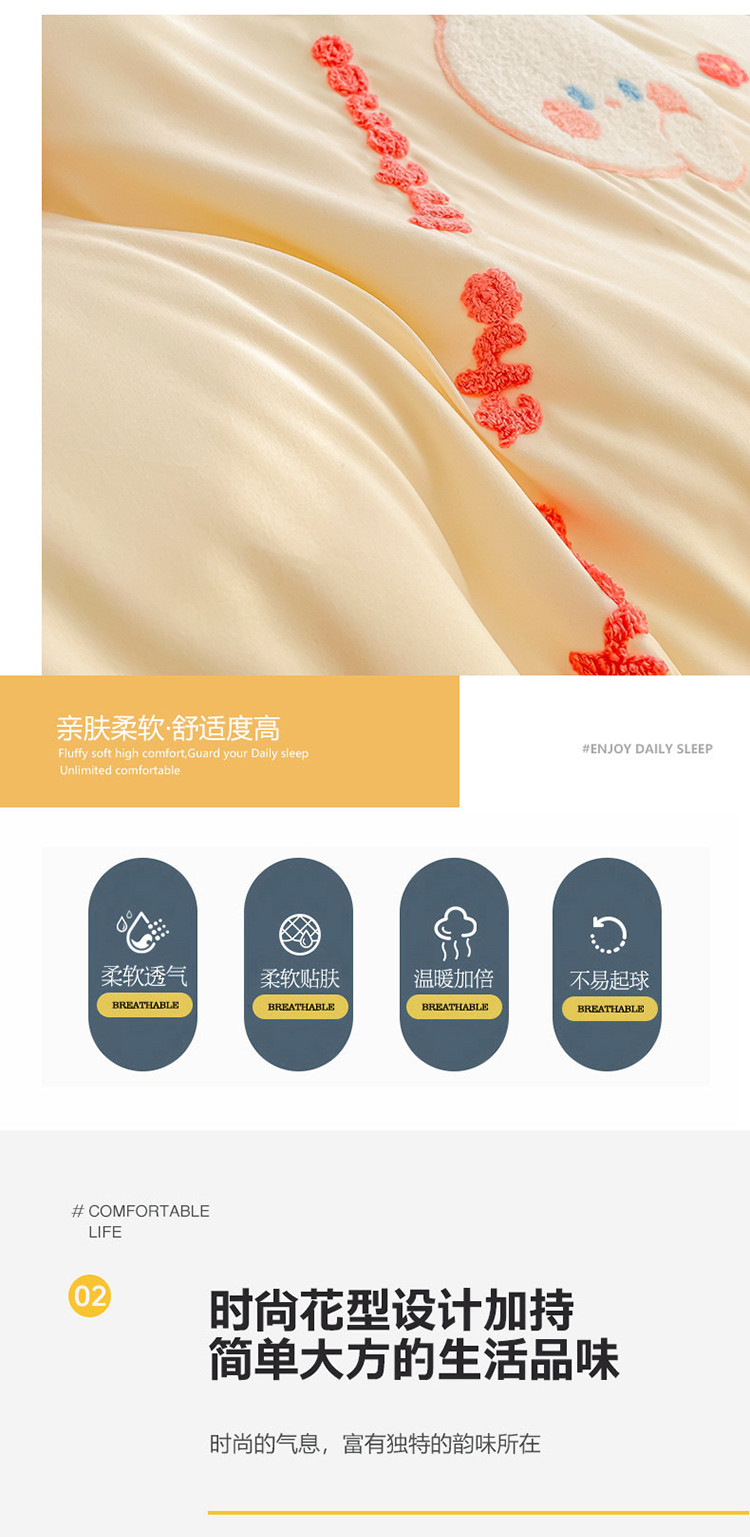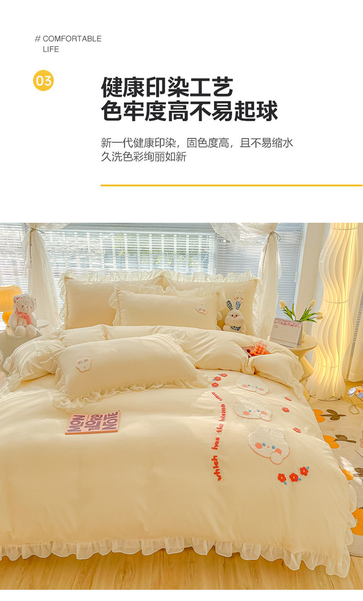 当前位置: 91家纺网 > 商品网购 > 床品套件 > 四件套 > 毛巾绣四件套 > 我心 2023新款毛巾绣四件套-萌兔系列 花儿兔-米