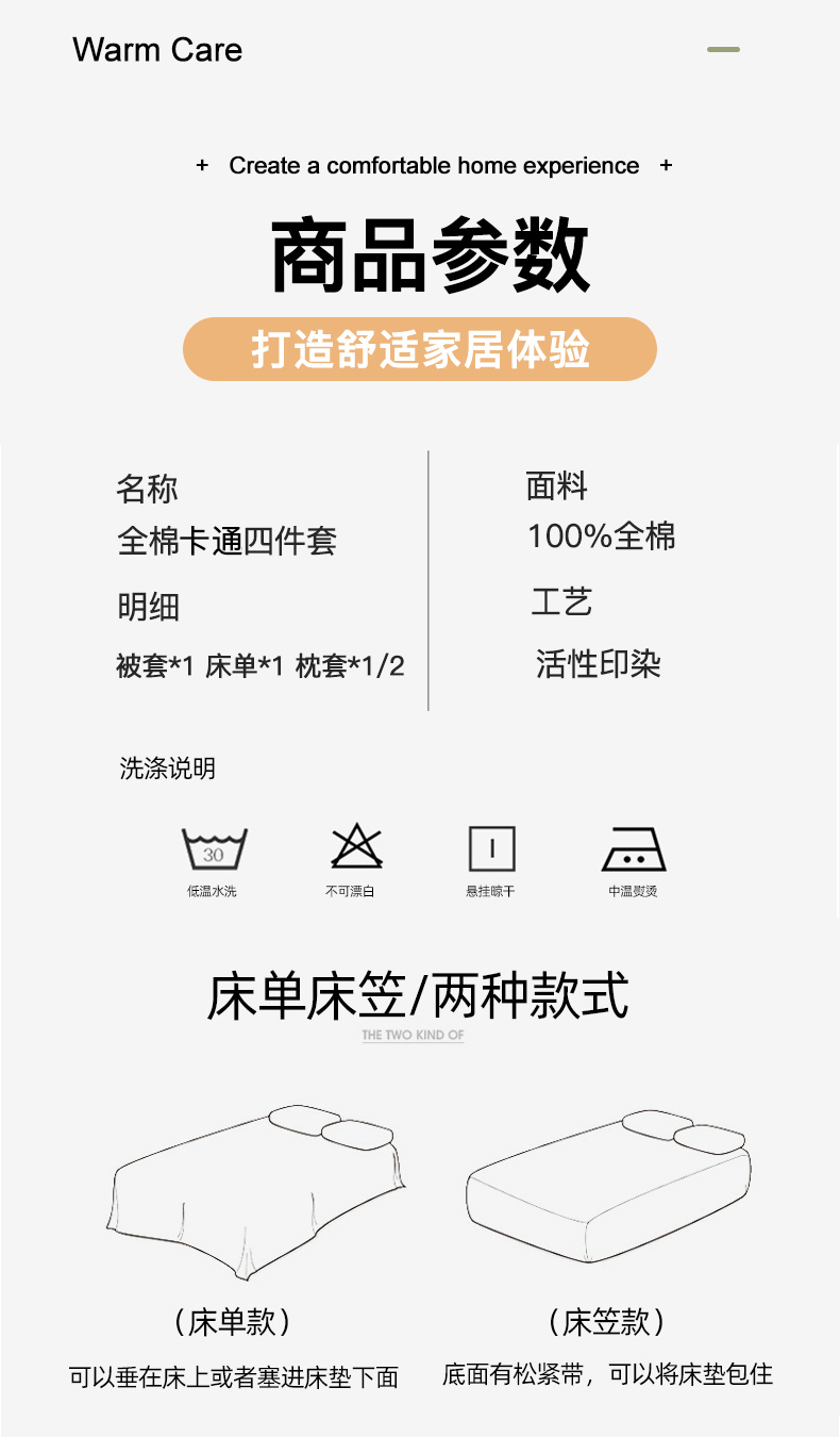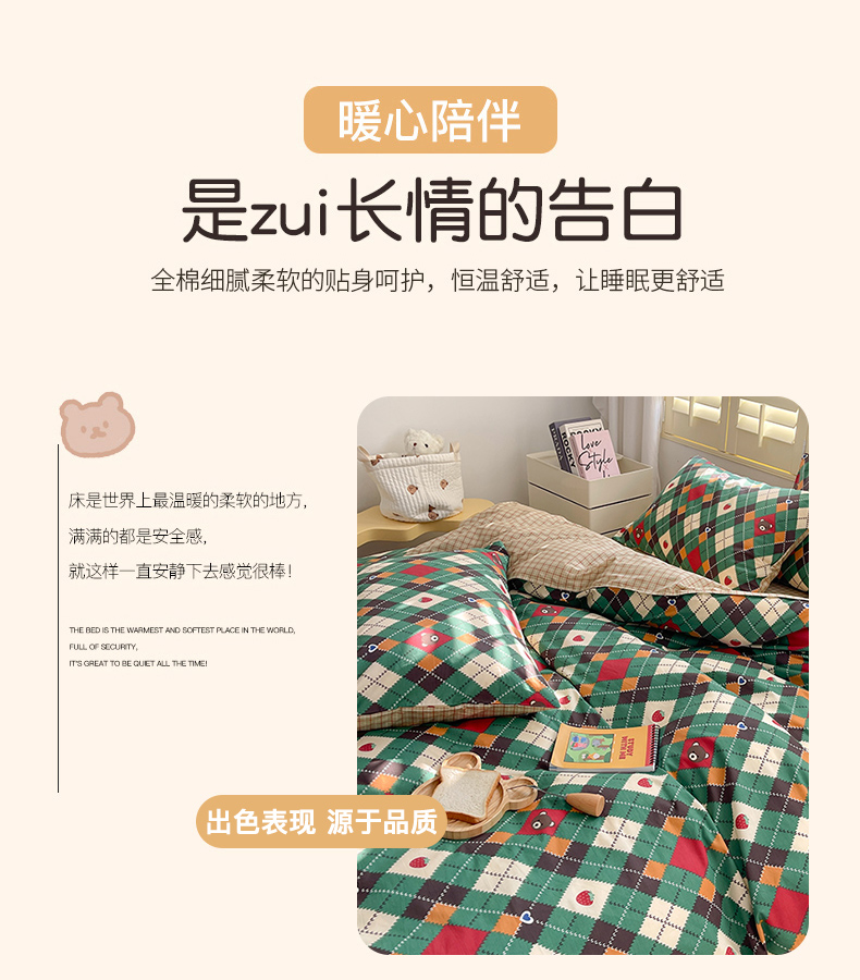 商品名称:优彩 2023新款13372全棉小清新卡通系列四件套 圣诞熊