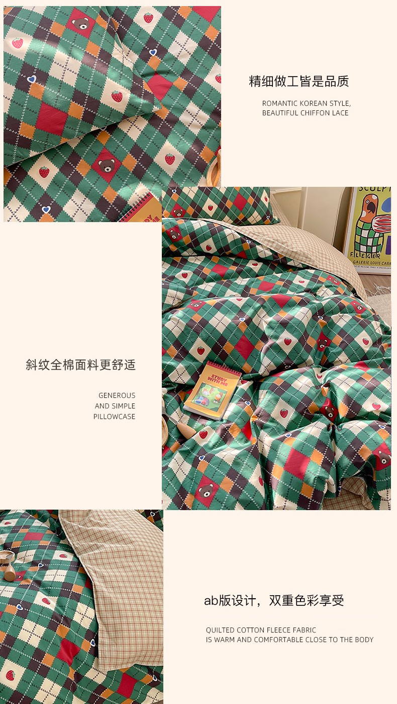 优彩 2023新款13372全棉小清新卡通系列四件套 圣诞熊