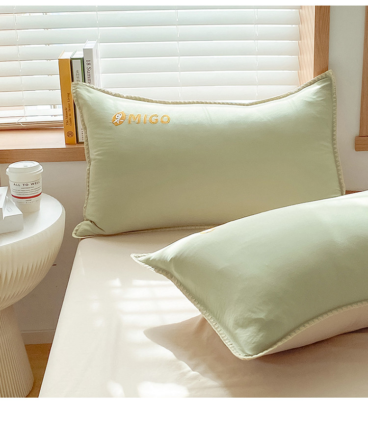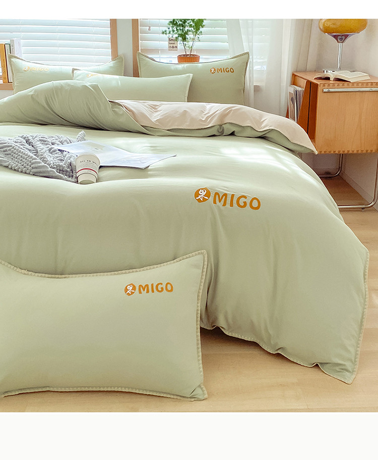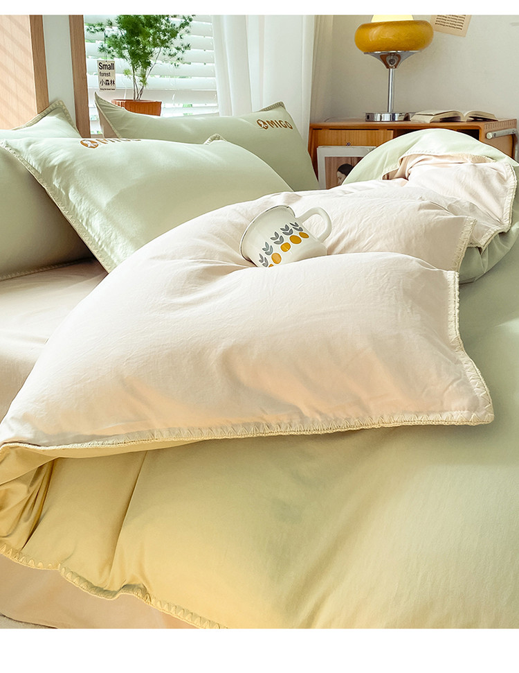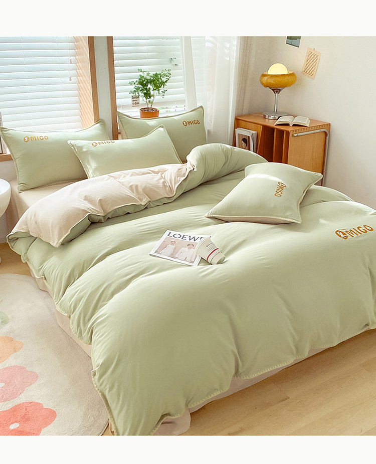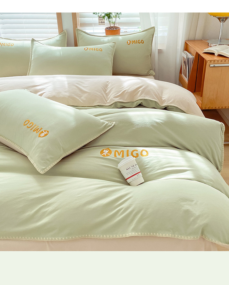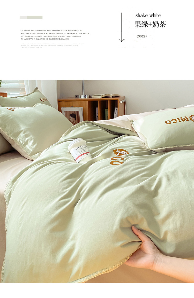 蓝米卡夫 2024新-A类云朵棉蜜果刺绣系列四件套 蜜果-果绿+奶茶