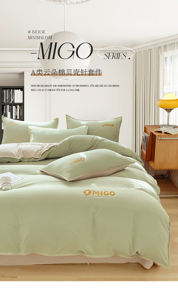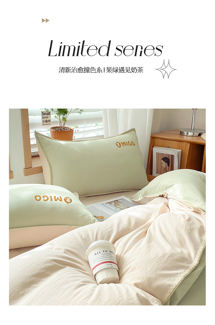 商品名称:蓝米卡夫 2024新-A类云朵棉蜜果刺绣系列四件套 蜜果-果绿+奶茶