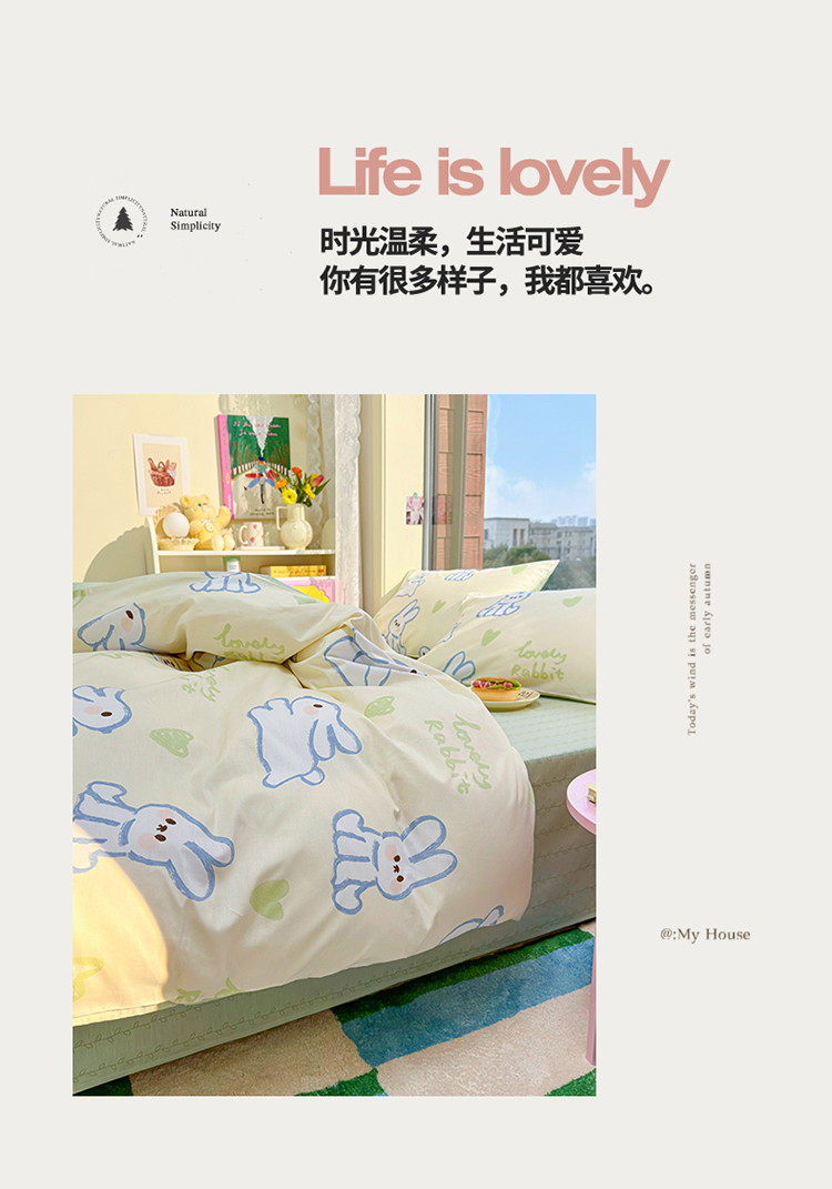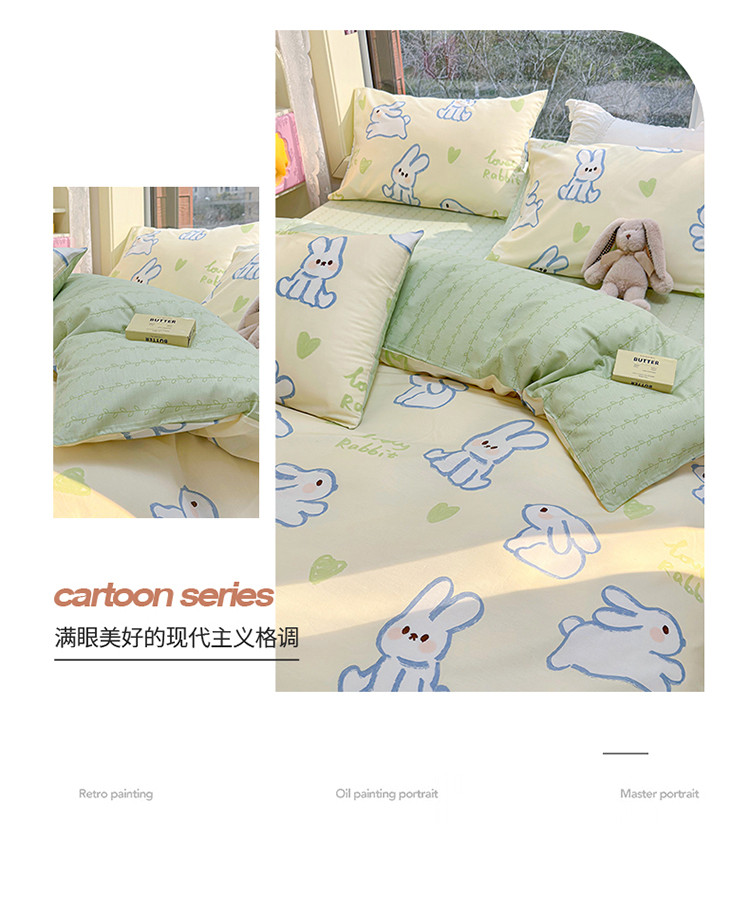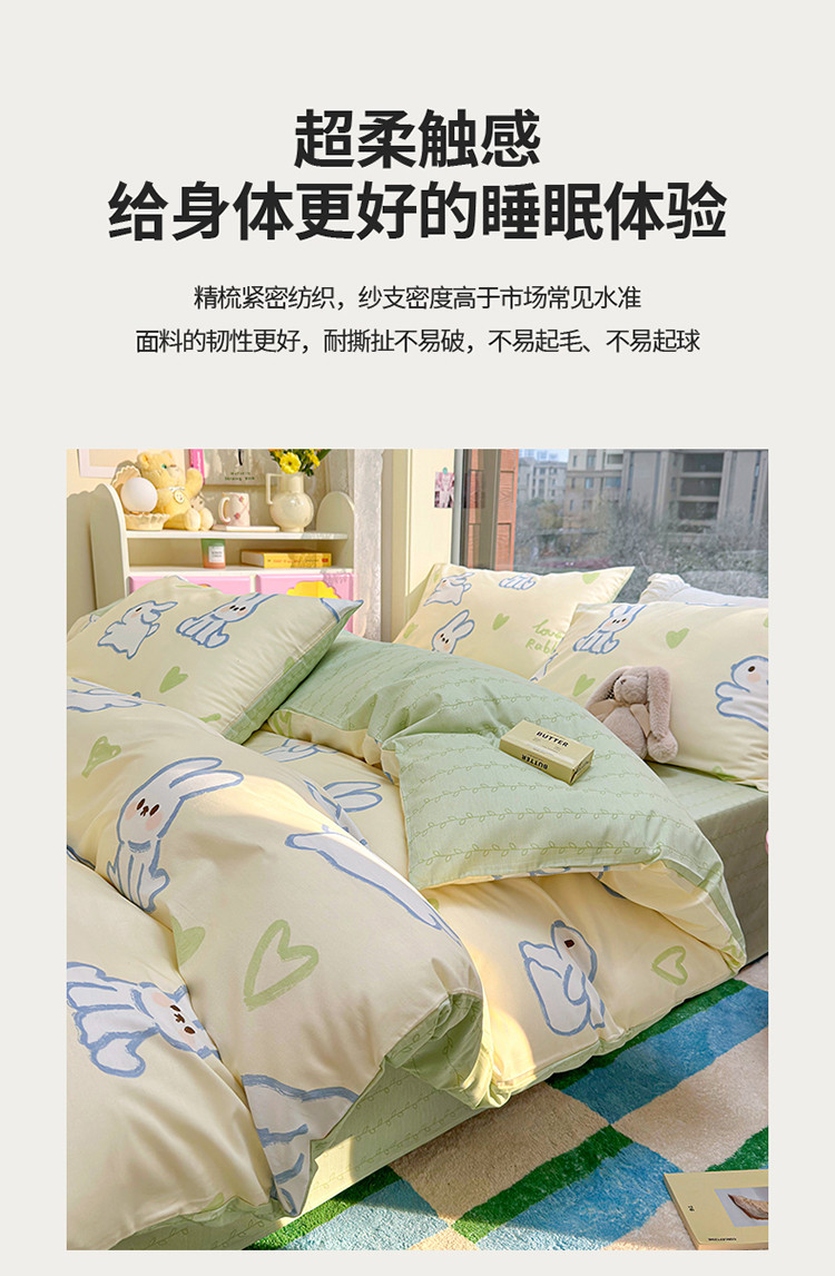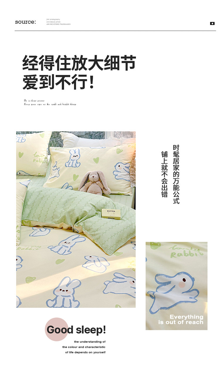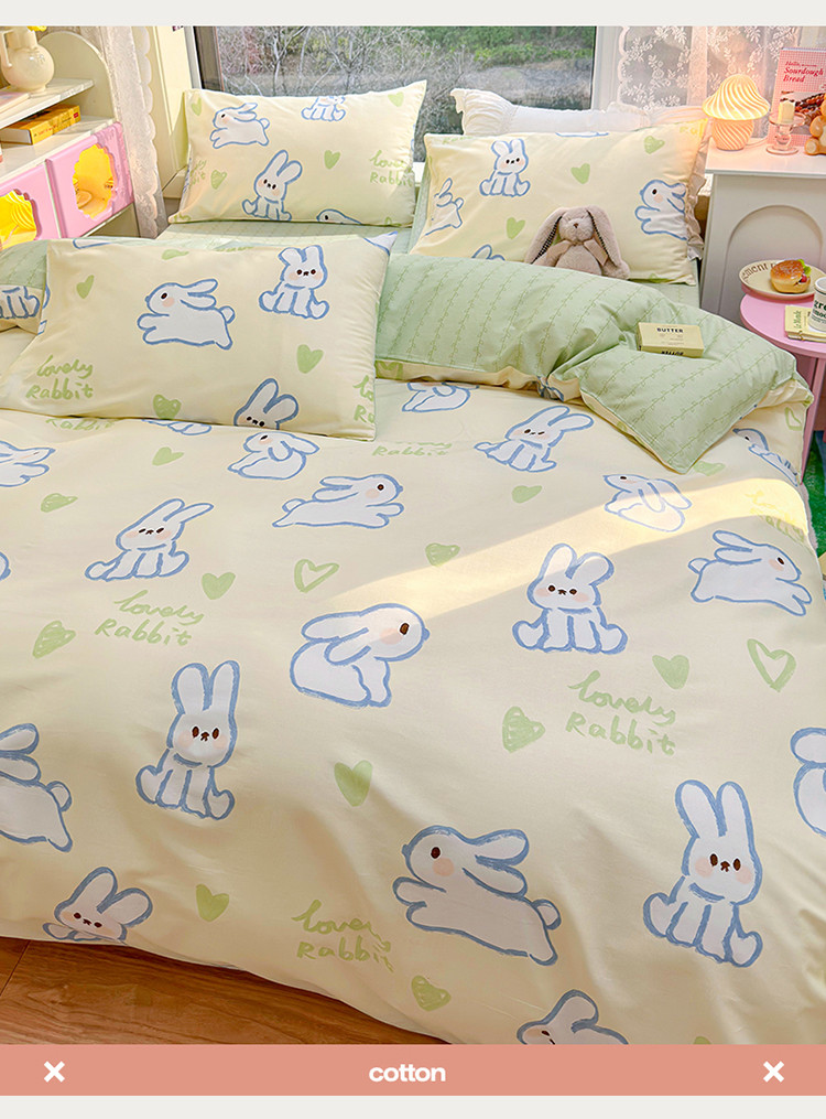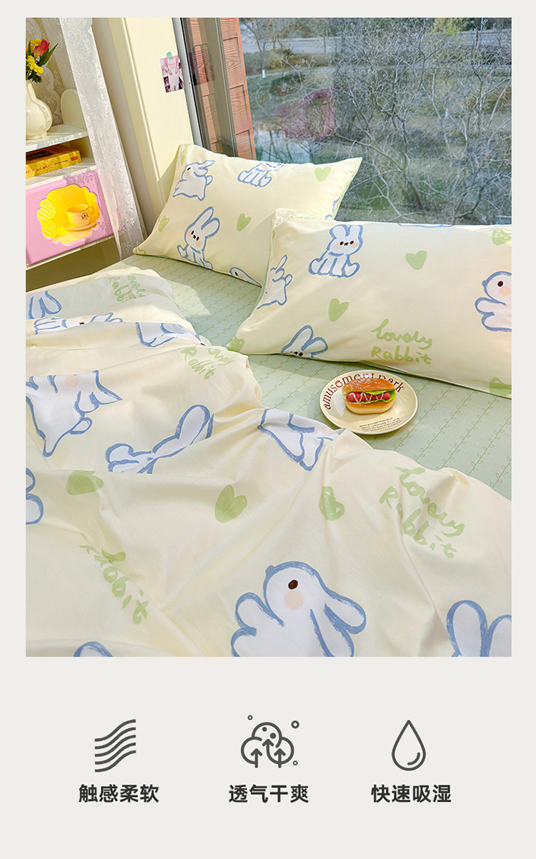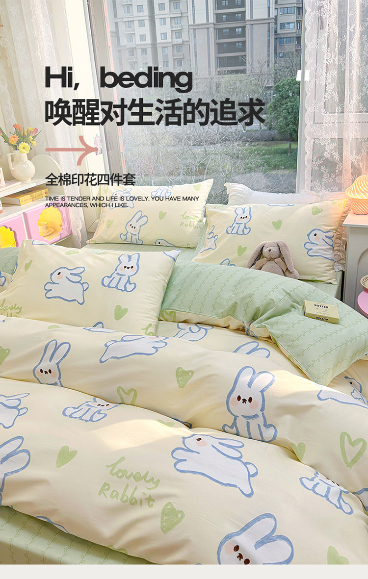 当前位置: 91家纺网 > 商品网购 > 床品套件 > 四件套 > 全棉普通四件套 > 名兮 2023新款全棉印花卡通风四件套 可爱兔