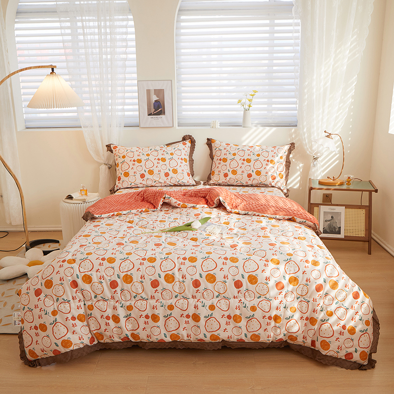 (总)一米阳光 2024新款小清新AB版全棉四件套,贝尔兰,饼干熊,粉黛,简约,卡通甜甜圈,萌萌宠,沁园-灰,沁园-卡其,沁园-紫,水果点点,月半点点