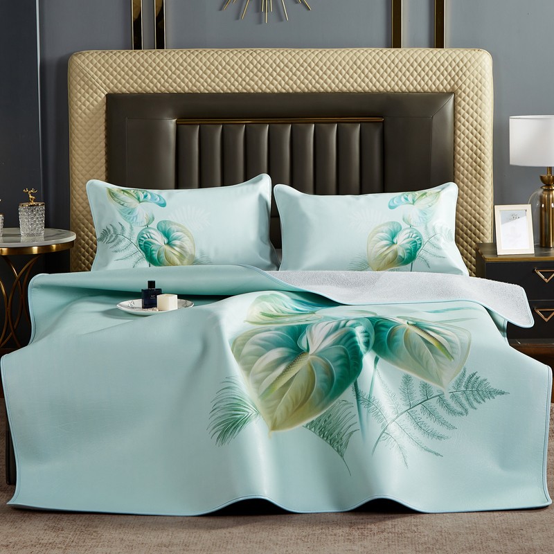 头层素彩牛皮席 水牛皮 牛皮凉席 头层牛皮 凉席,湖蓝色
