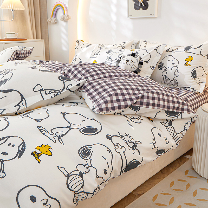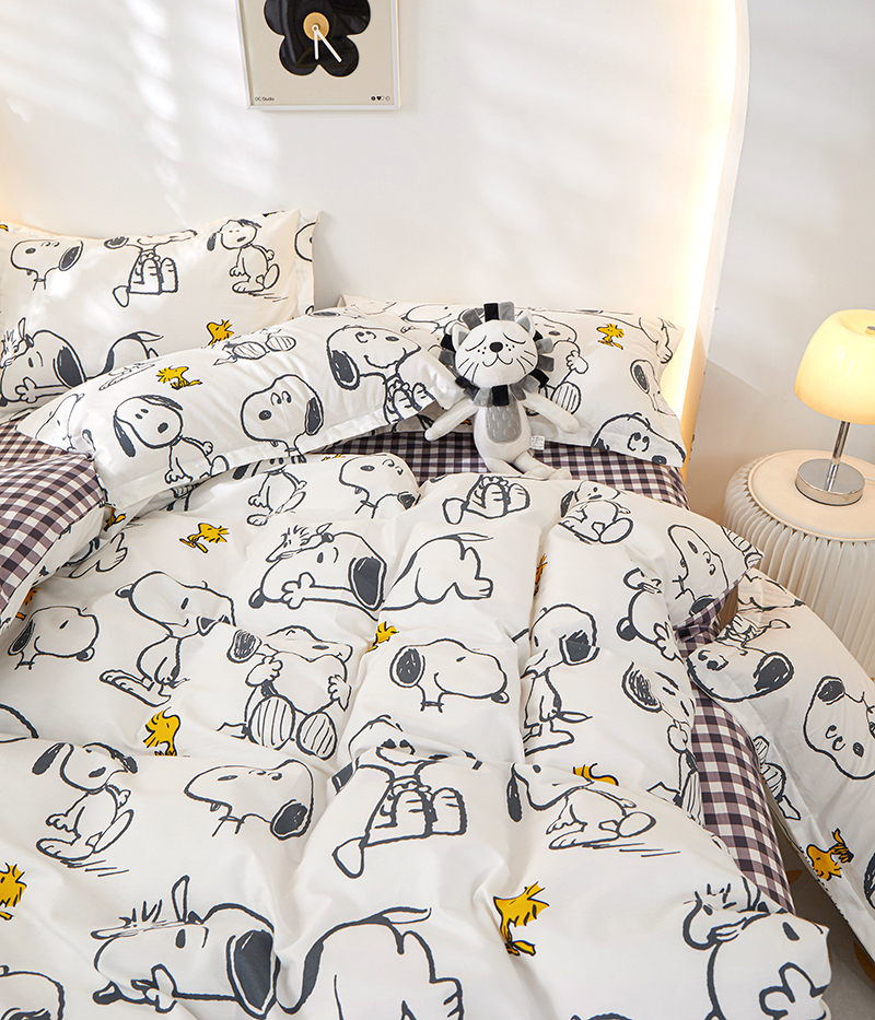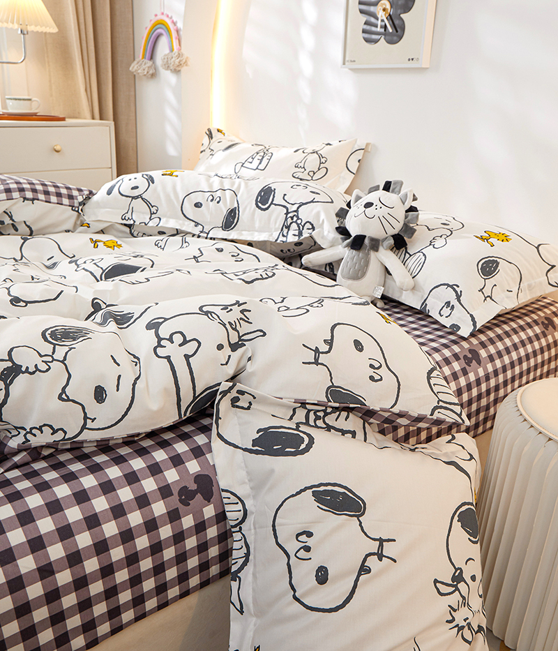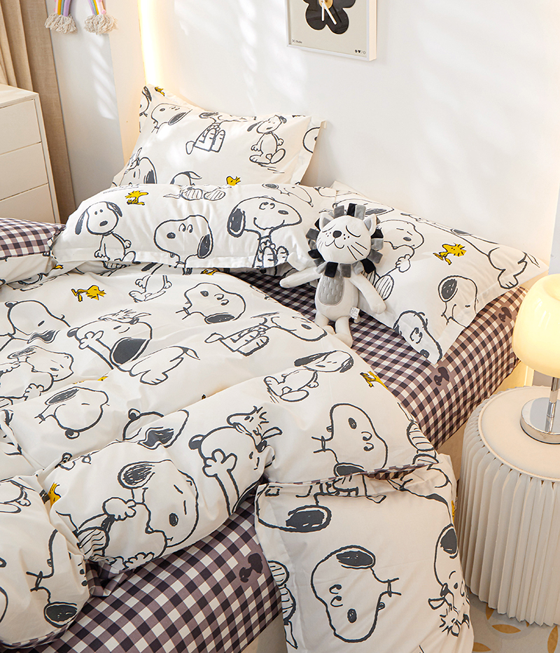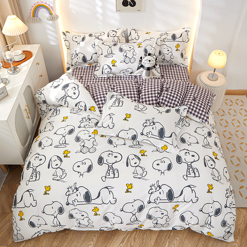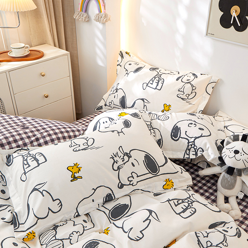 当前位置: 91家纺网 > 商品网购 > 床品套件 > 四件套 > 全棉活性四件套 > 钰伶 13372全棉史努比纯棉床单床笠款四件套史努比和小糊涂