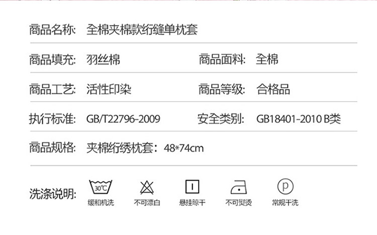 商品名称:优乐家纺 2023新款全棉印花绗绣系列2 单枕套 纯净