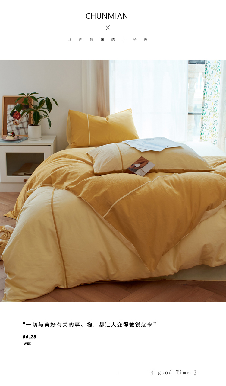 商品名称:(总)纯棉水洗棉四件套纯色简约全棉被套工艺款床单床笠学生直播爆款