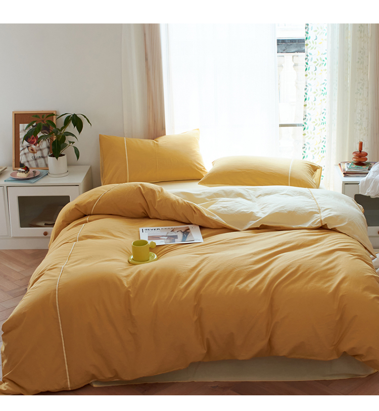 (总)纯棉水洗棉四件套纯色简约全棉被套工艺款床单床笠学生直播爆款