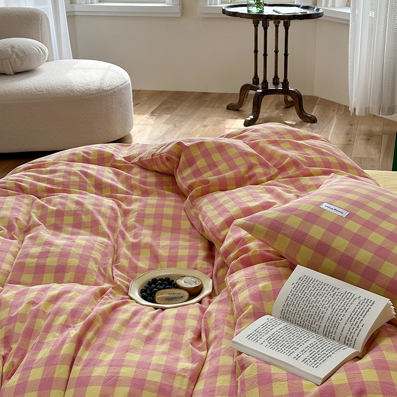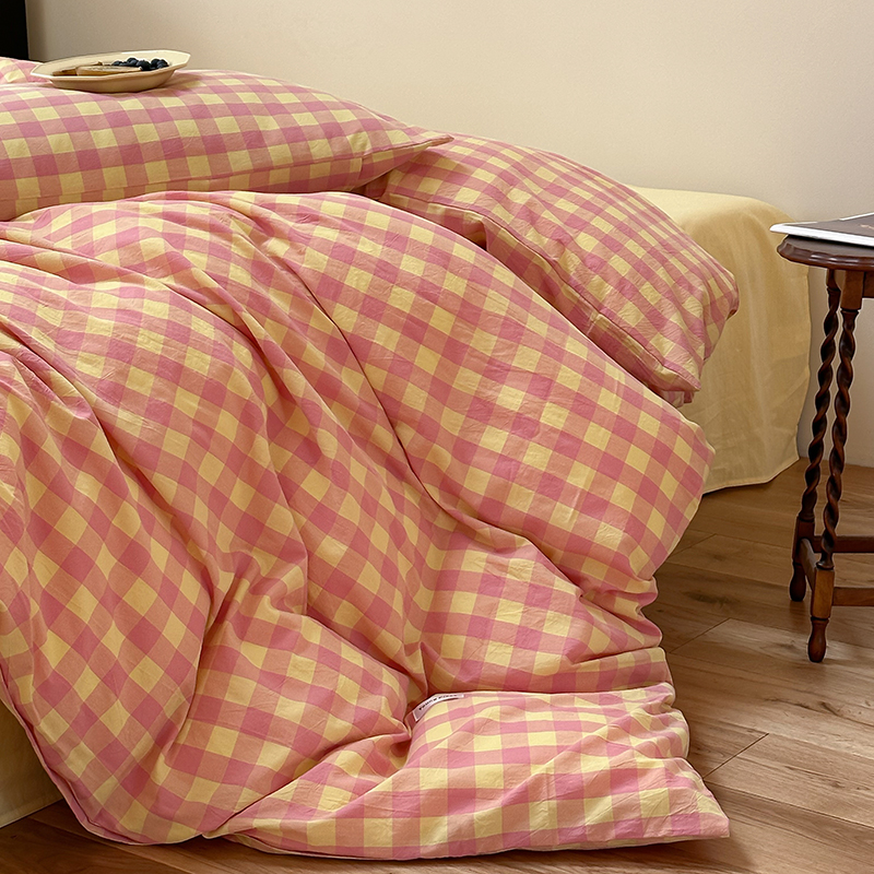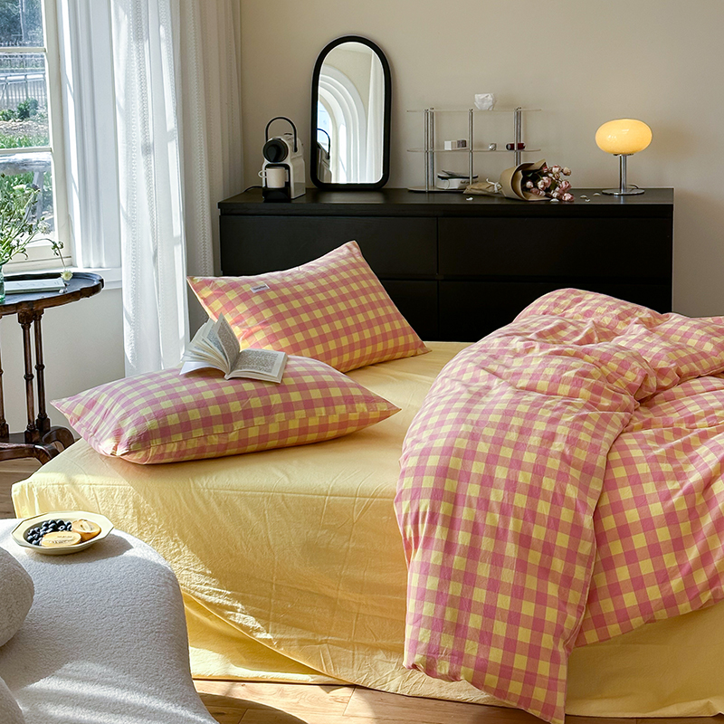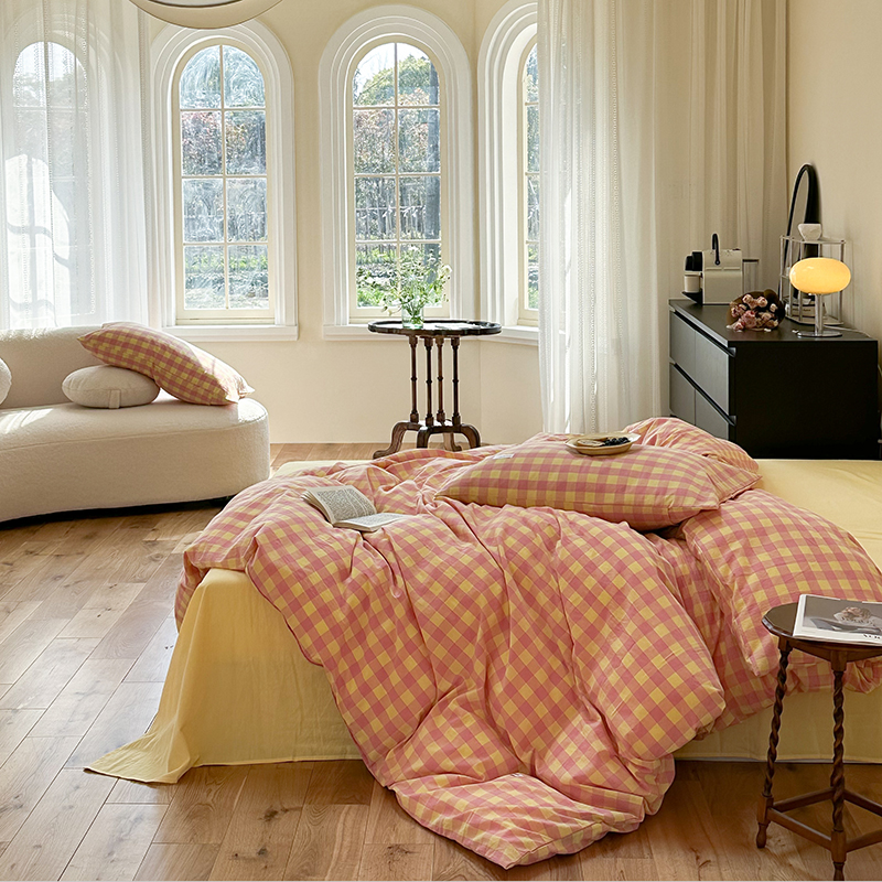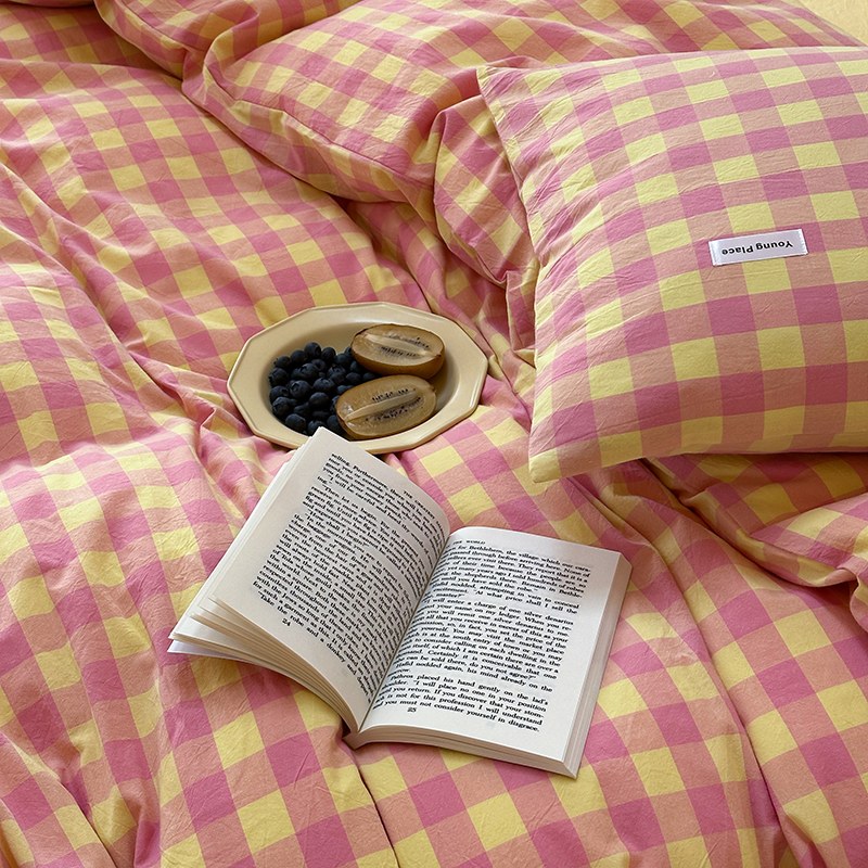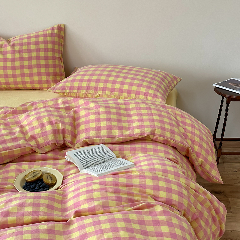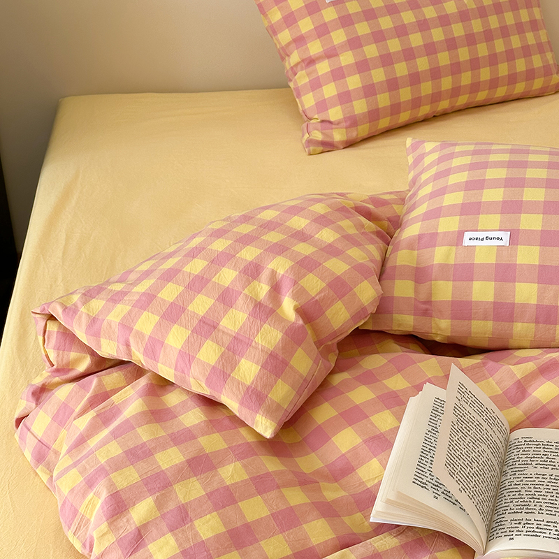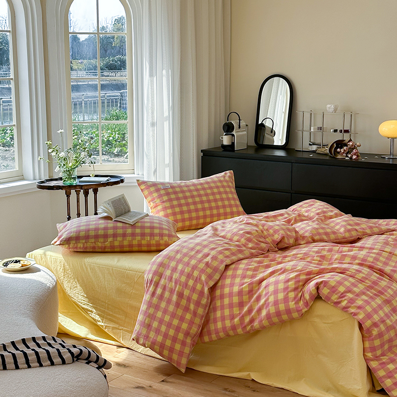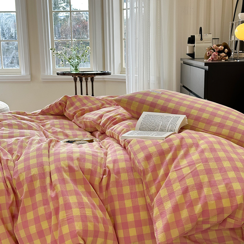 (总)洋铭区 2023新款色织水洗棉格子四件套,牛油果格,青桃格,山竹格,香橙格