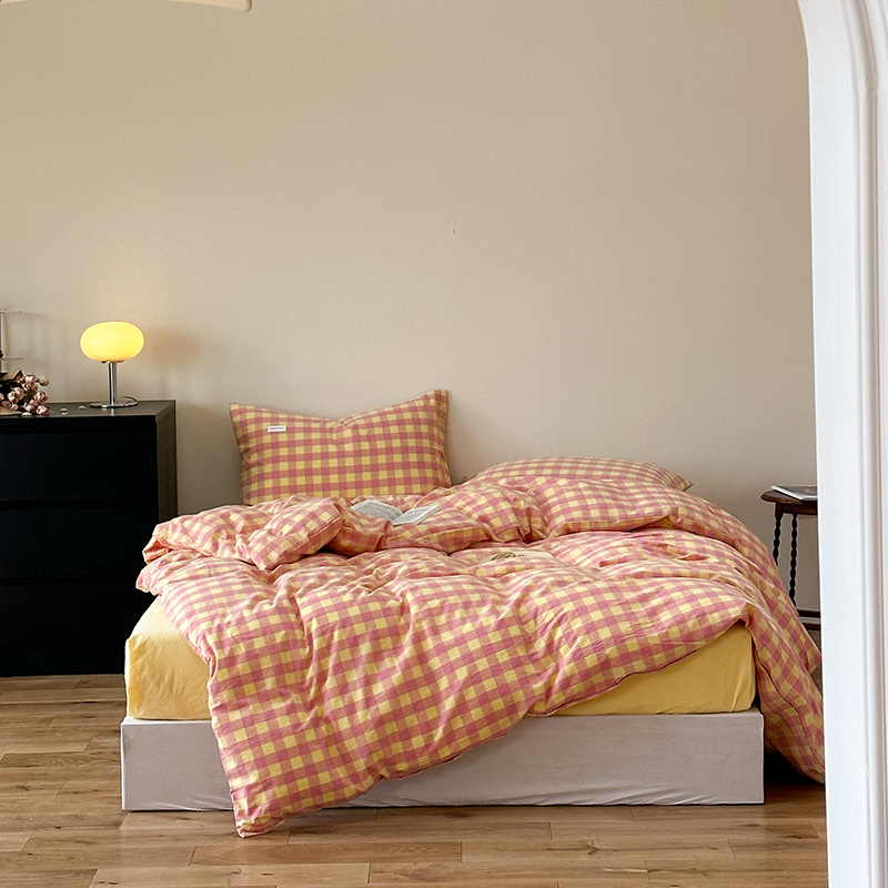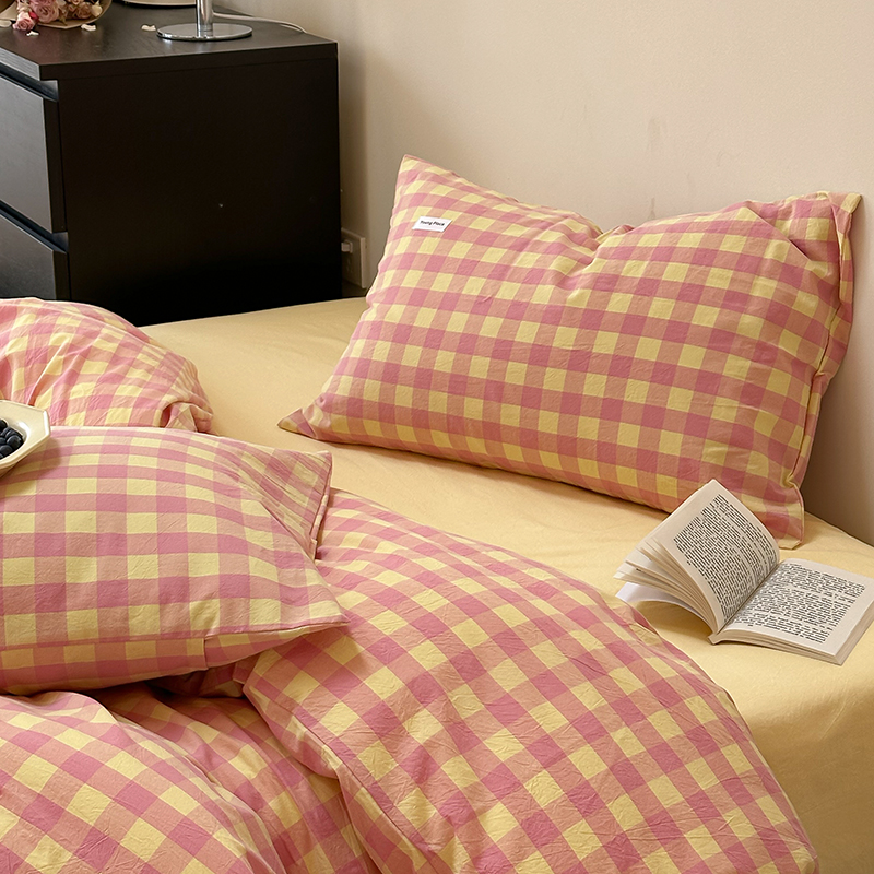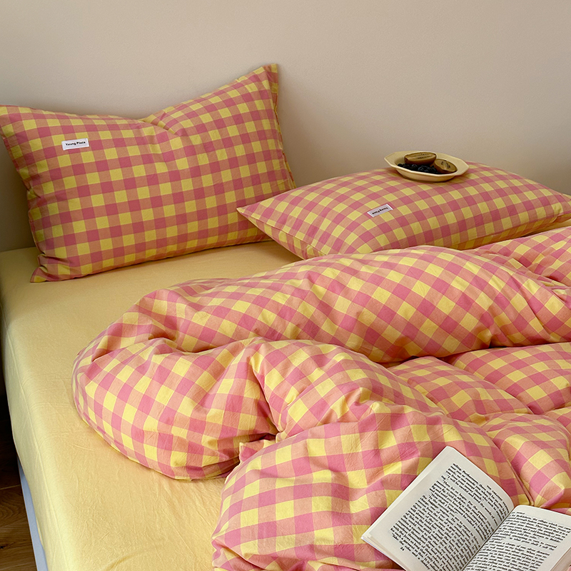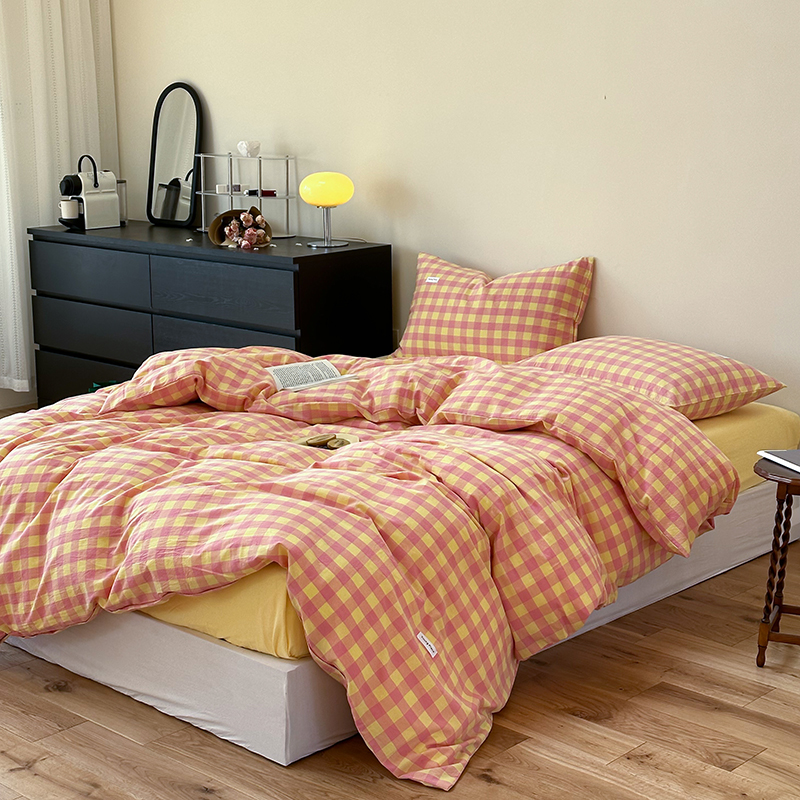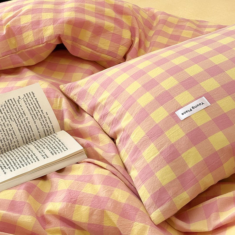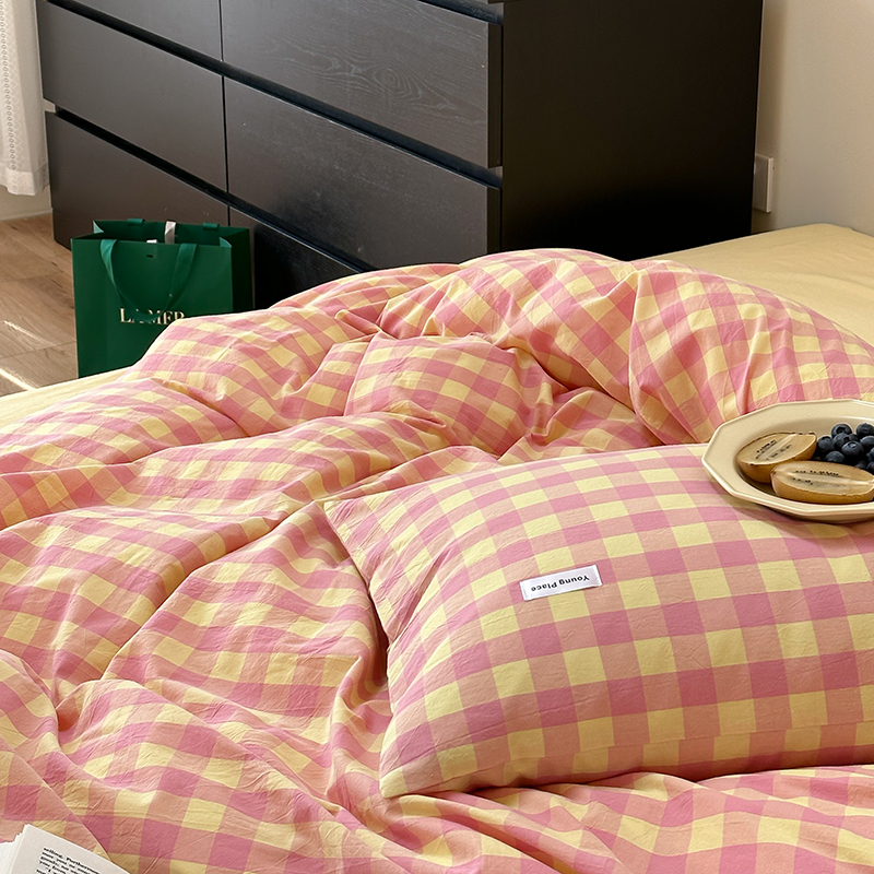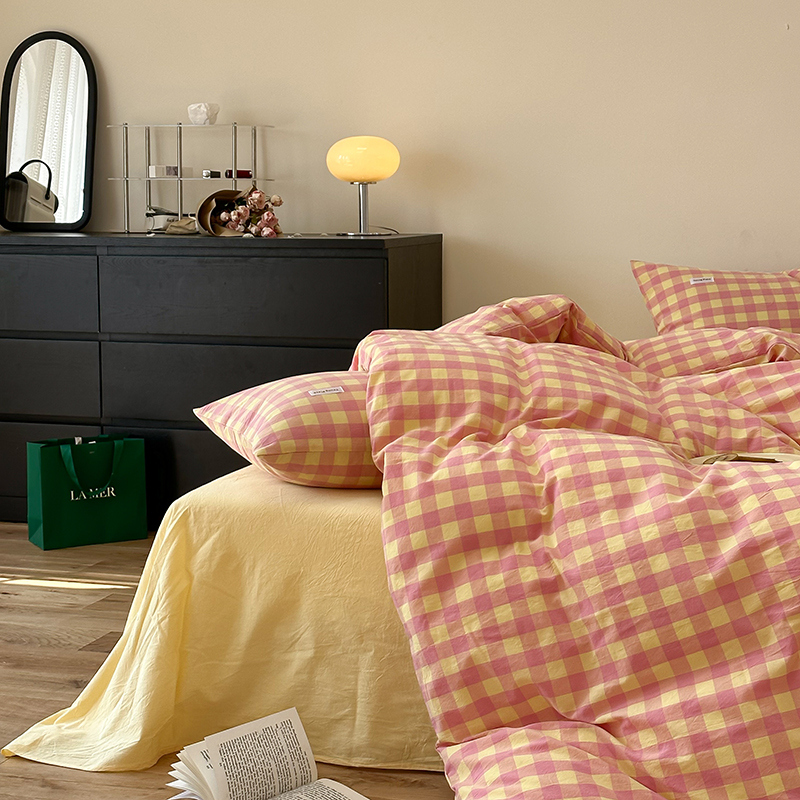 洋铭区 2023新款色织水洗棉格子四件套 香橙格