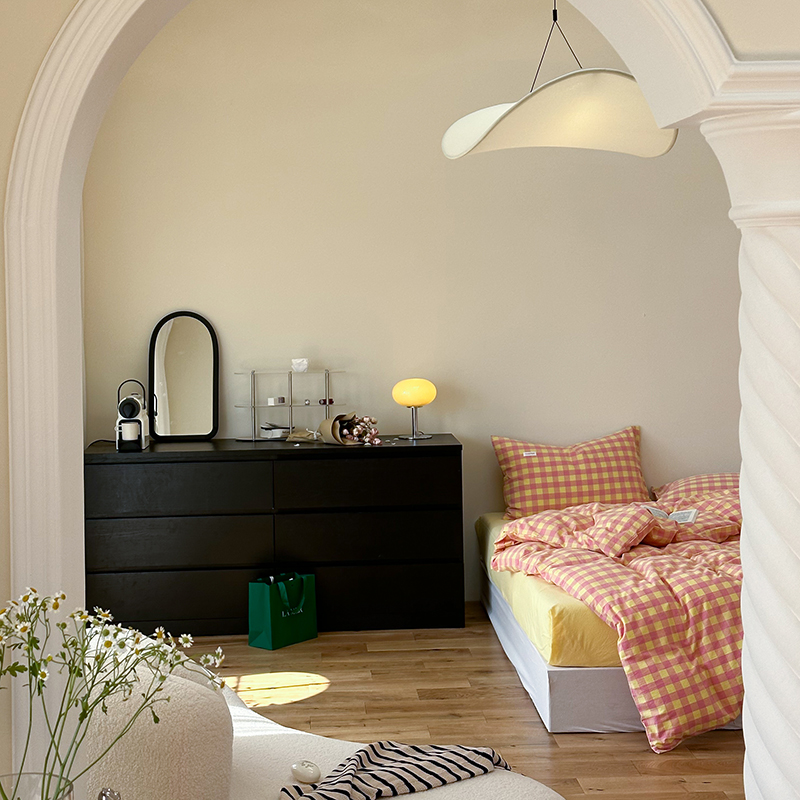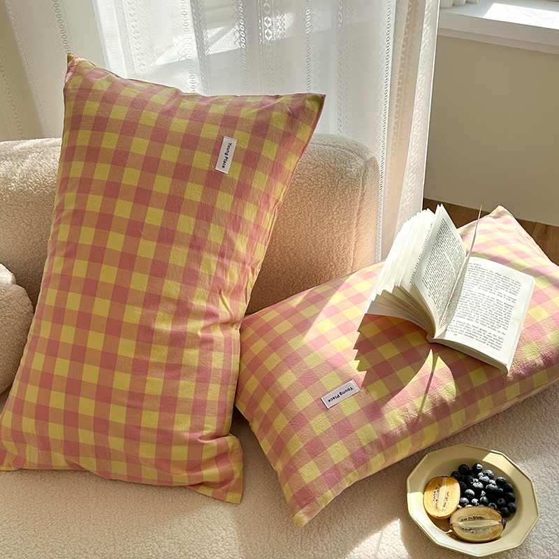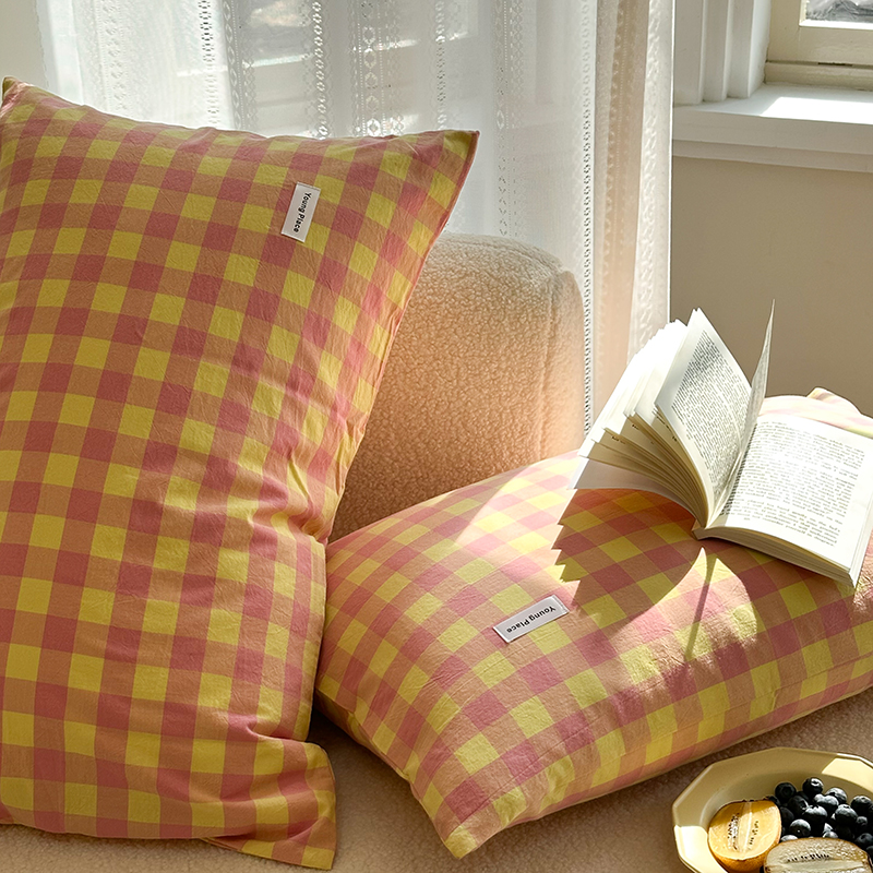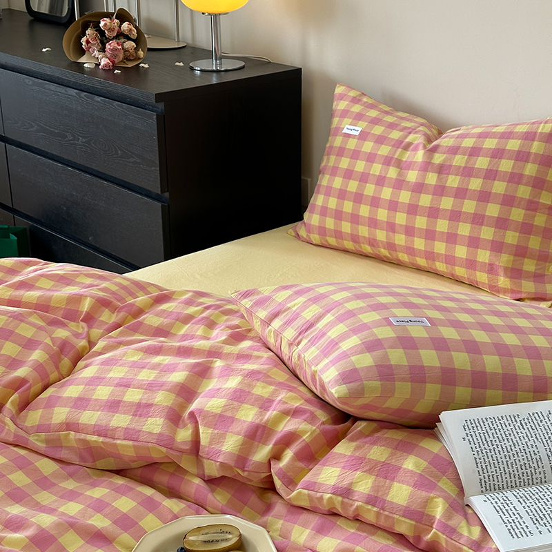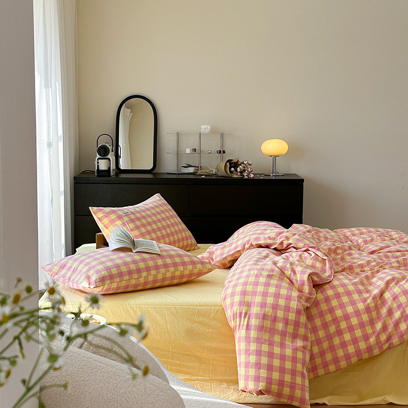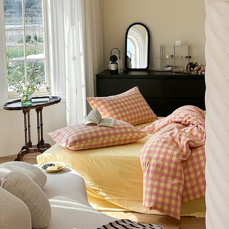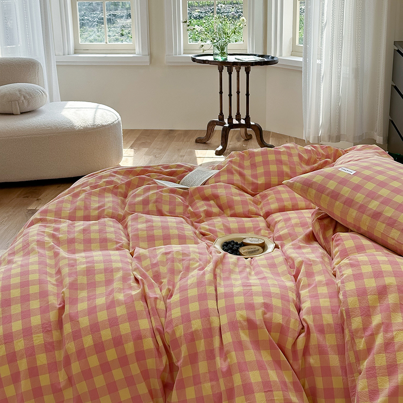 洋铭区 2023新款色织水洗棉格子四件套 香橙格