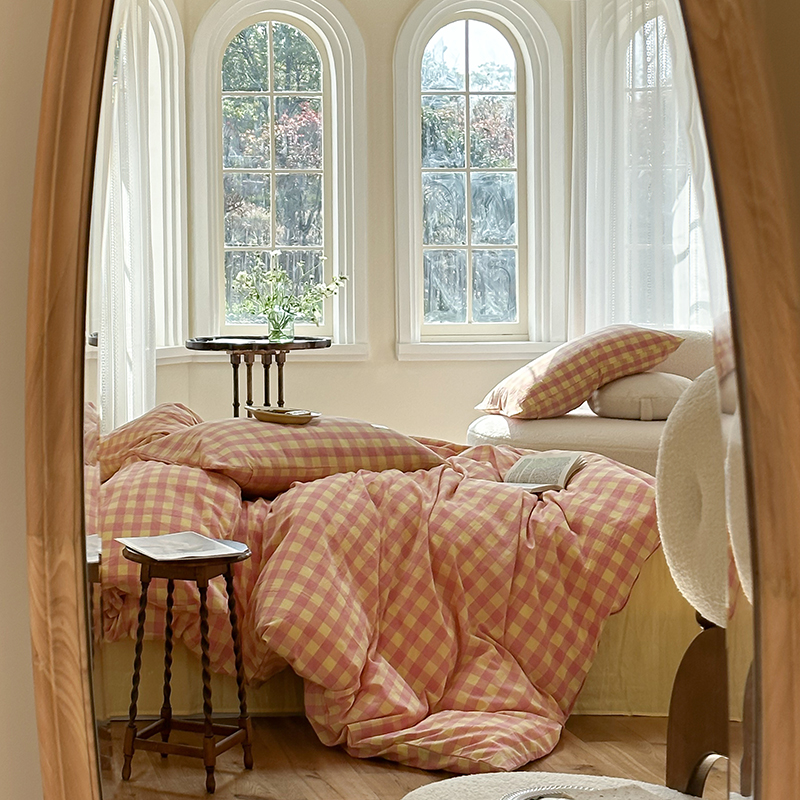 (总)洋铭区(原狠狠爱) 2026新款色织水洗棉一字边四件套系列,朵拉粉格,朵拉咖格,朵拉绿格,翡翠绿格,风雅蓝格,枫叶红格,红茶格,山宇灰格,杏仁米格,烟幕黑格,烟幕蓝格,烟幕棕格,组合