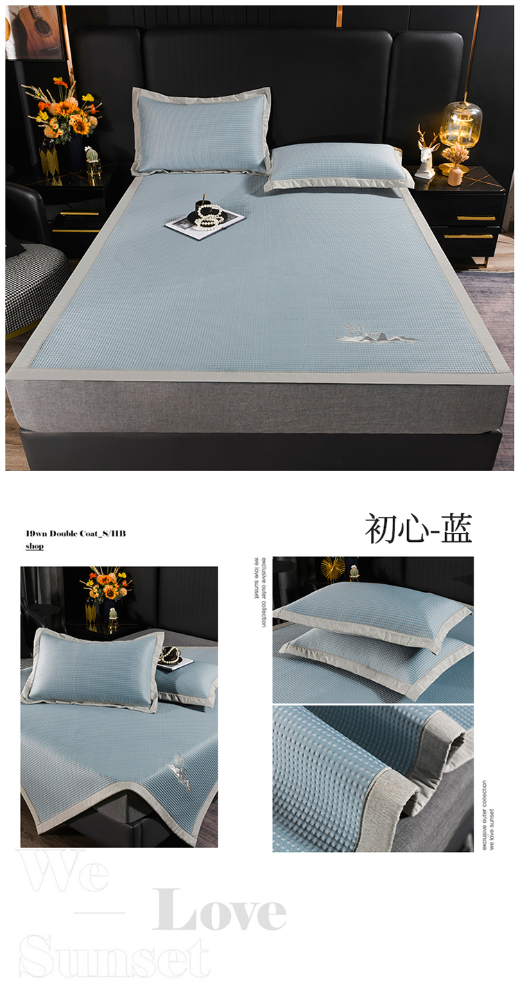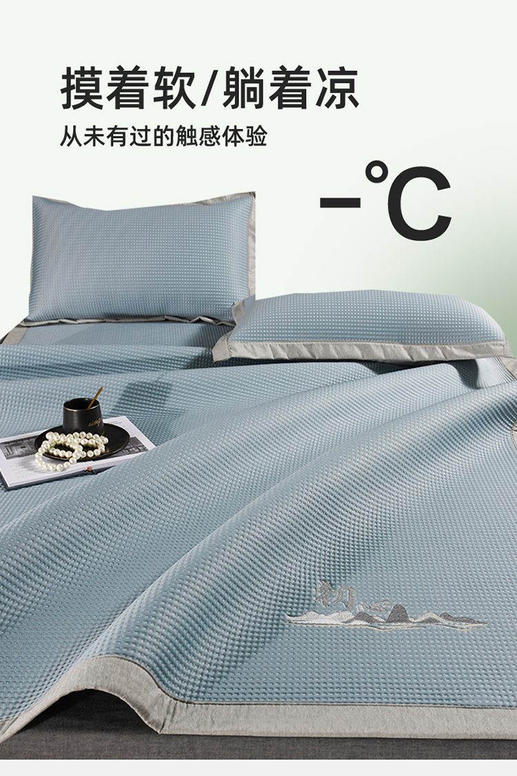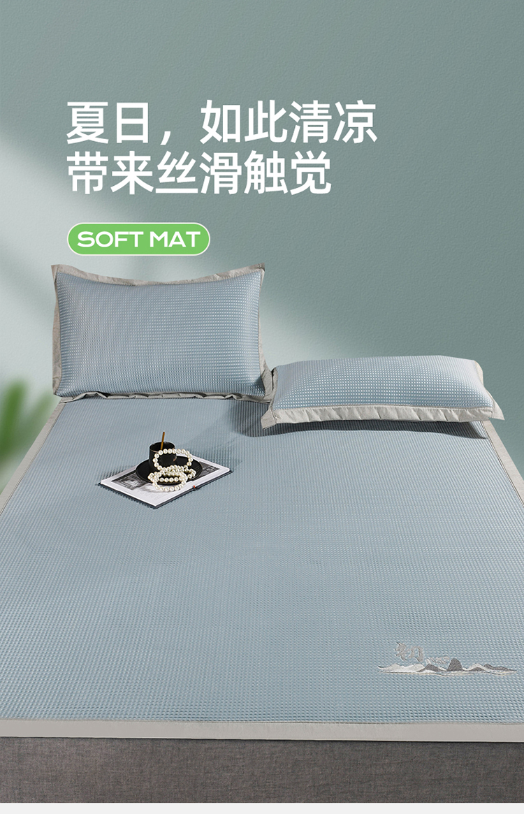 商品名称:席佬大2025新款淳朴风华夫格绣花冰感软席 初心-蓝