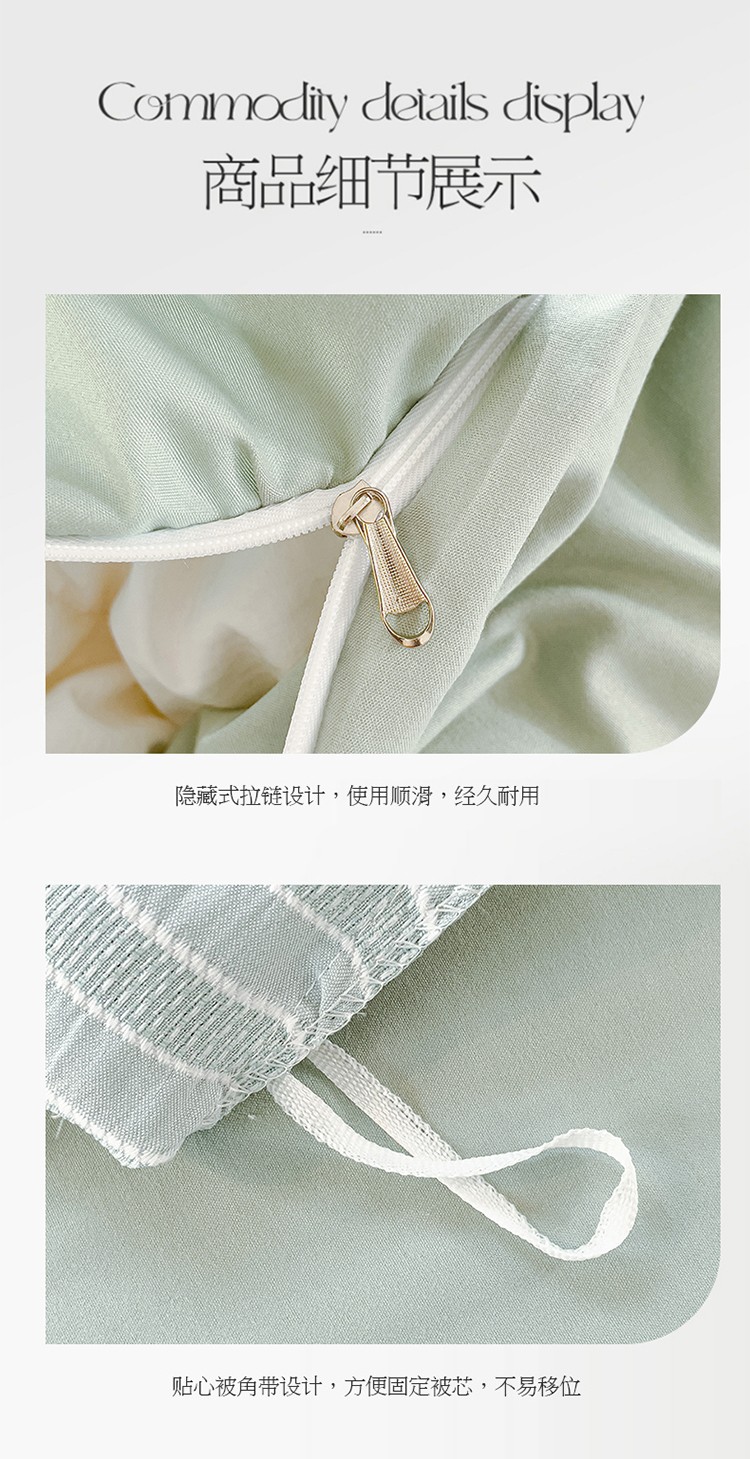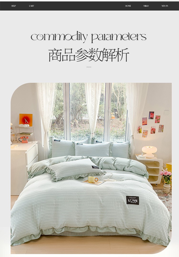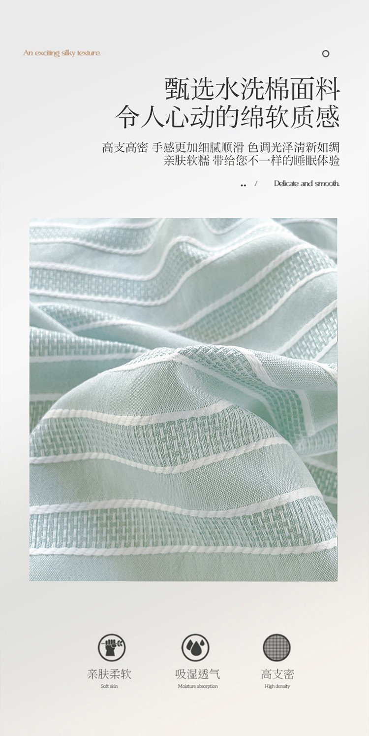 商品名称:金米诺 新款韩版花边水洗棉泡泡纱四件套公主条四件套 条纹-清新绿