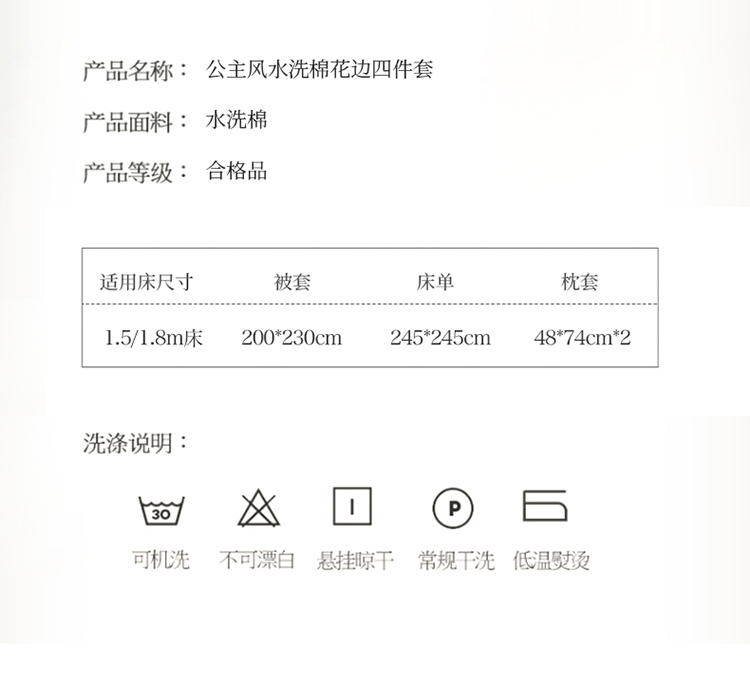 金米诺 新款韩版花边水洗棉泡泡纱四件套公主条四件套 褶皱-奶白,褶皱-奶白