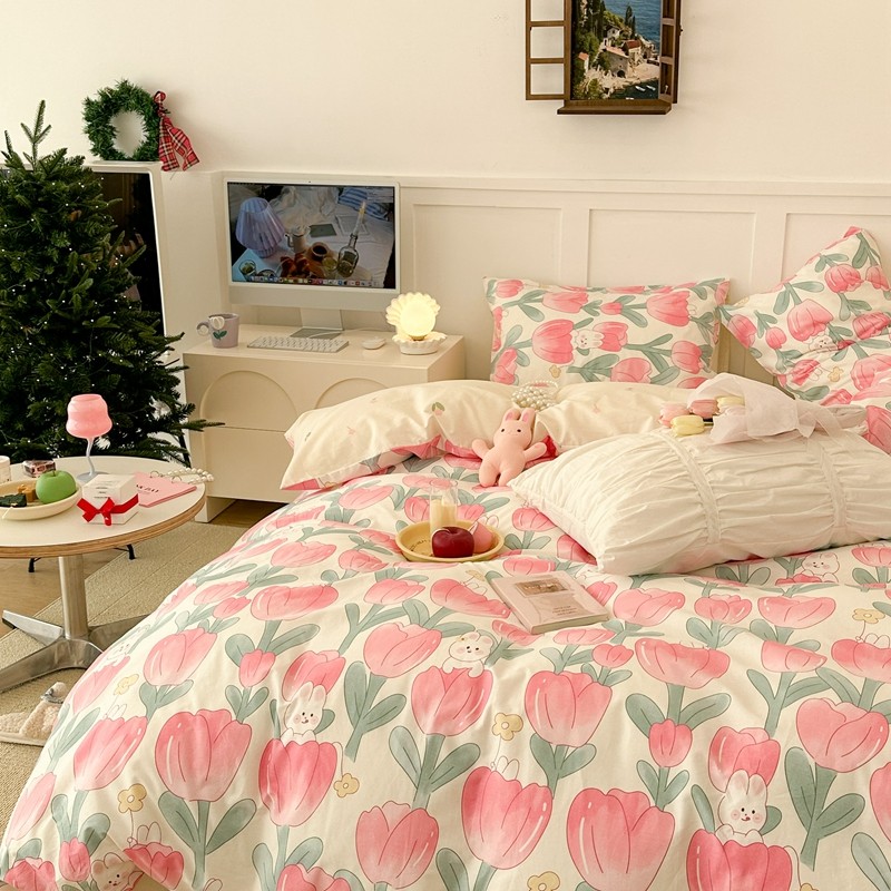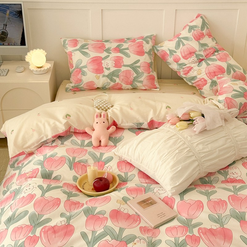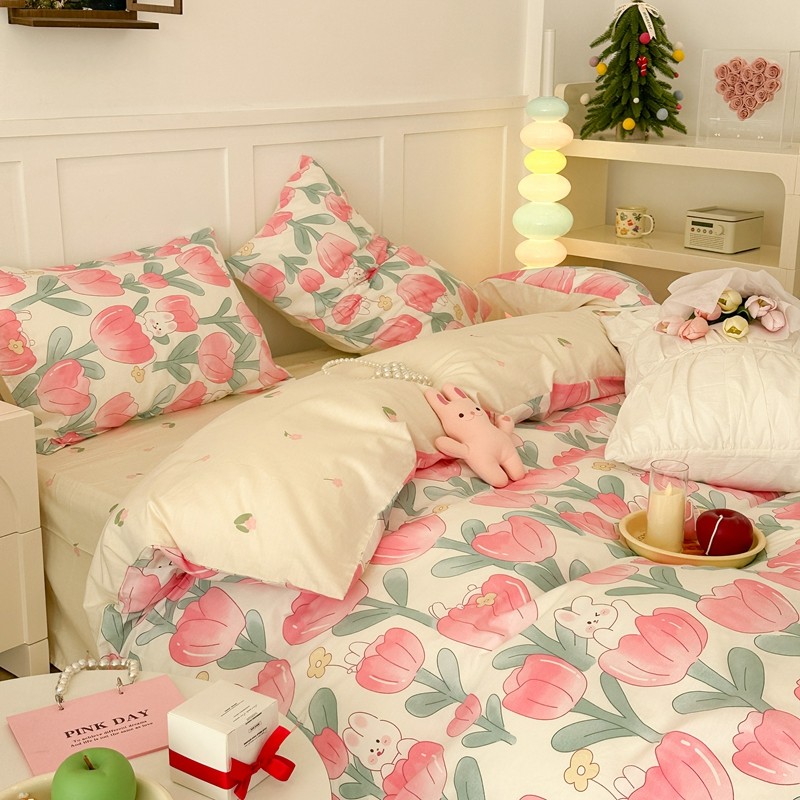(总)昔可 2023新款全棉四件套-第五批,春日采花小兔,复古波西,落樱紫花,绿野小兔,排排郁金香,芍药女孩,叶子樱桃