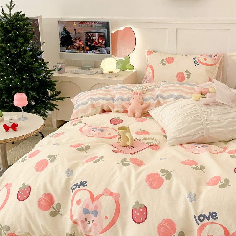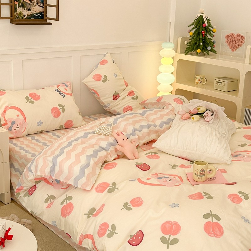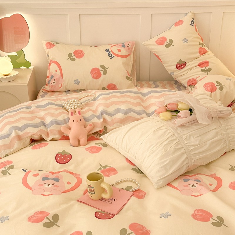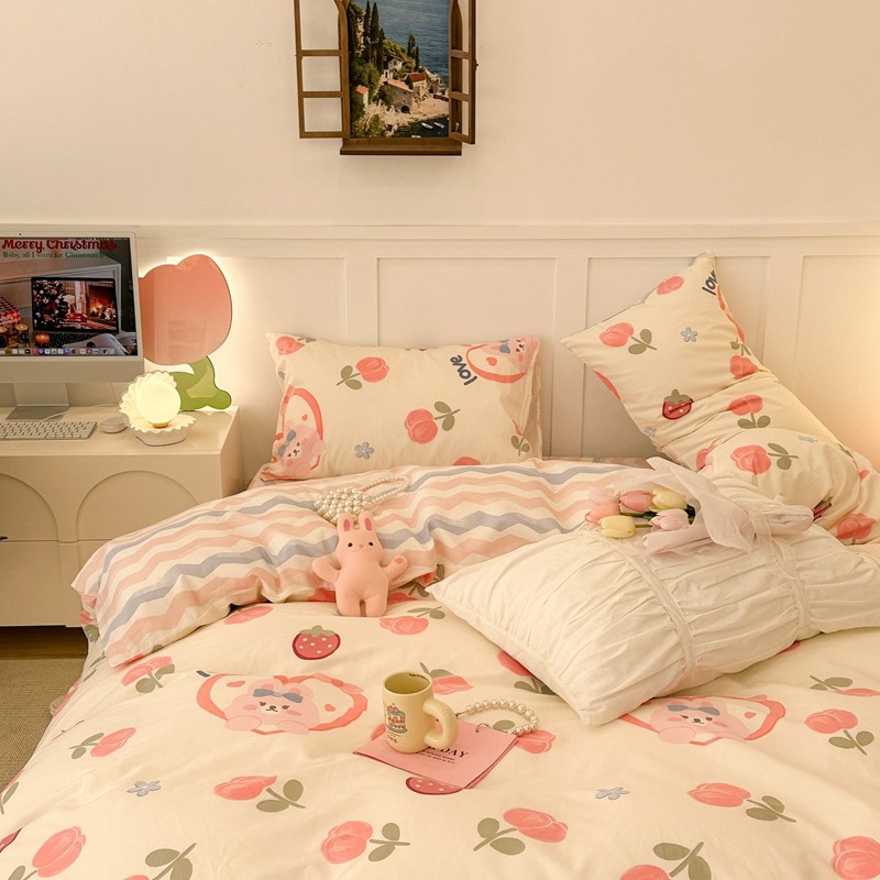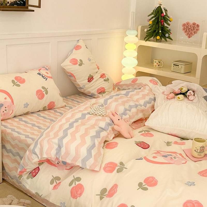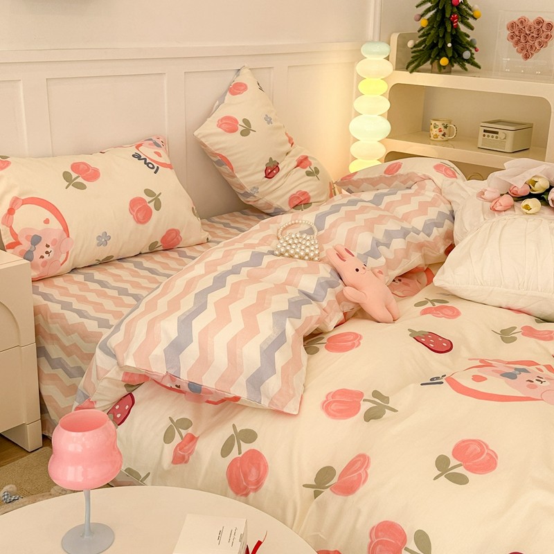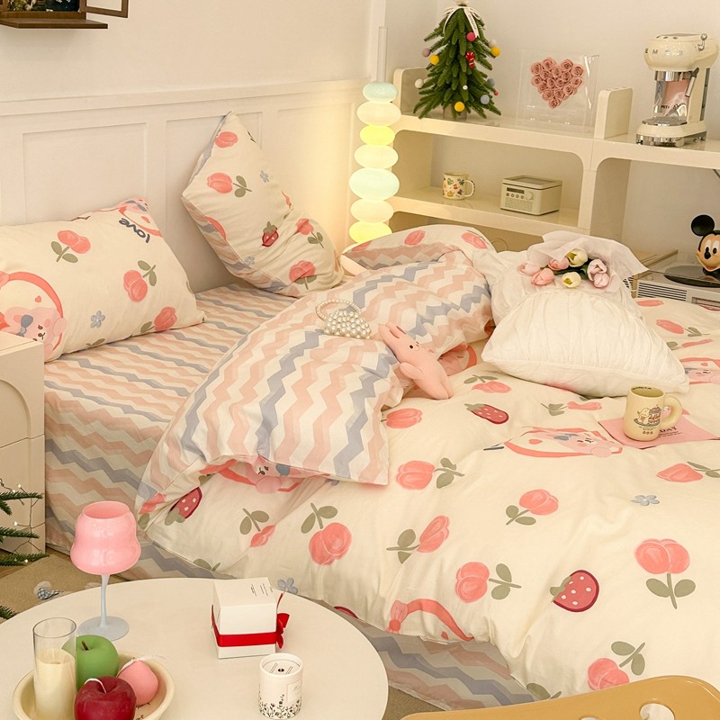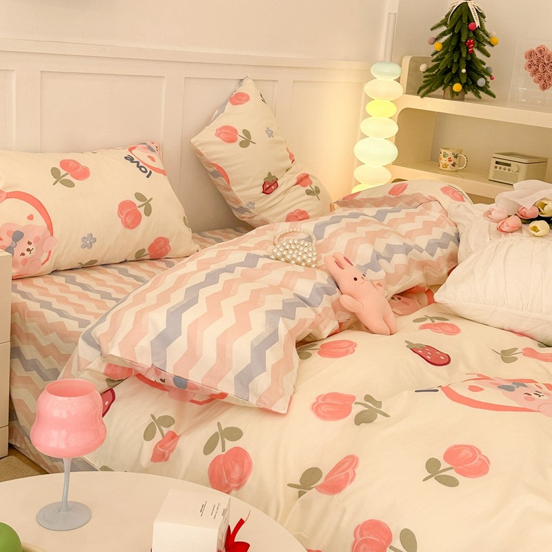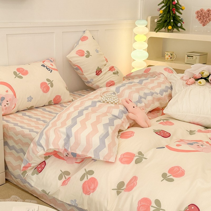 (总)昔可 2023新款学生季卡通普通款四件套,彩色气球熊,彩条恐龙,憨憨熊,花蜜小兔,蘑菇兔,圈圈草莓,蔬菜小兔,郁金香小萌狗