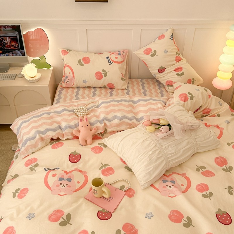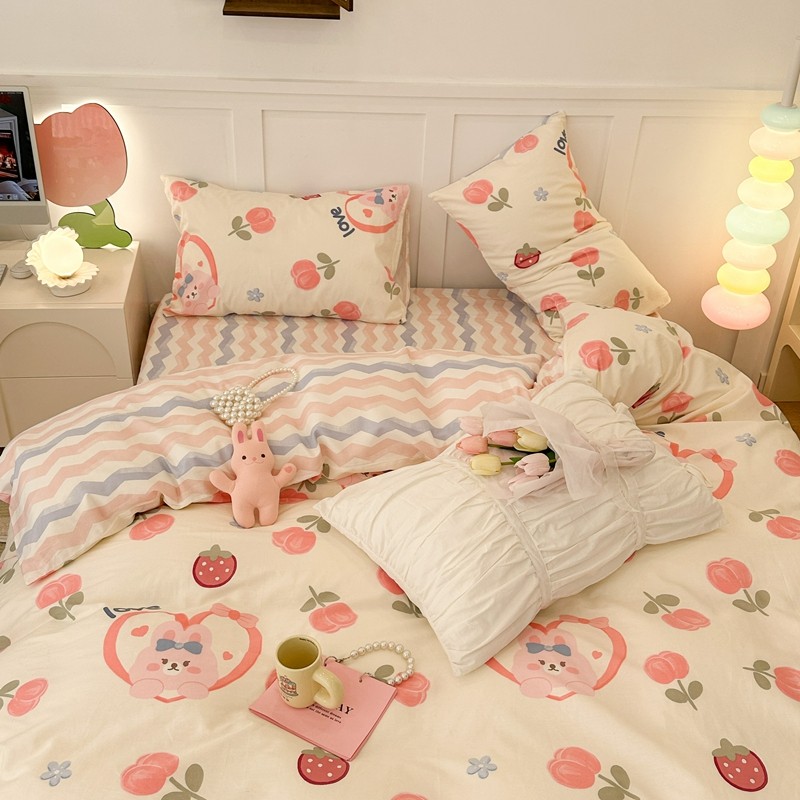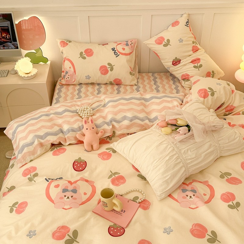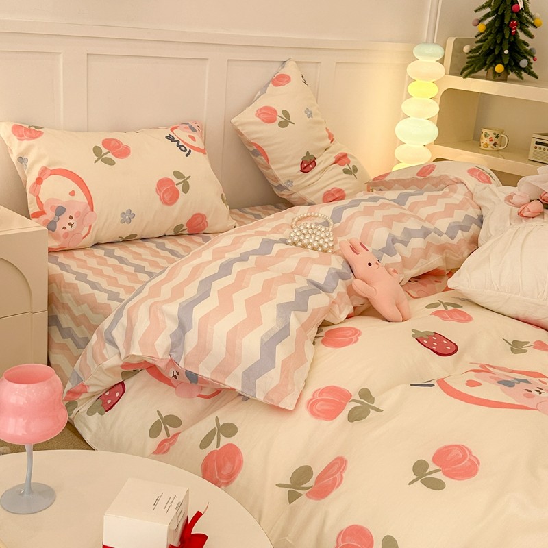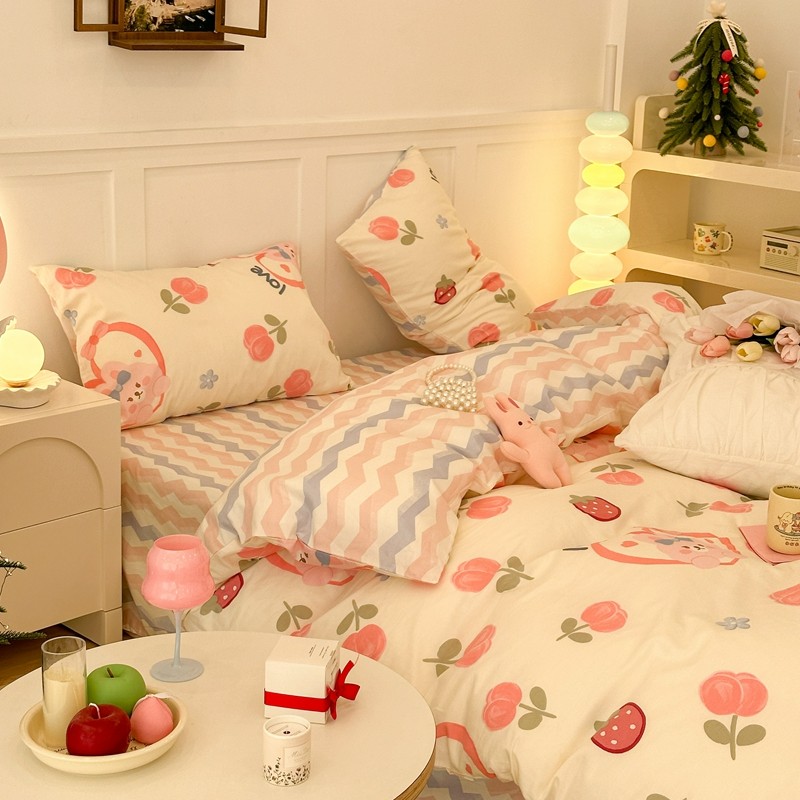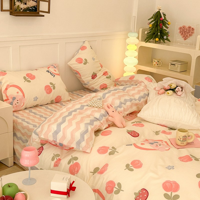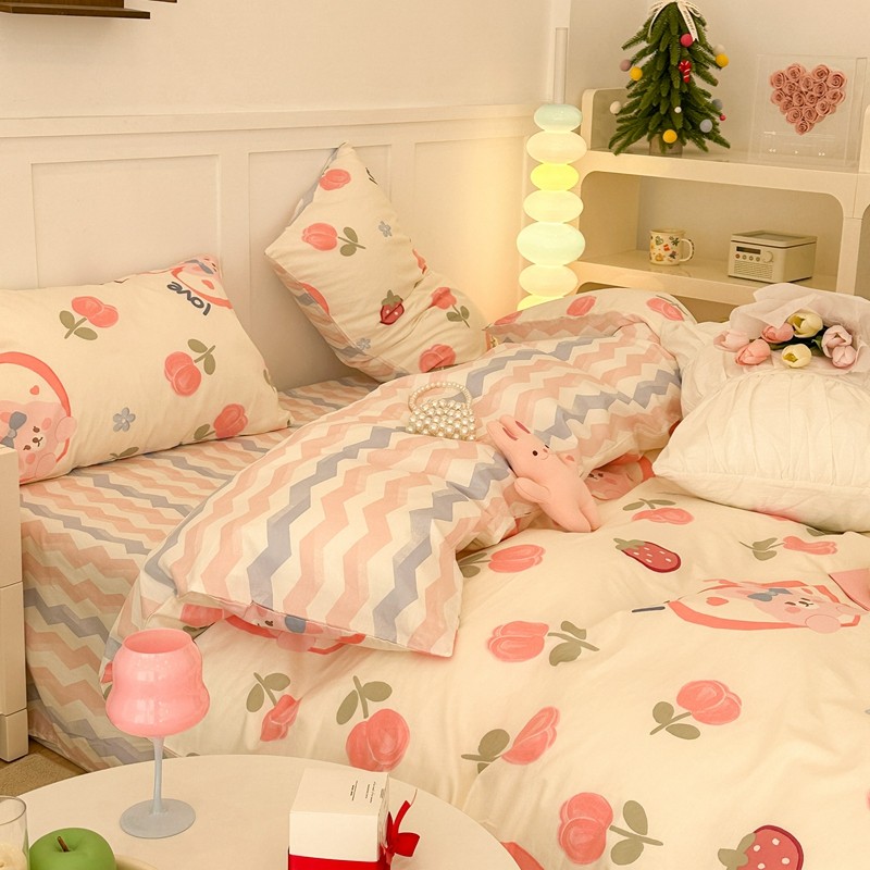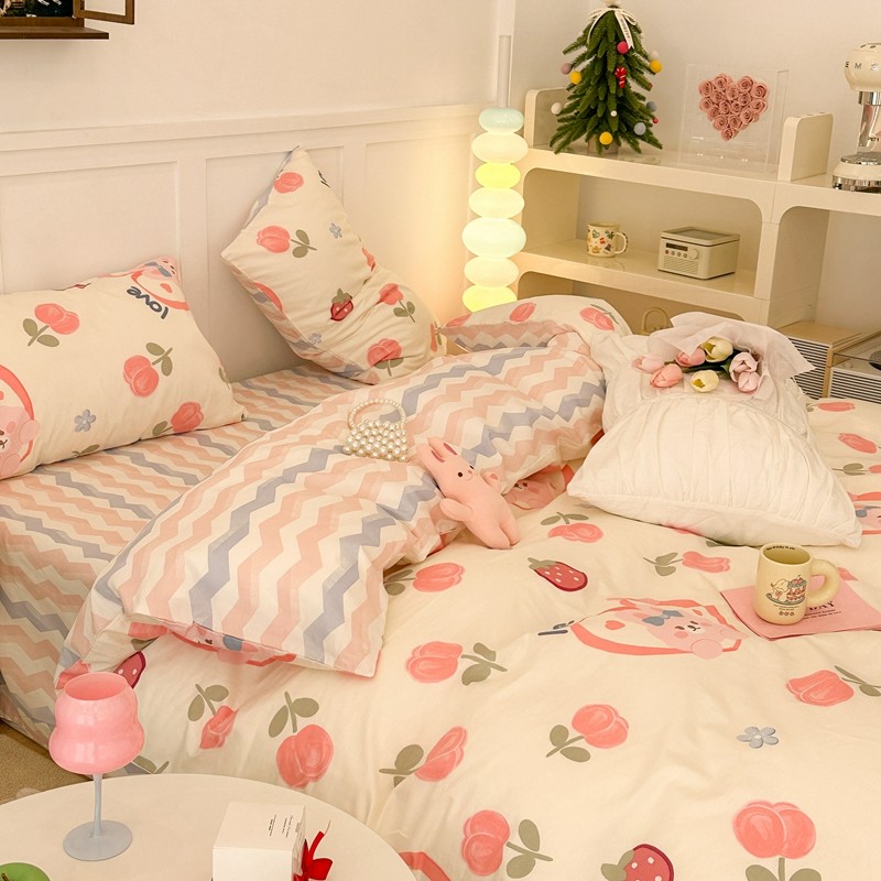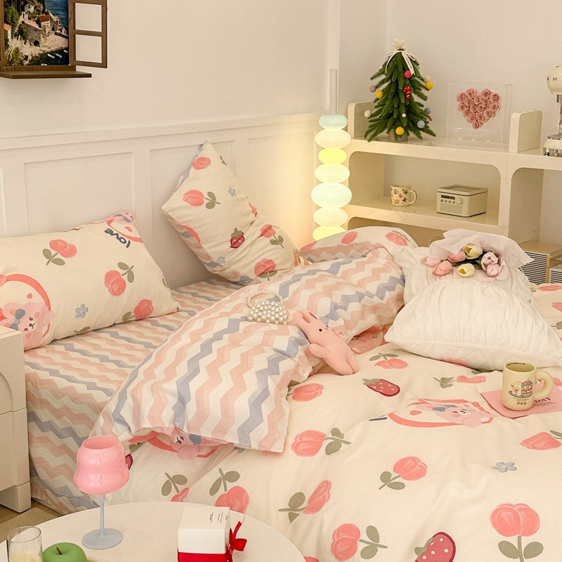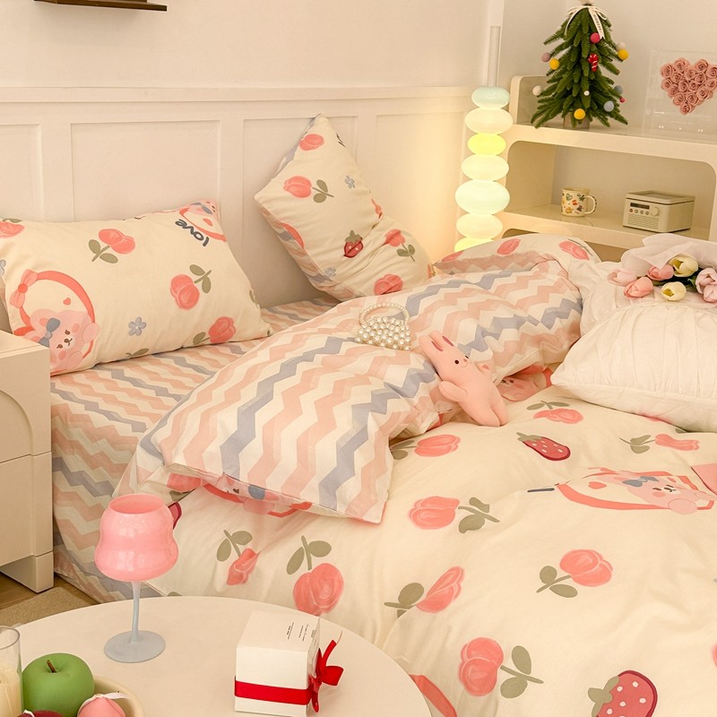 (总)昔可 2023新款学生季卡通普通款四件套,彩色气球熊,彩条恐龙,憨憨熊,花蜜小兔,蘑菇兔,圈圈草莓,蔬菜小兔,郁金香小萌狗