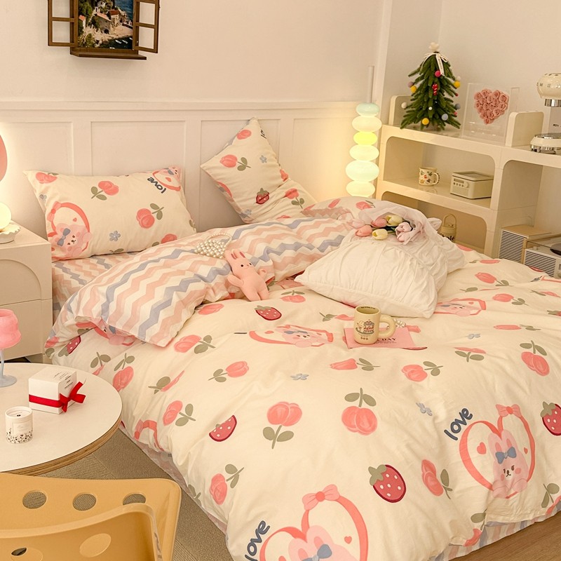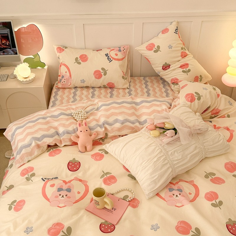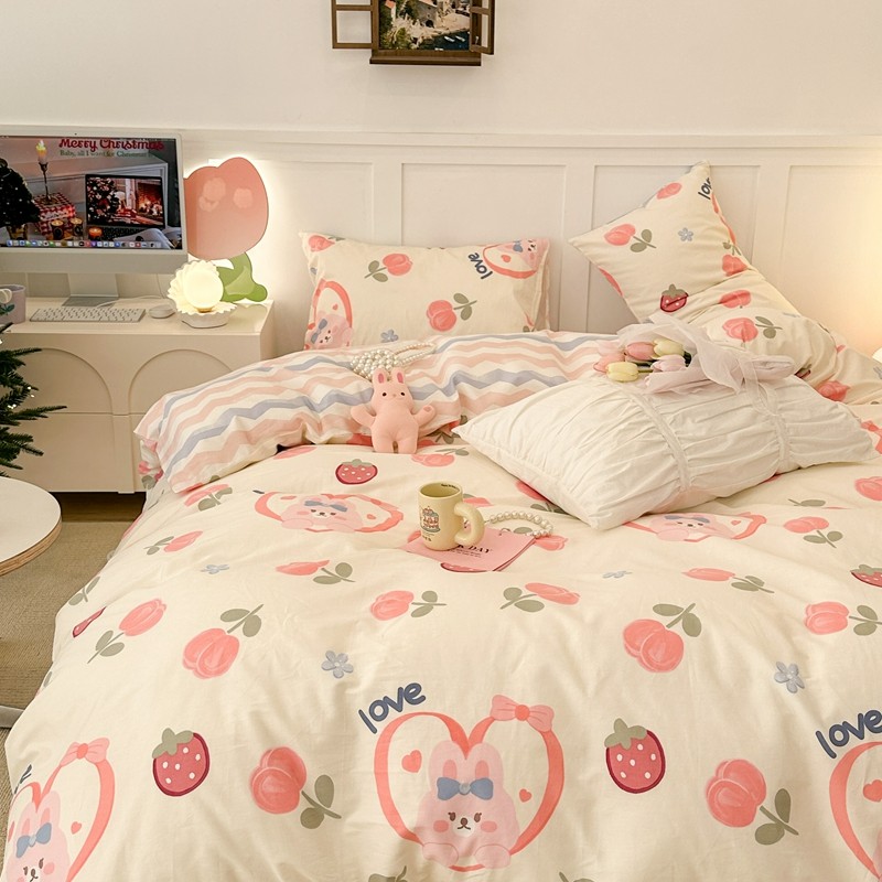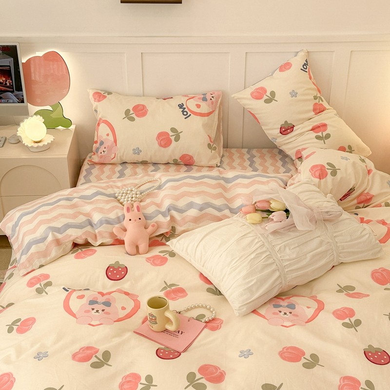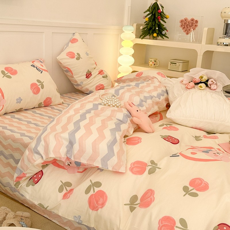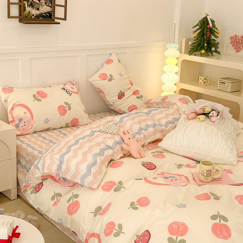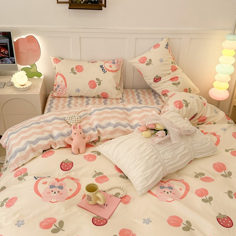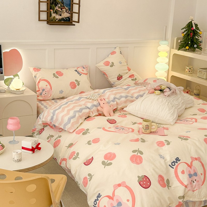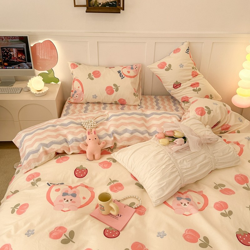 (总)昔可 2023新款学生季卡通普通款四件套,彩色气球熊,彩条恐龙,憨憨熊,花蜜小兔,蘑菇兔,圈圈草莓,蔬菜小兔,郁金香小萌狗