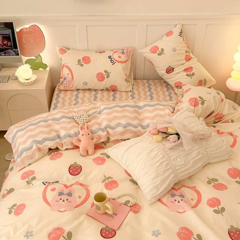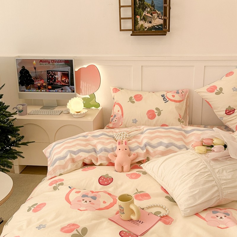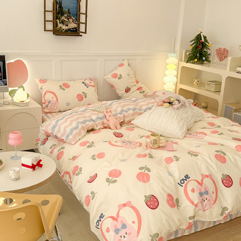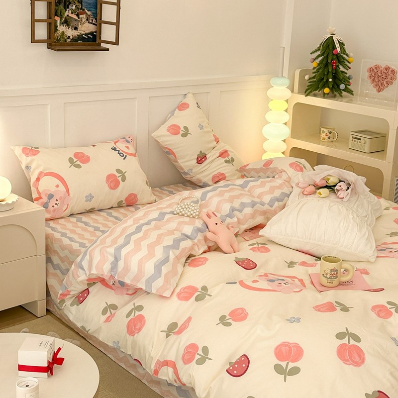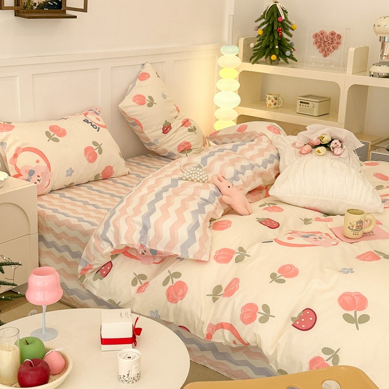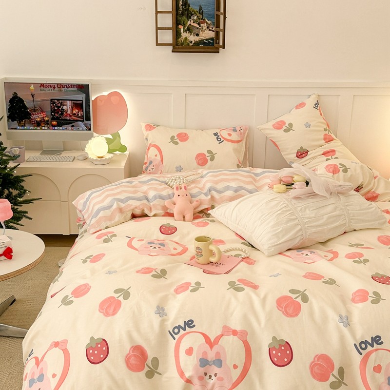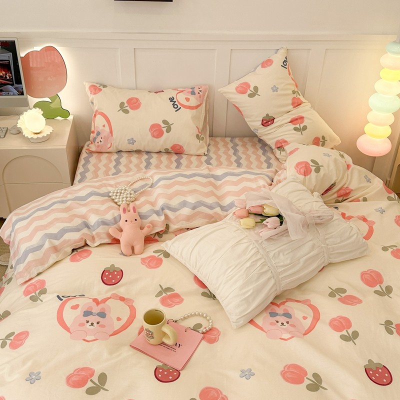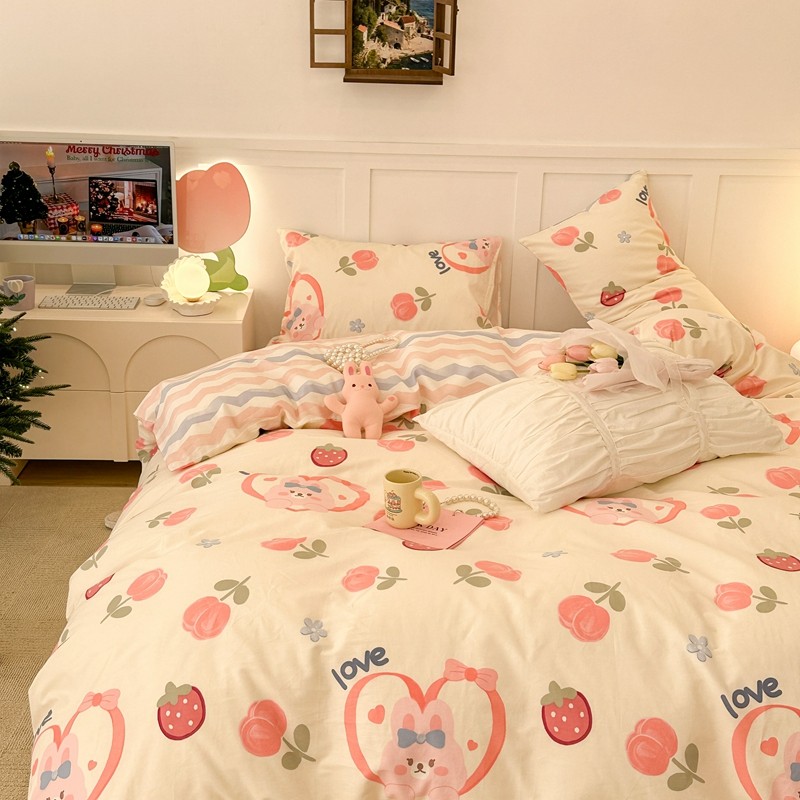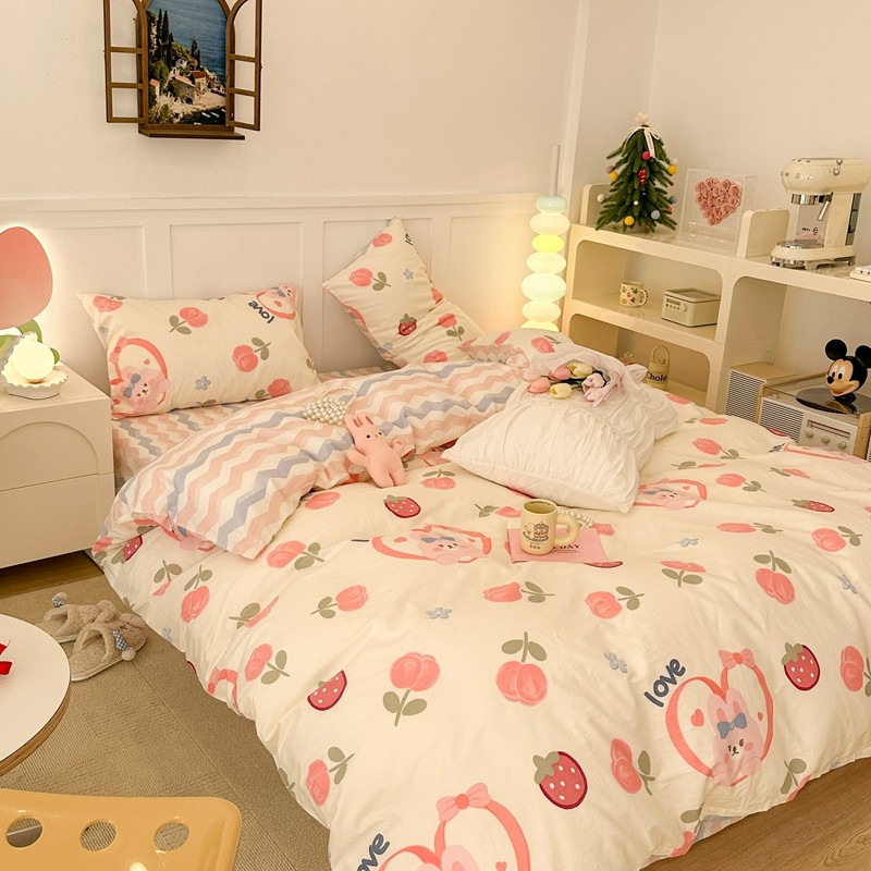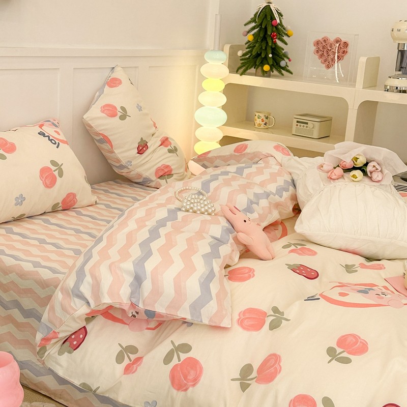 (总)昔可 2023新款学生季卡通普通款四件套,彩色气球熊,彩条恐龙,憨憨熊,花蜜小兔,蘑菇兔,圈圈草莓,蔬菜小兔,郁金香小萌狗