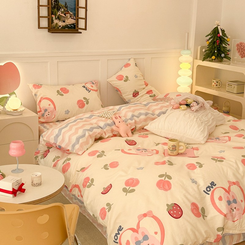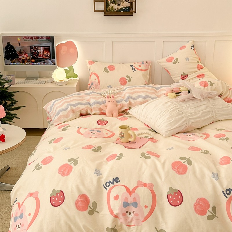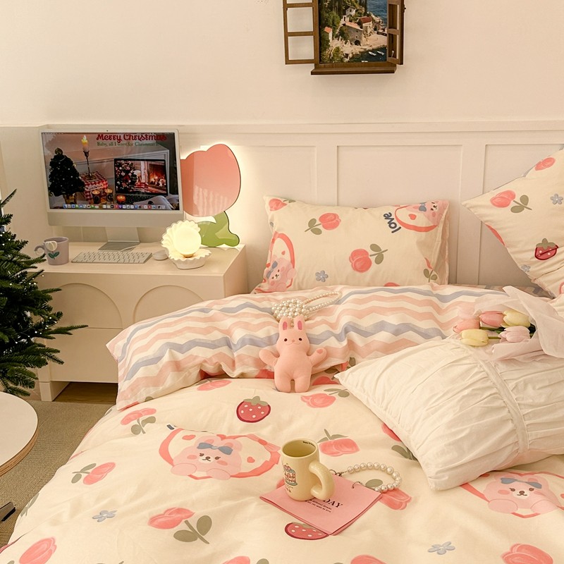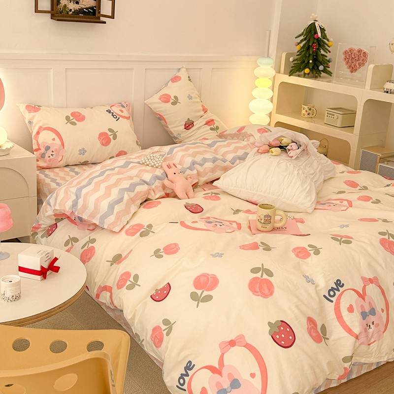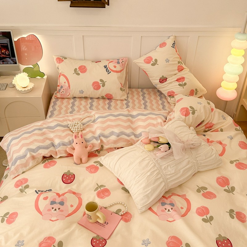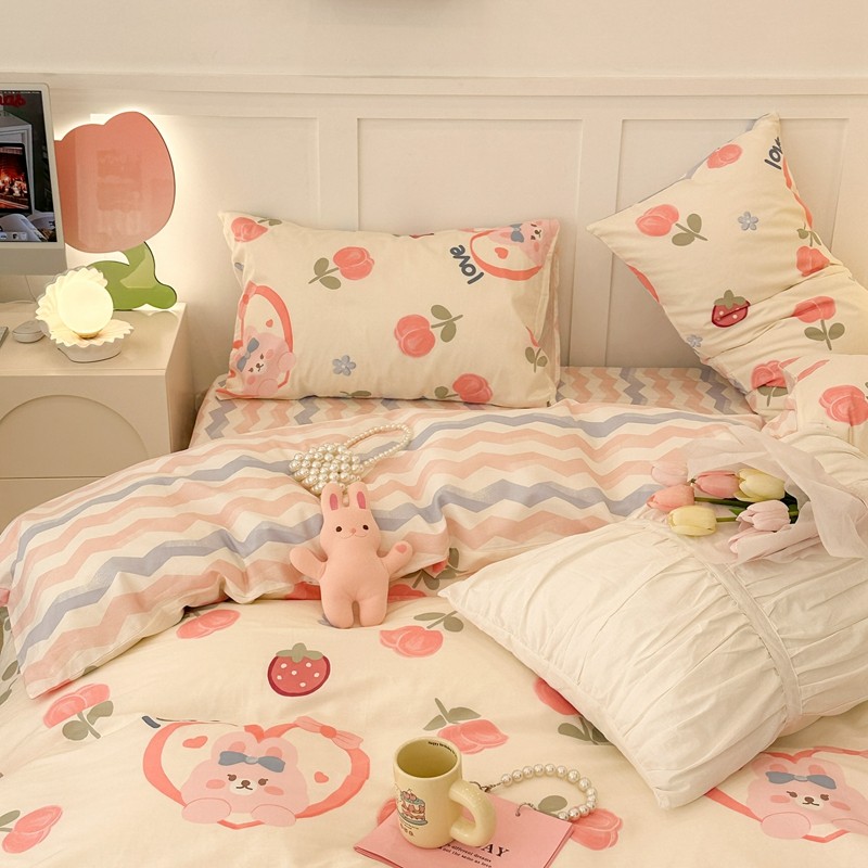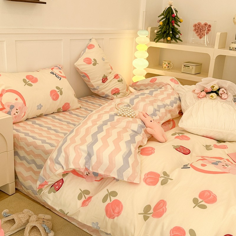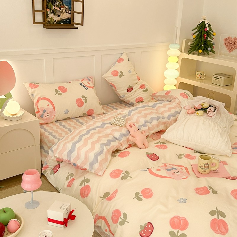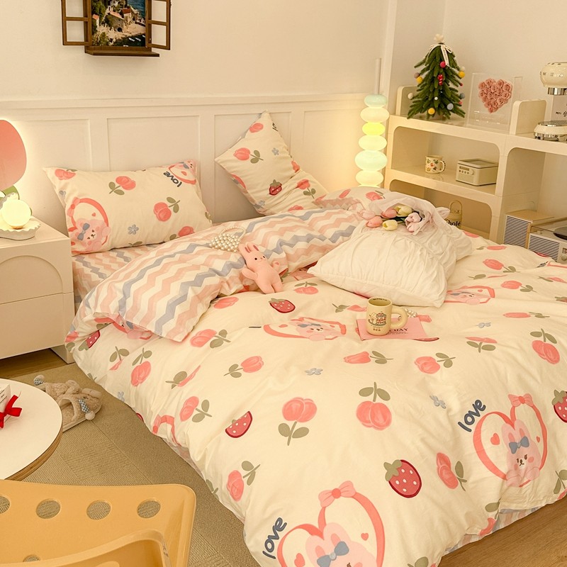 (总)昔可 2023新款学生季卡通普通款四件套,彩色气球熊,彩条恐龙,憨憨熊,花蜜小兔,蘑菇兔,圈圈草莓,蔬菜小兔,郁金香小萌狗