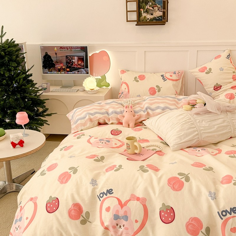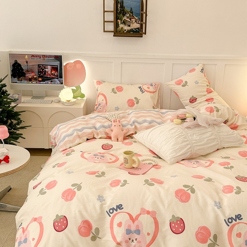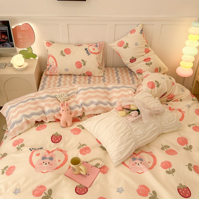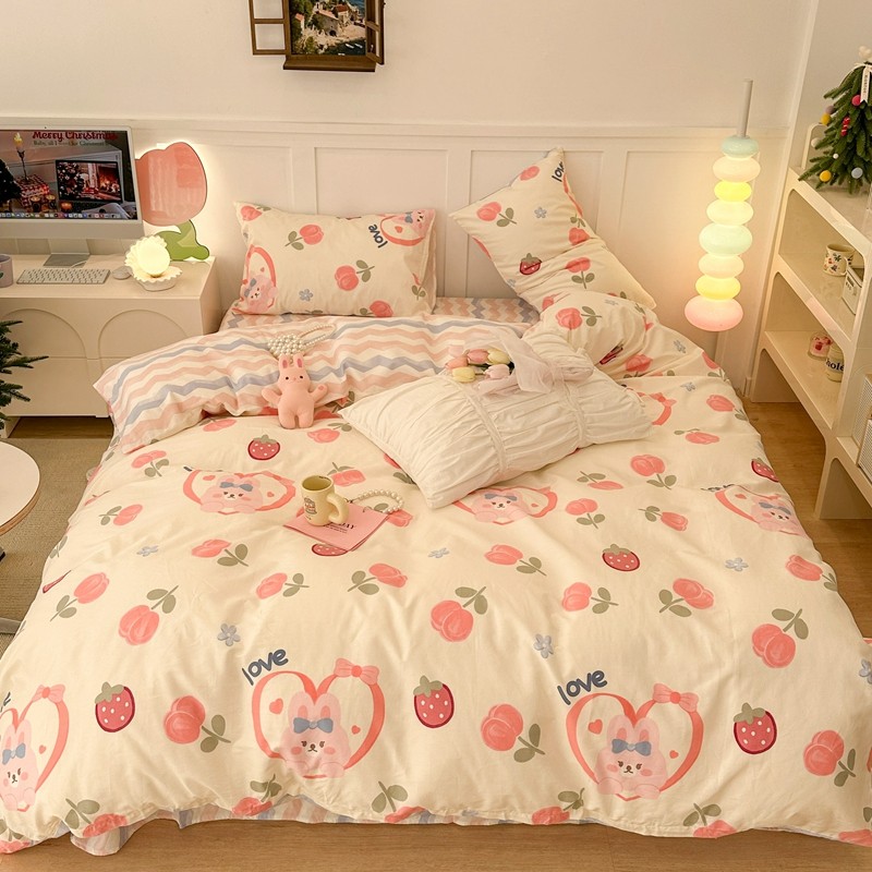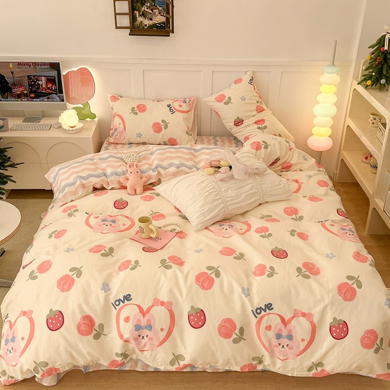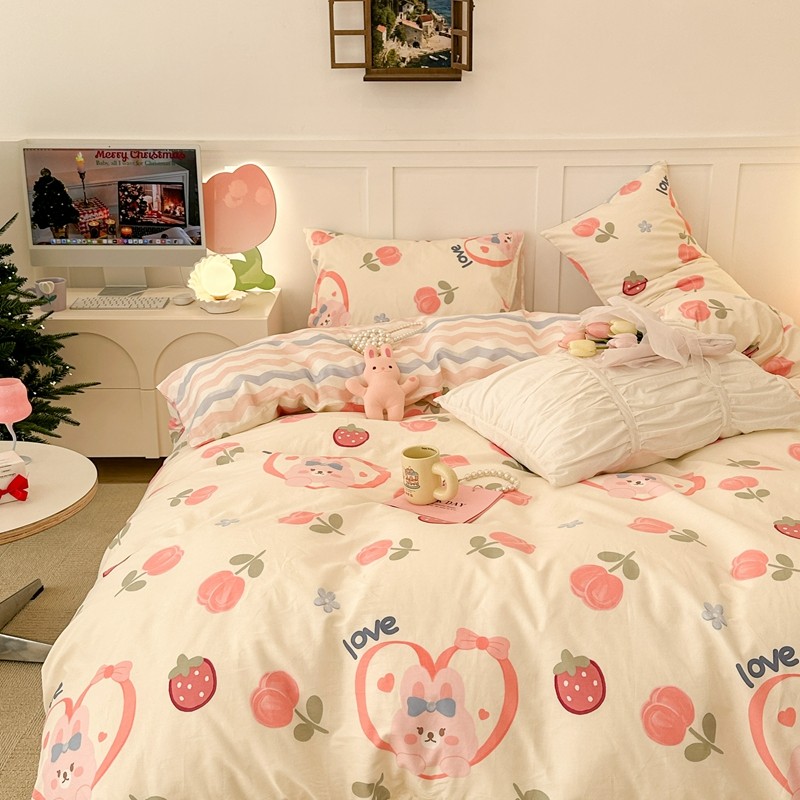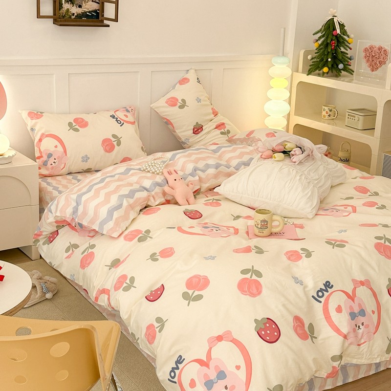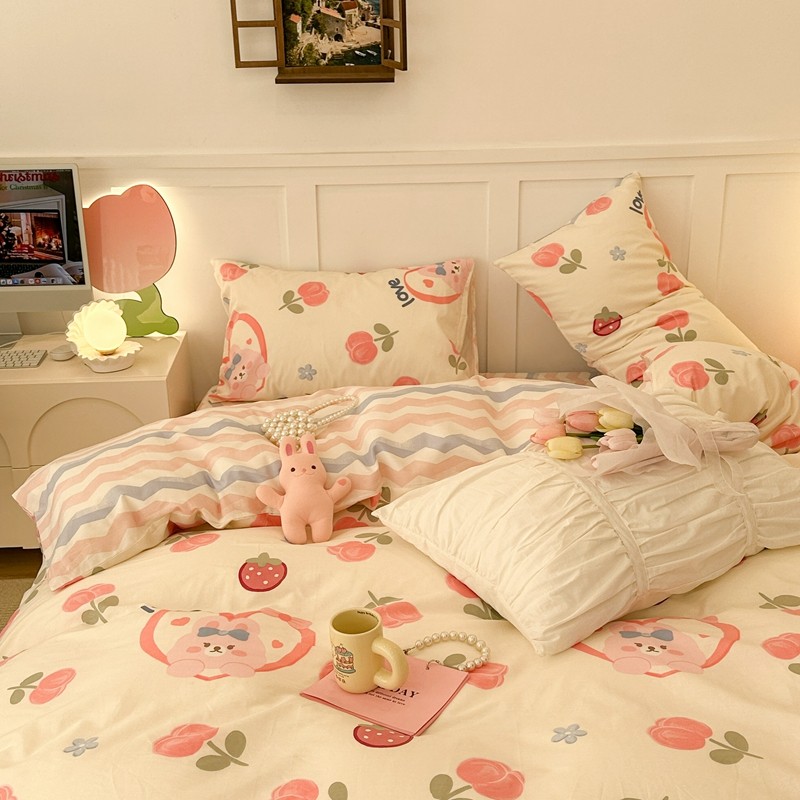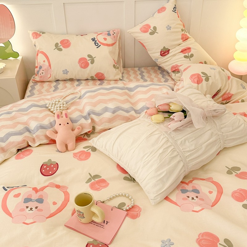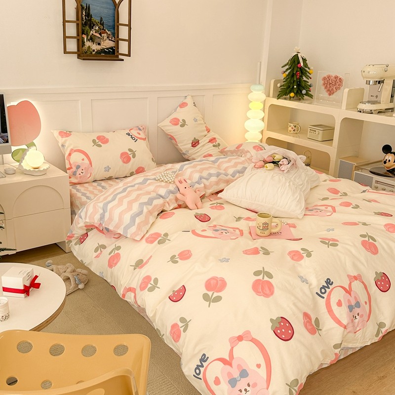 (总)昔可 2023新款学生季卡通普通款四件套,彩色气球熊,彩条恐龙,憨憨熊,花蜜小兔,蘑菇兔,圈圈草莓,蔬菜小兔,郁金香小萌狗