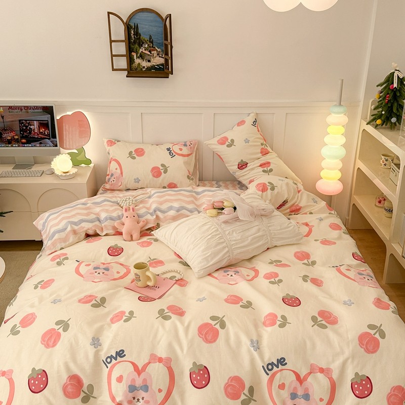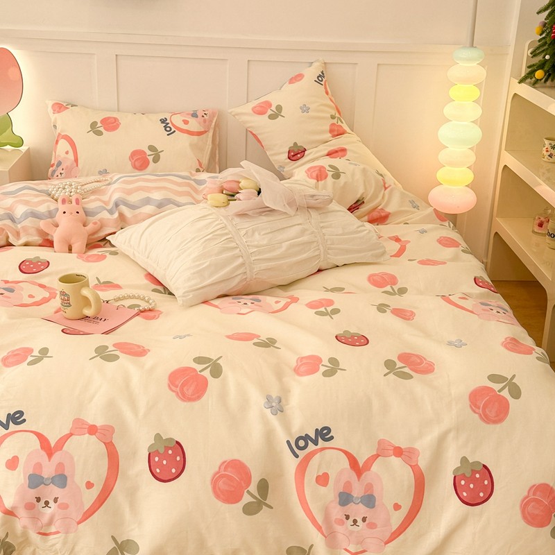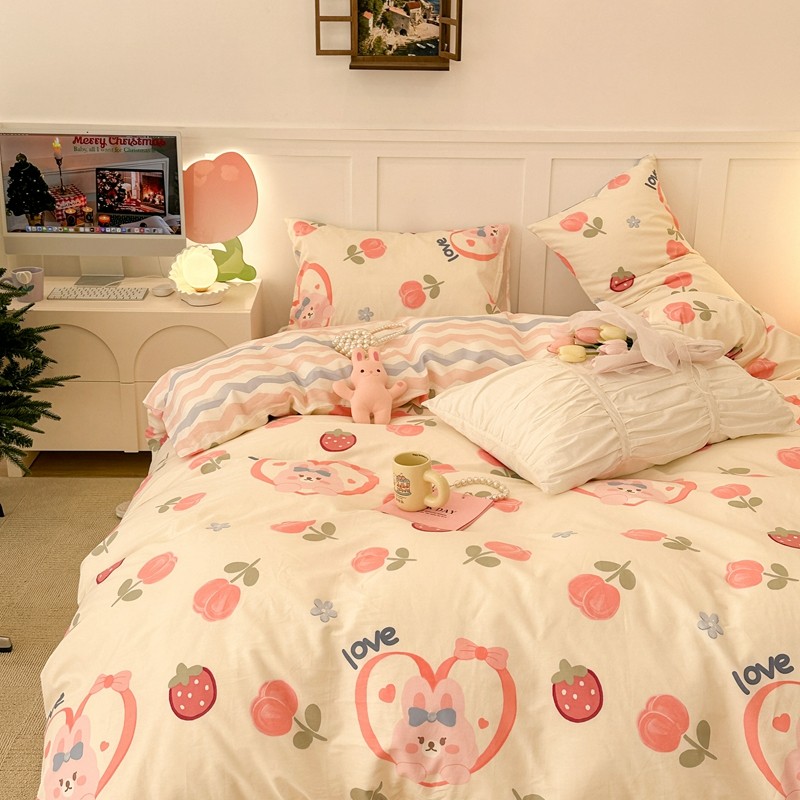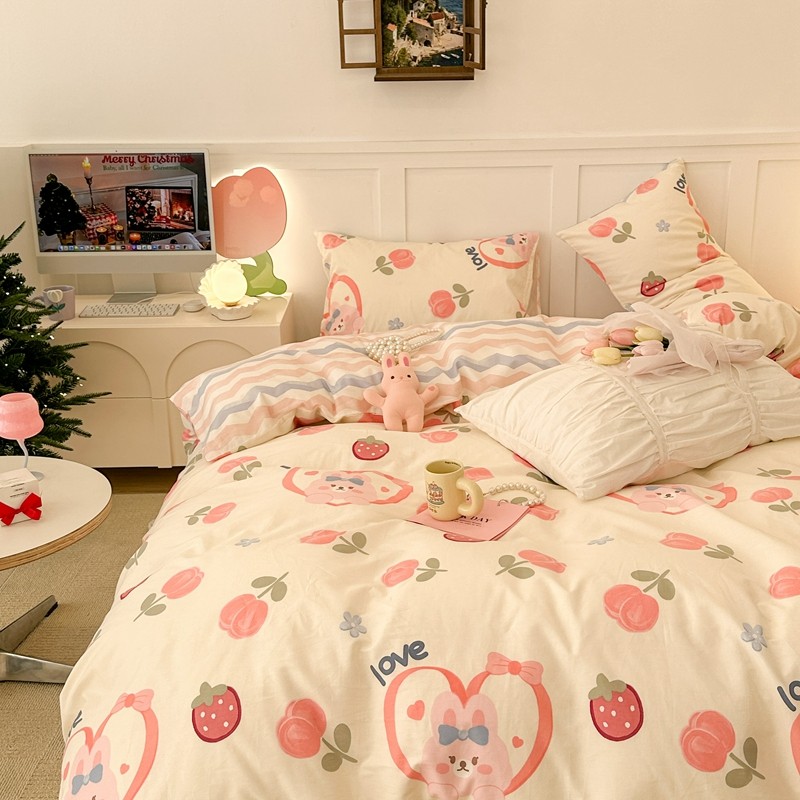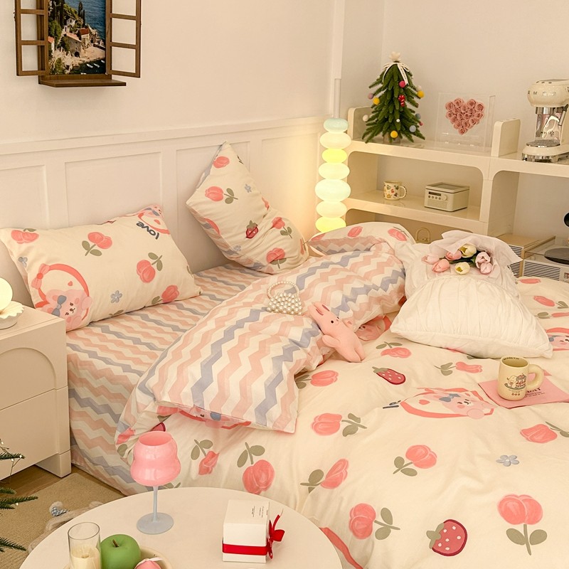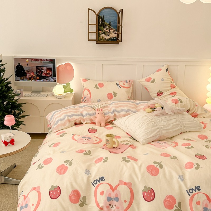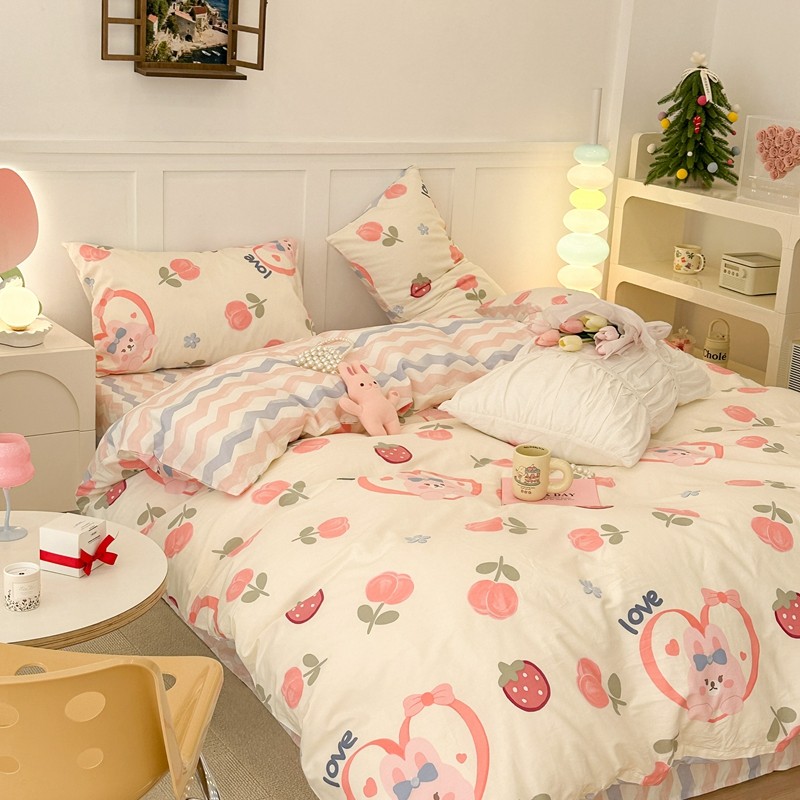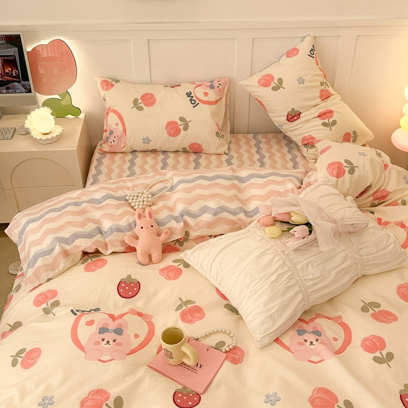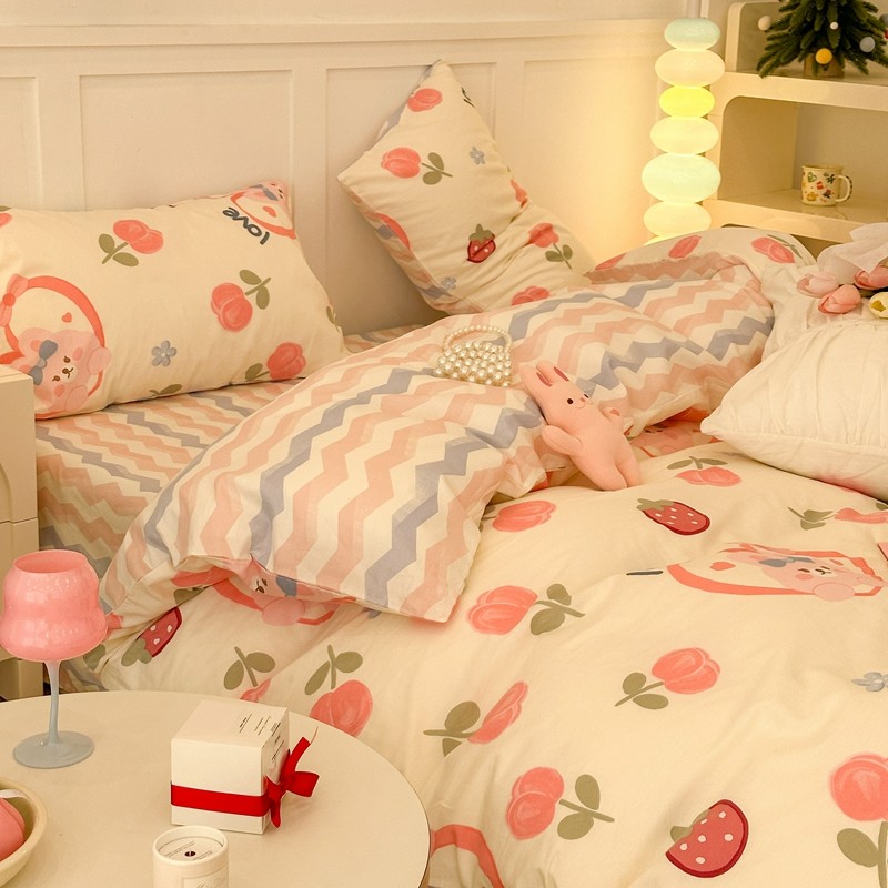 (总)昔可 2023新款学生季卡通普通款四件套,彩色气球熊,彩条恐龙,憨憨熊,花蜜小兔,蘑菇兔,圈圈草莓,蔬菜小兔,郁金香小萌狗