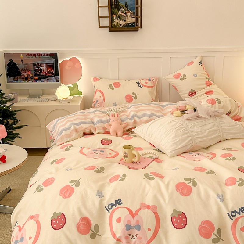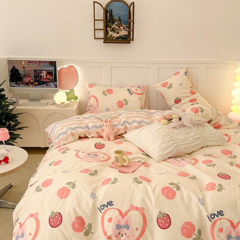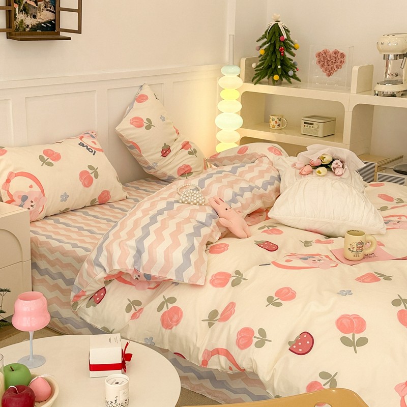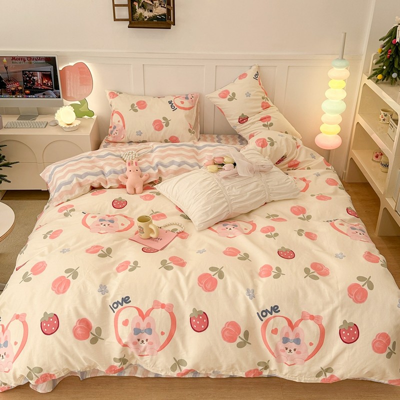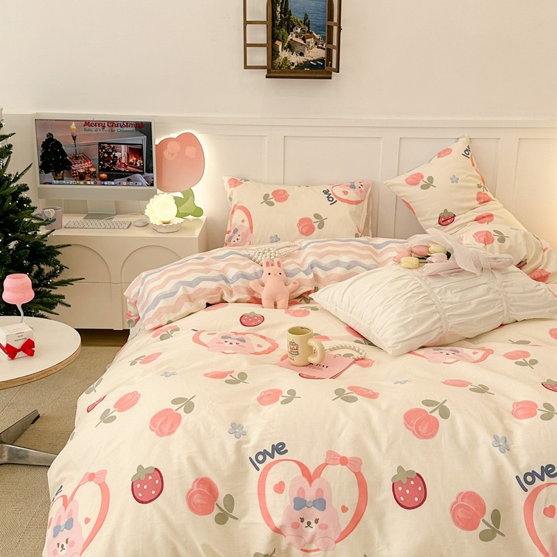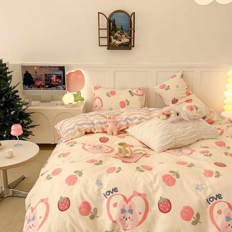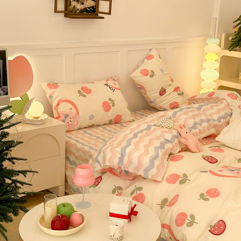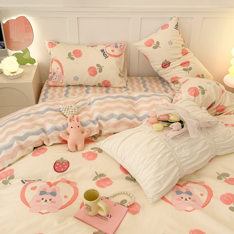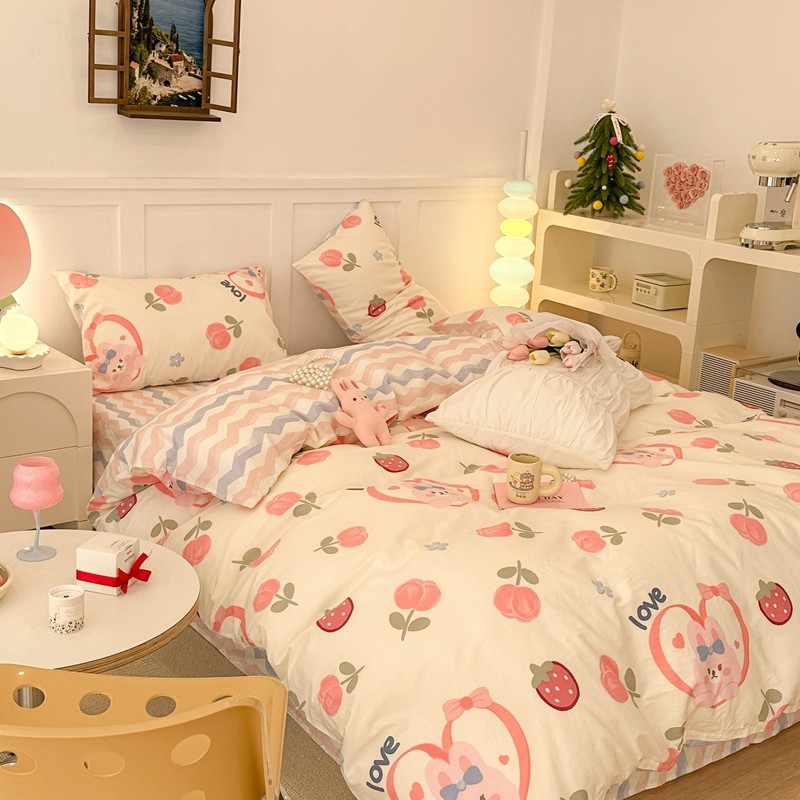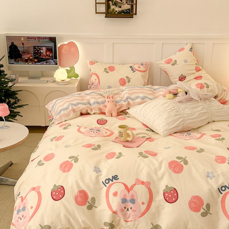 (总)昔可 2023新款学生季卡通普通款四件套,彩色气球熊,彩条恐龙,憨憨熊,花蜜小兔,蘑菇兔,圈圈草莓,蔬菜小兔,郁金香小萌狗