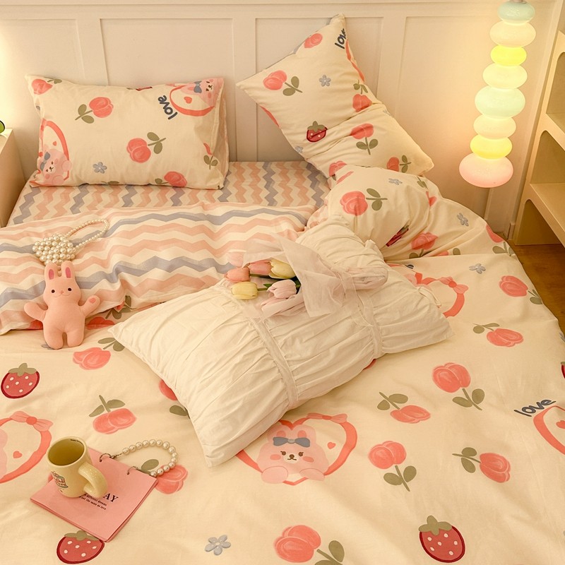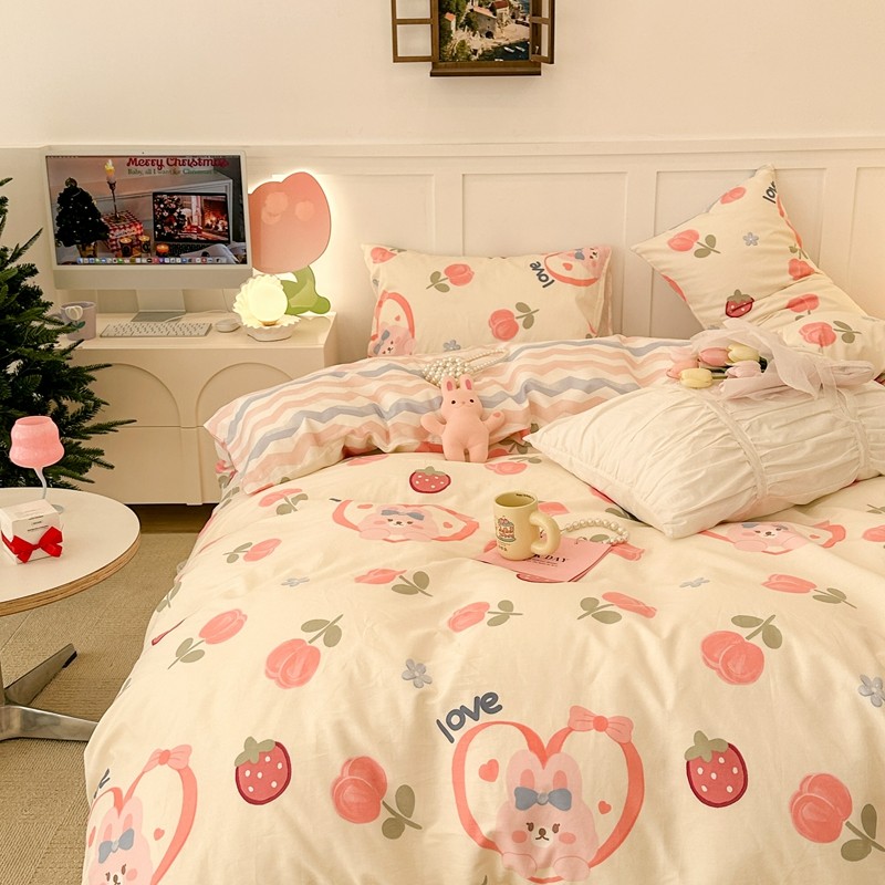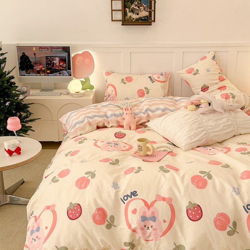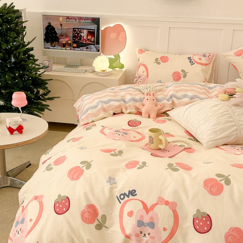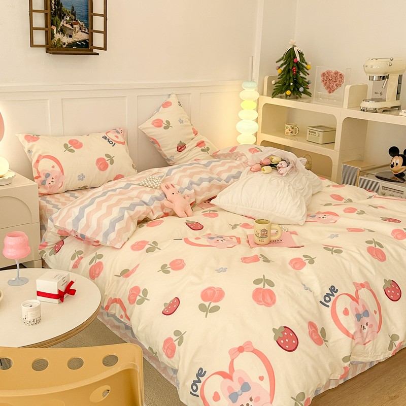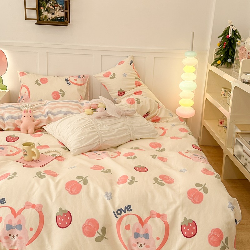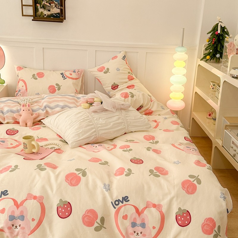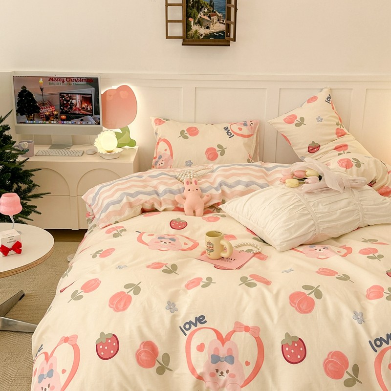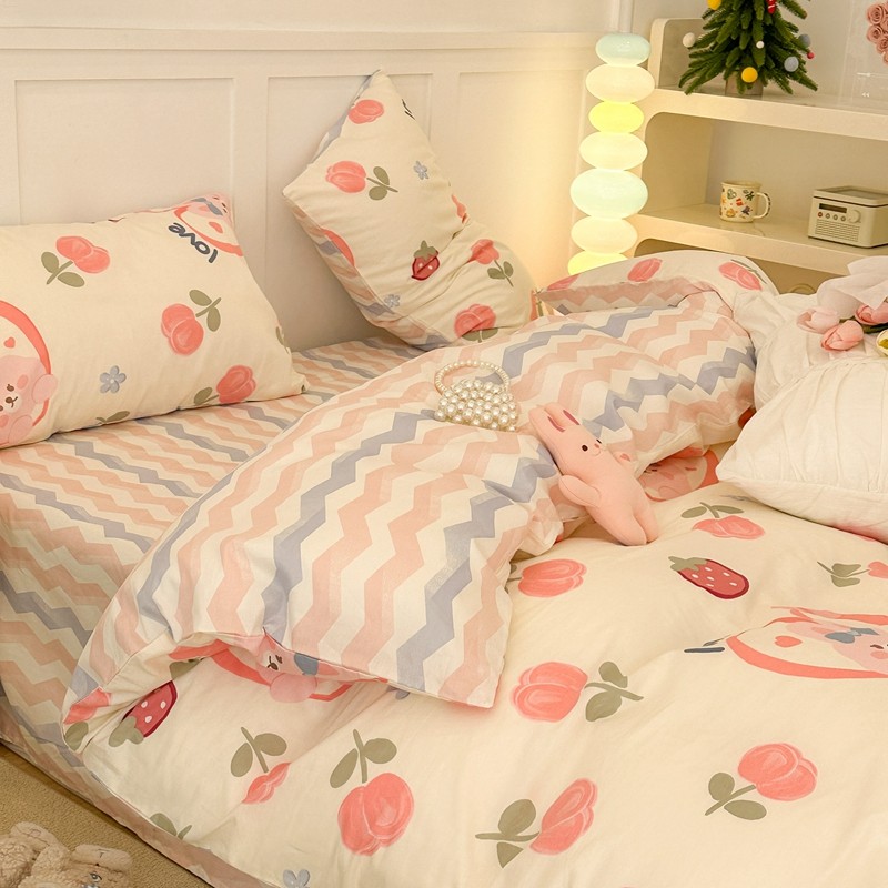 (总)昔可 2023新款学生季卡通普通款四件套,彩色气球熊,彩条恐龙,憨憨熊,花蜜小兔,蘑菇兔,圈圈草莓,蔬菜小兔,郁金香小萌狗