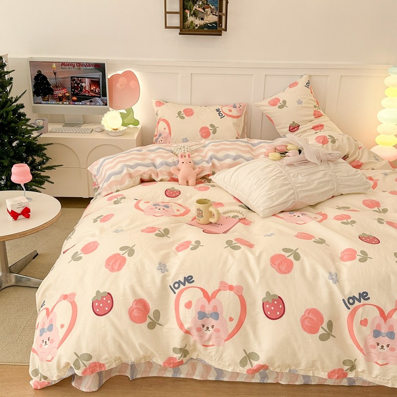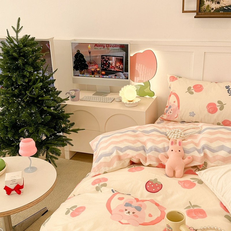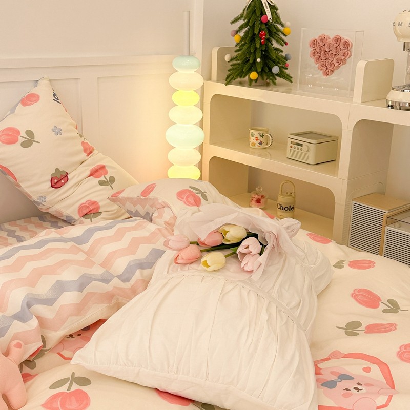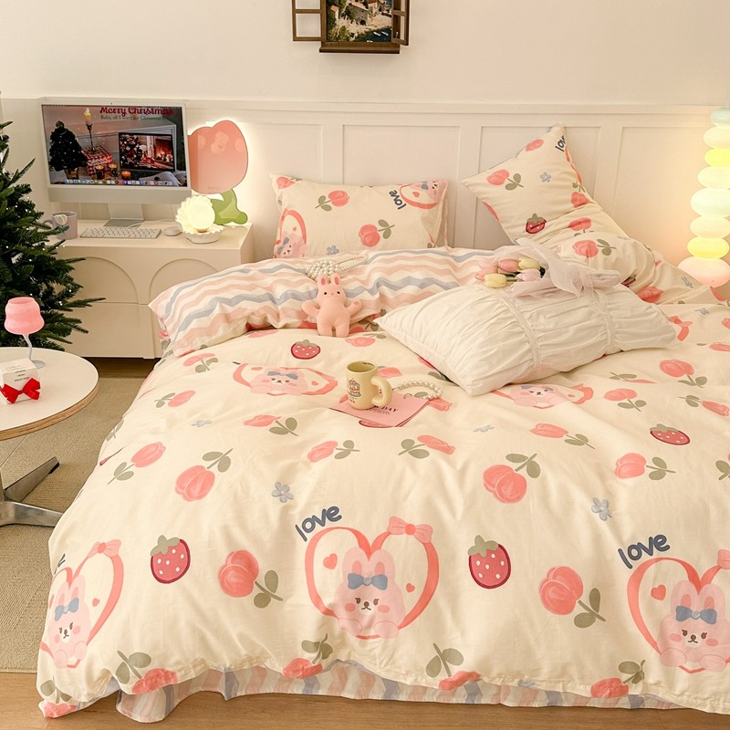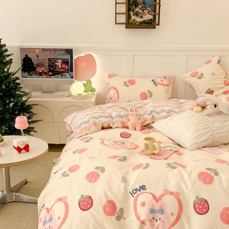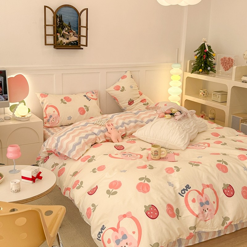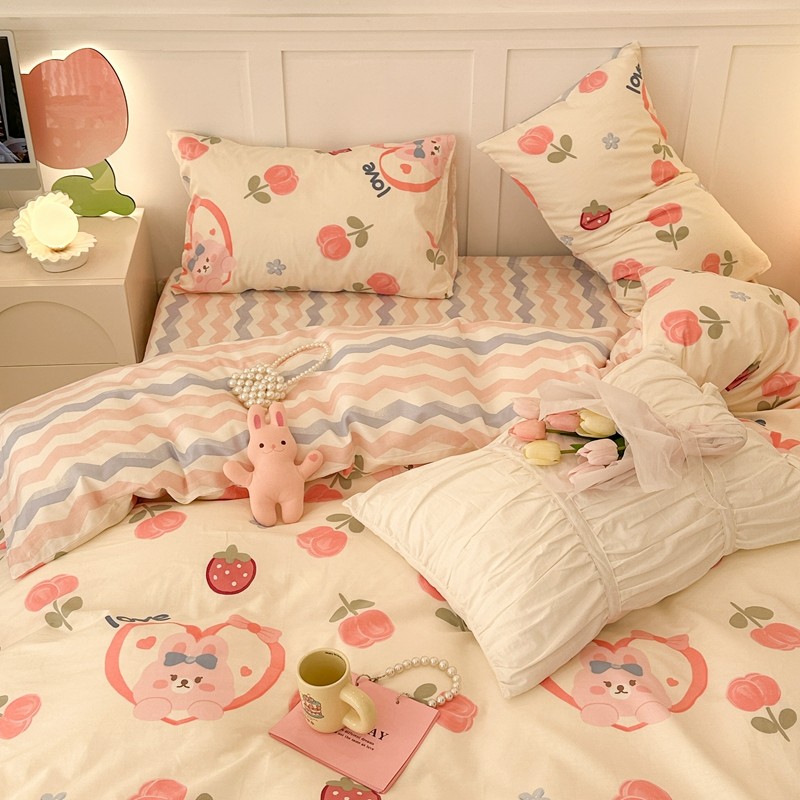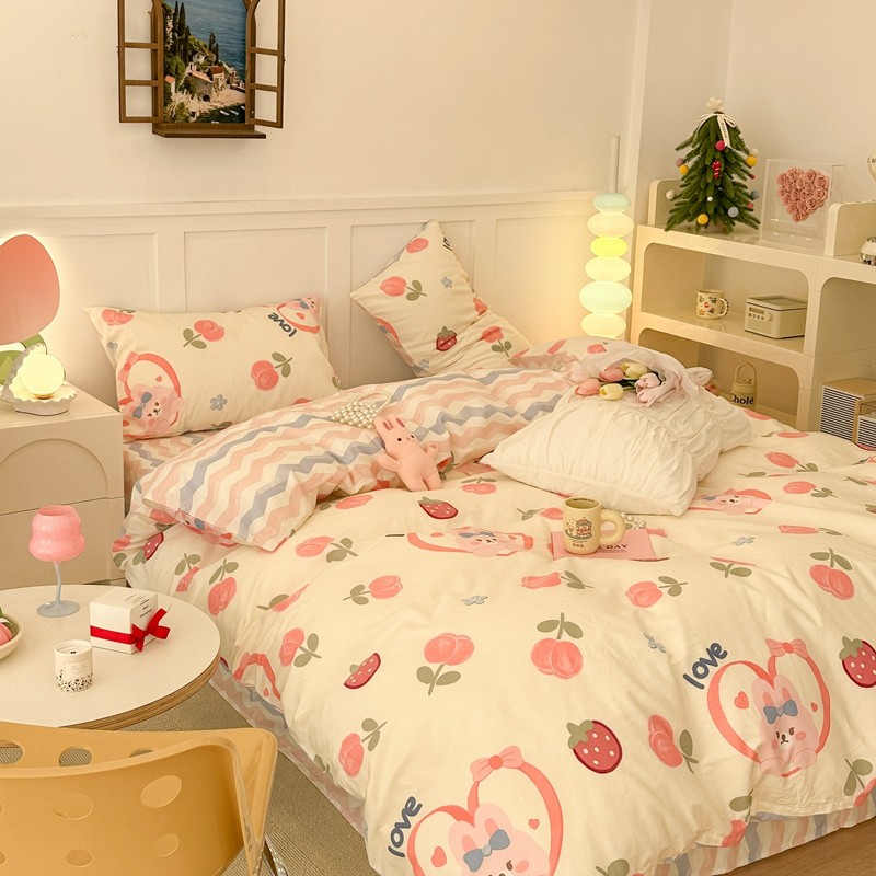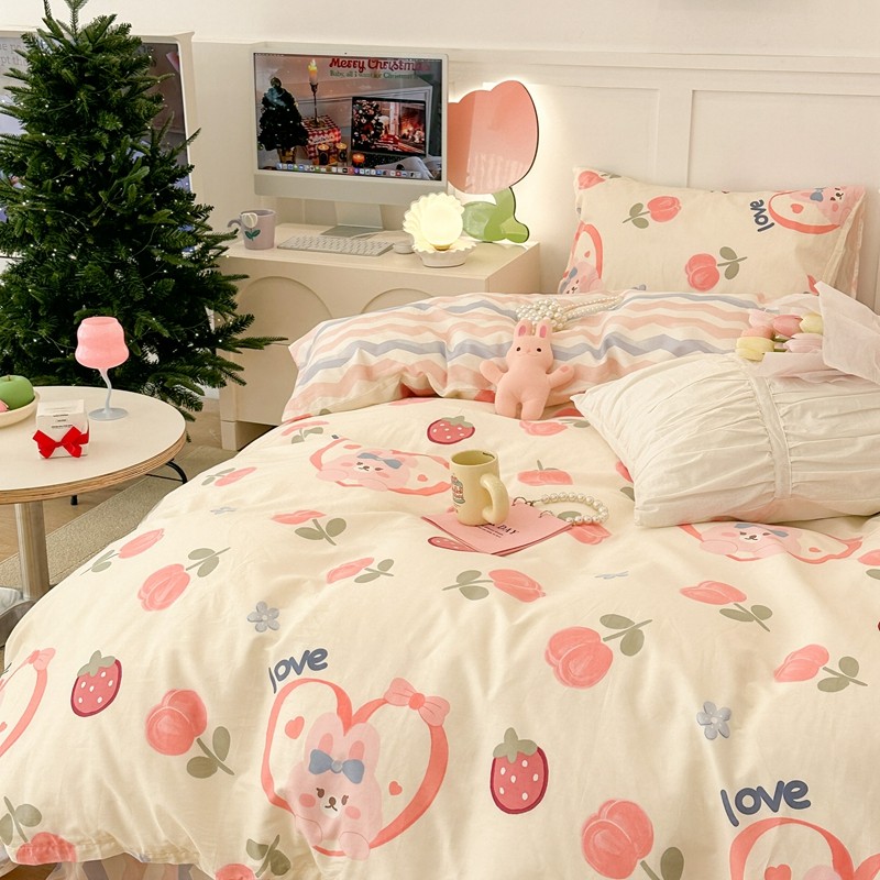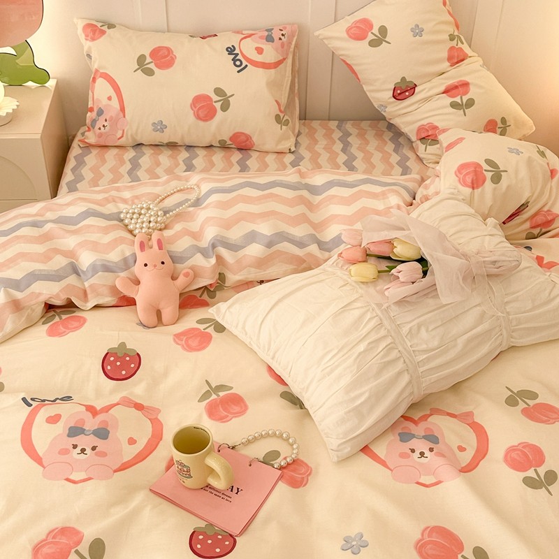 (总)昔可 2023新款学生季卡通普通款四件套,彩色气球熊,彩条恐龙,憨憨熊,花蜜小兔,蘑菇兔,圈圈草莓,蔬菜小兔,郁金香小萌狗