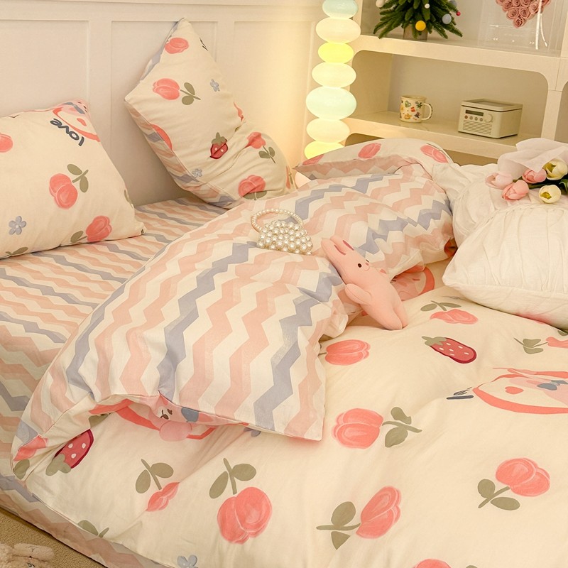 (总)昔可 2023新款学生季全棉四件套-小花系列,柏林少女,花野迷踪,少女粉草莓,微熏海棠,夏茉莉,小兰花,小小的樱桃,紫色果果,紫色葡萄