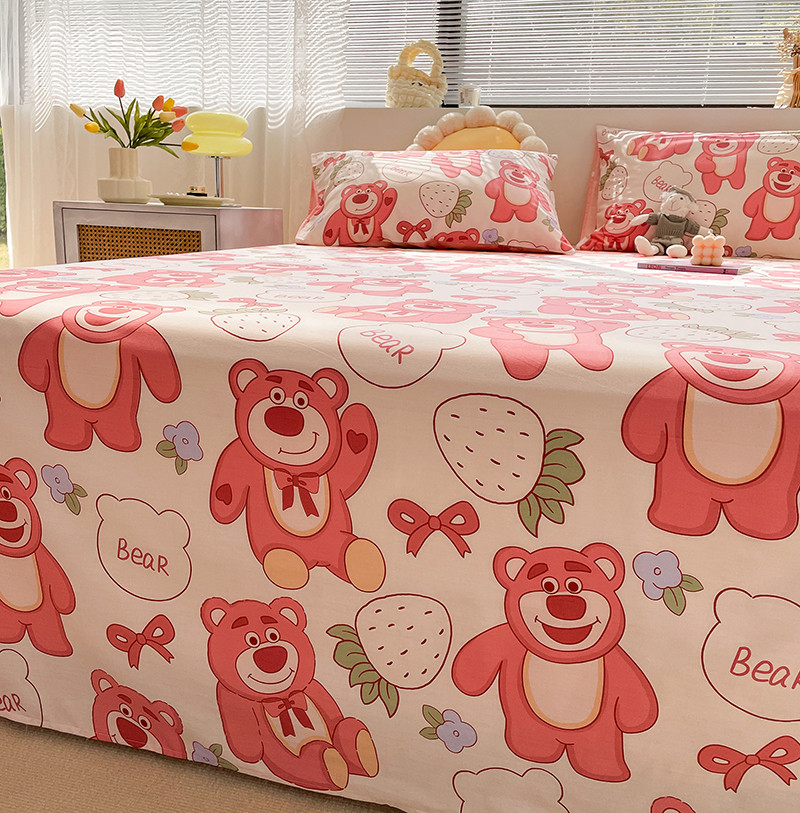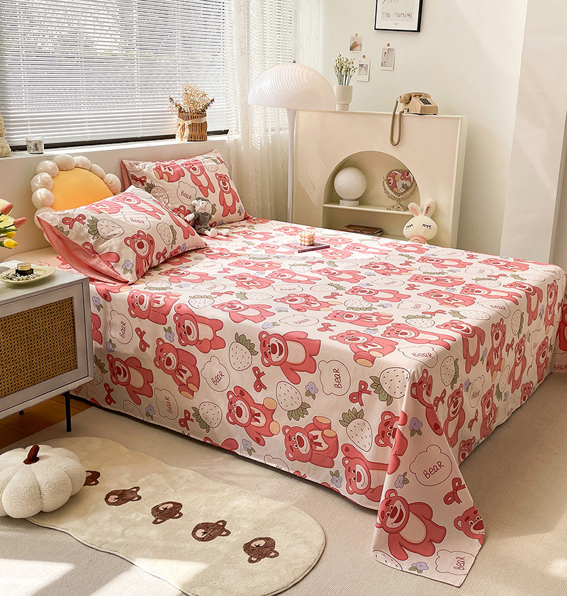 绵庭 2023新款 全棉印花床单 快乐草莓熊