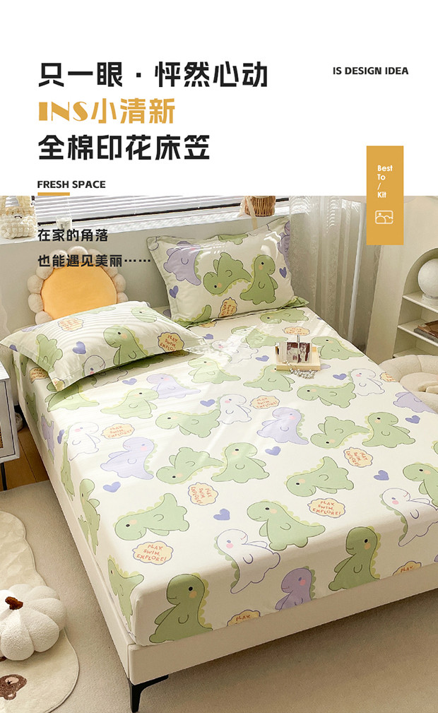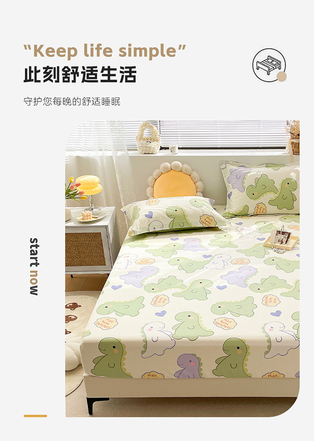 商品名称:绵庭 2023新款 全棉印花床笠 恐龙派对