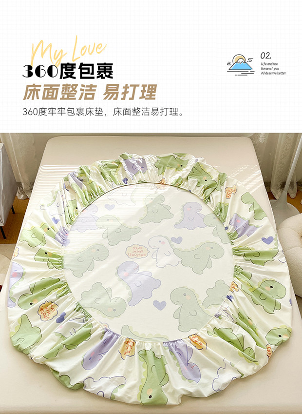 绵庭 2023新款 全棉印花床笠 恐龙派对