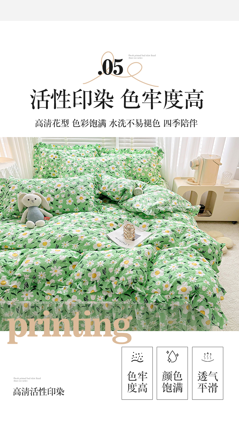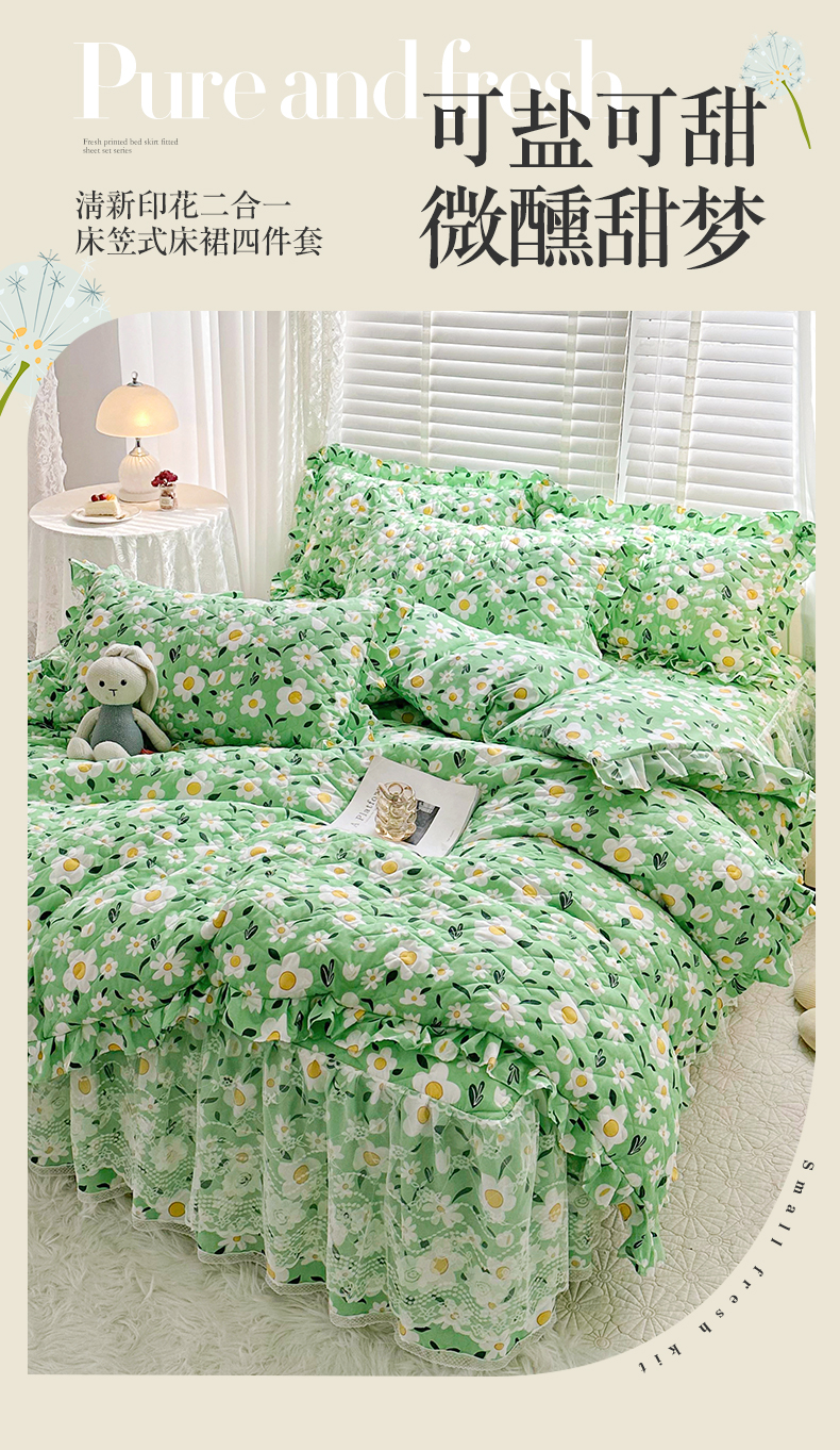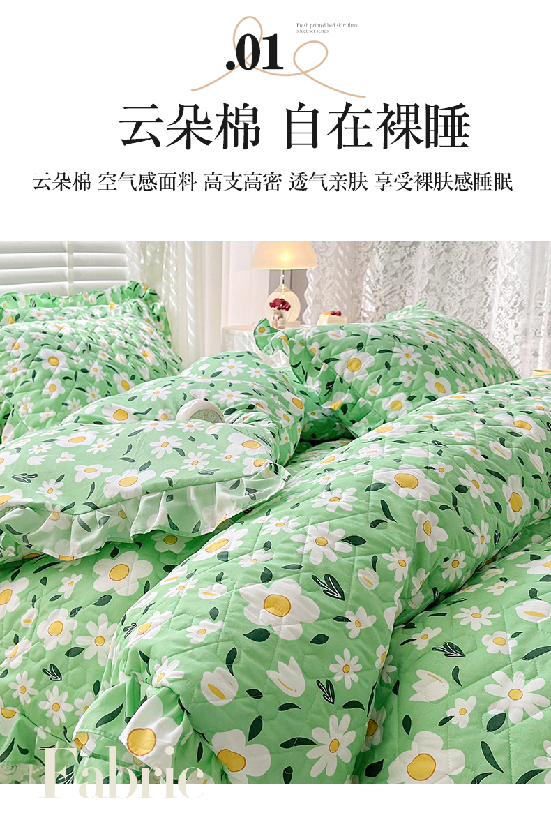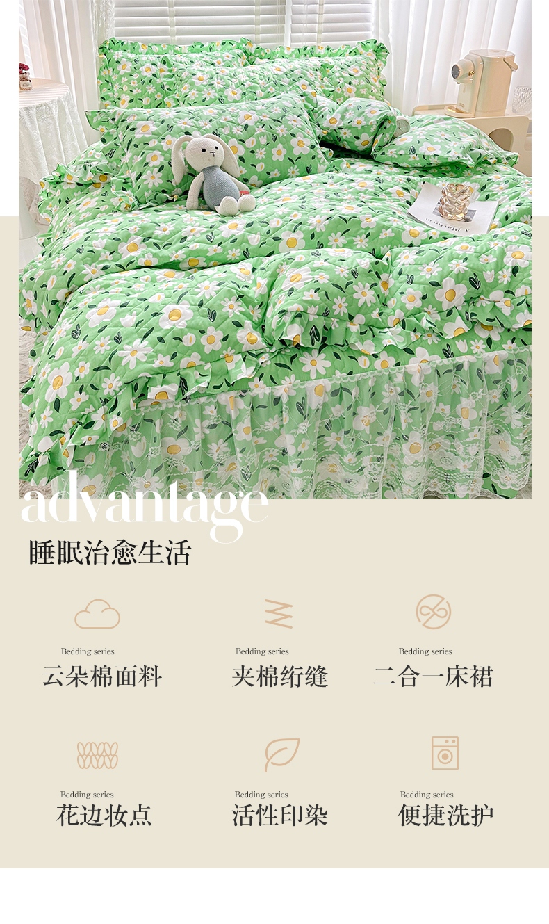 • 91家纺网 家纺一手货源 找家纺 宜凡家纺 2023新款云朵棉床笠式床裙四件套 元气朵朵