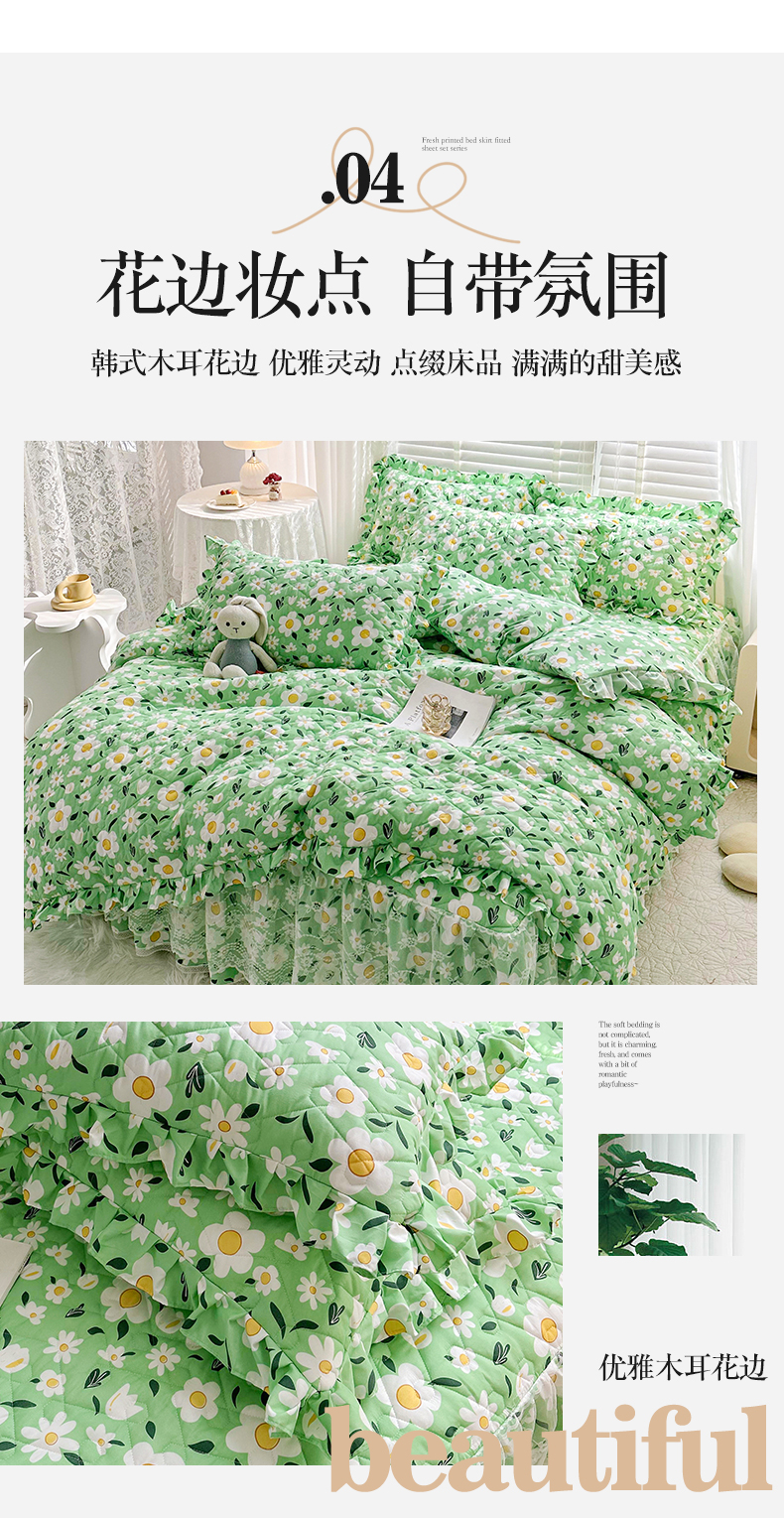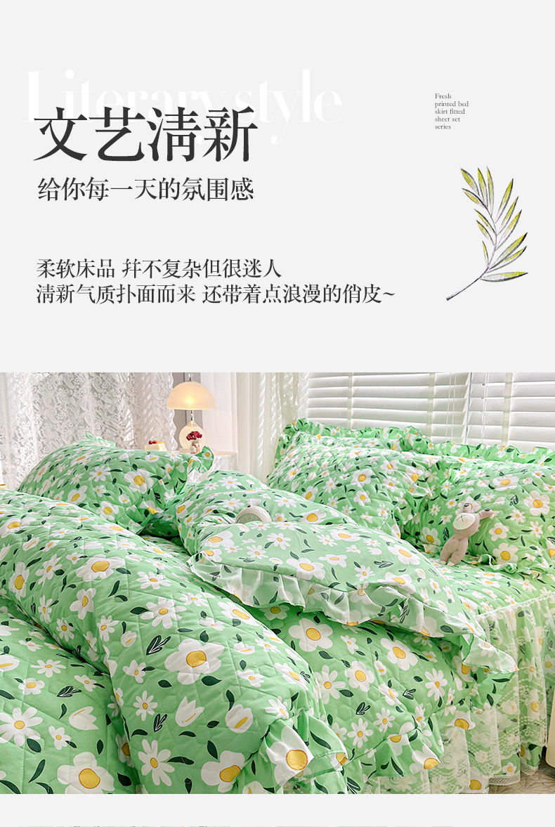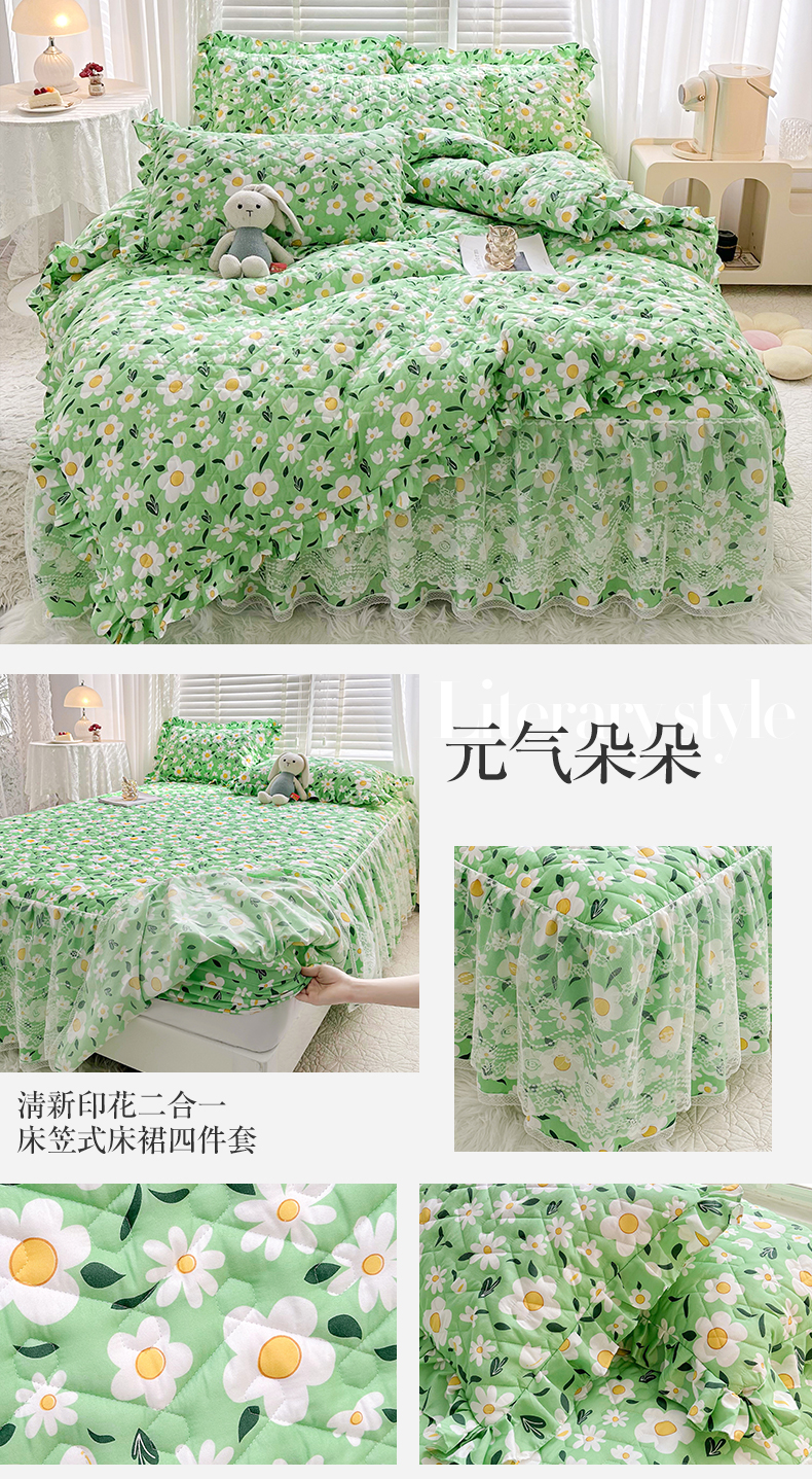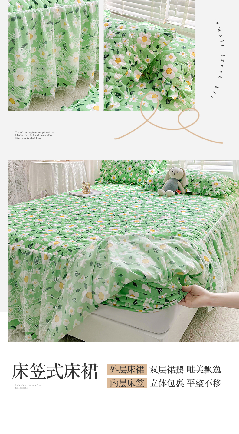 • 91家纺网 家纺一手货源 找家纺 宜凡家纺 2023新款云朵棉床笠式床裙四件套 元气朵朵