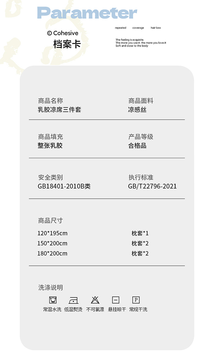 绑带款1.5m床(凉席:150*200cm*1 枕套:48*74cm*2)