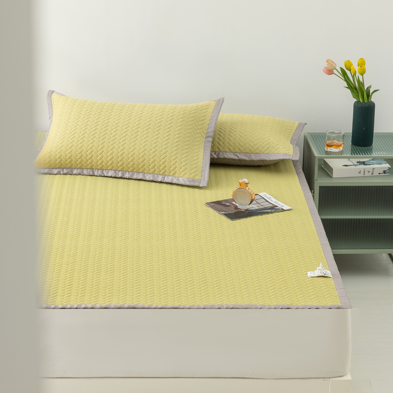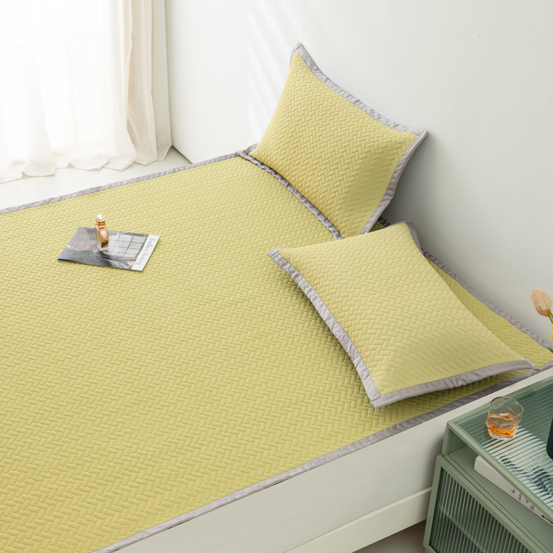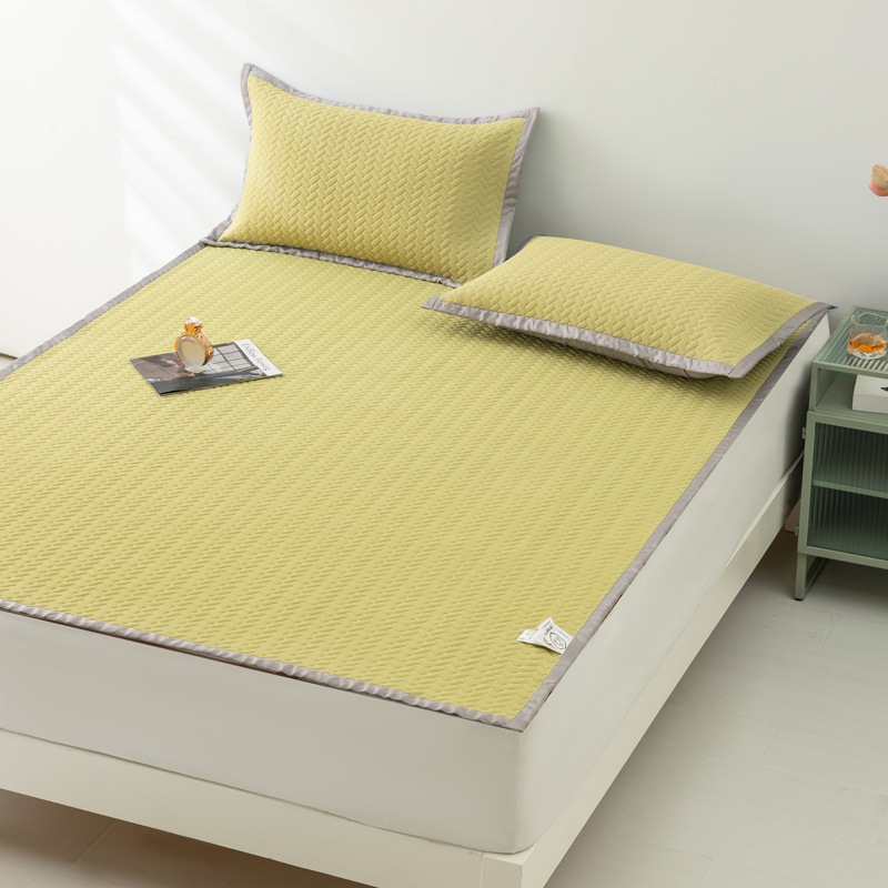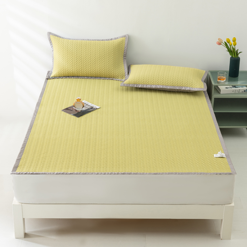 商品名称:CINNY馨宜 2025新款锦氨A类凉感丝0.7乳胶凉席防蚊席三件套 芥末黄