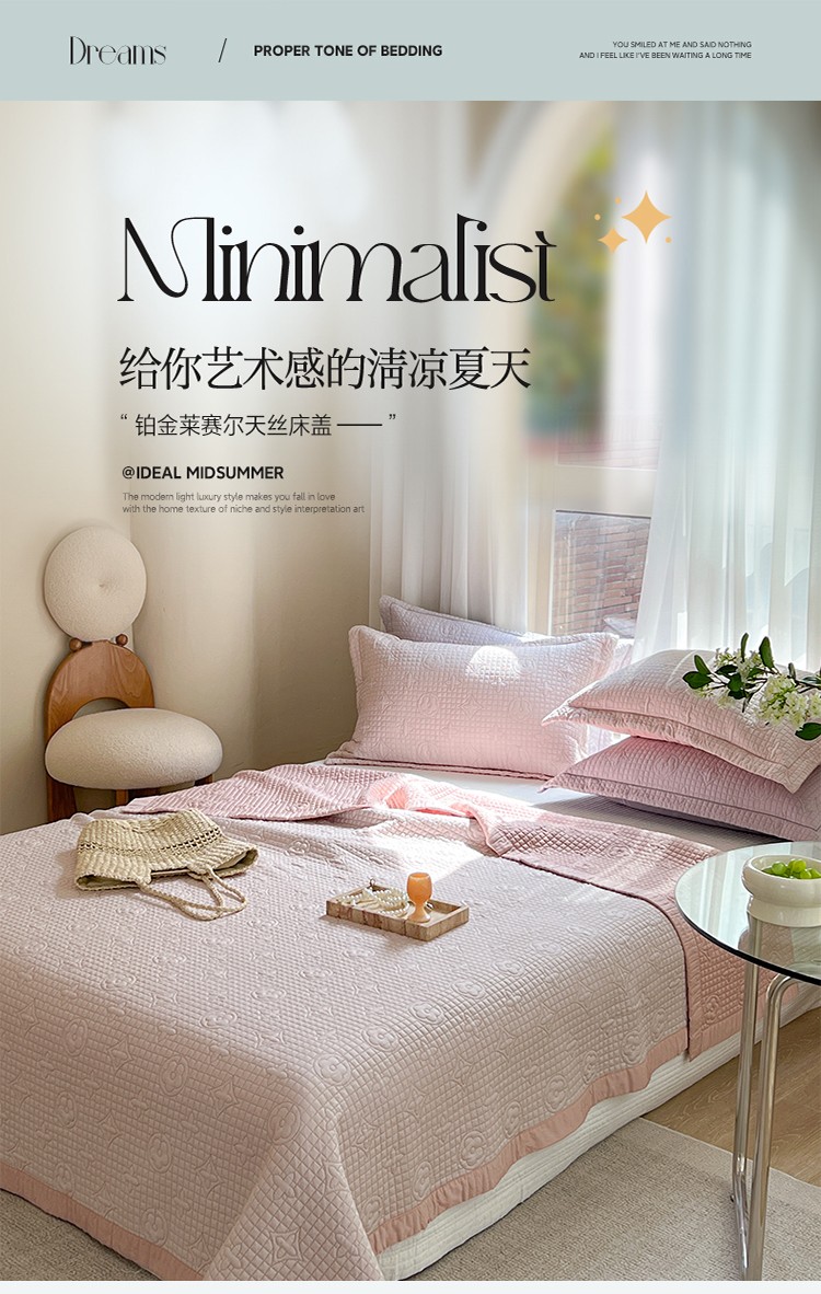 商品名称:琳可家居 2023新款梦巴黎系列双面铂金莱赛尔天丝床盖三件套 少女粉