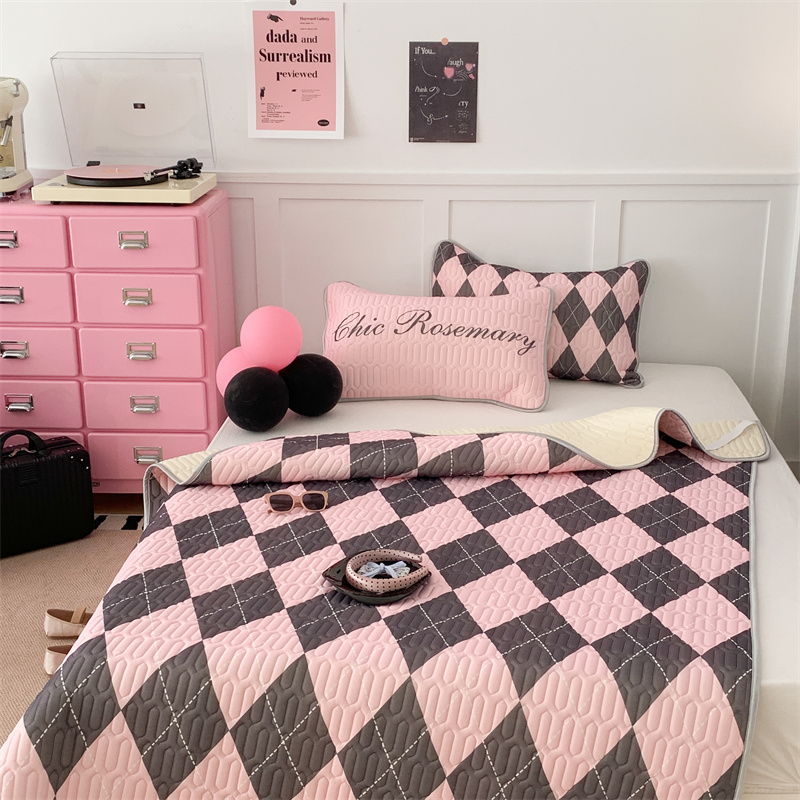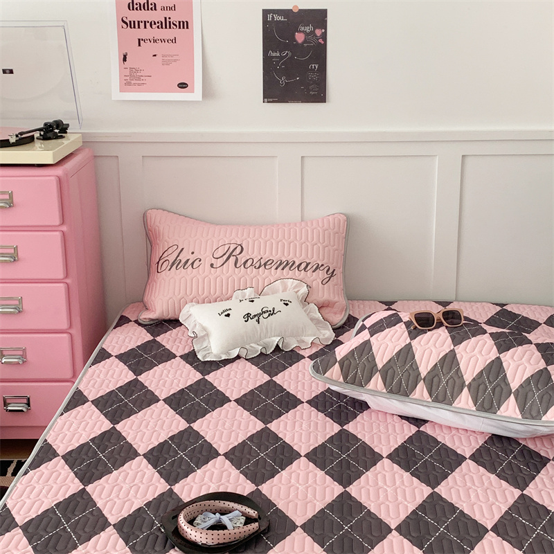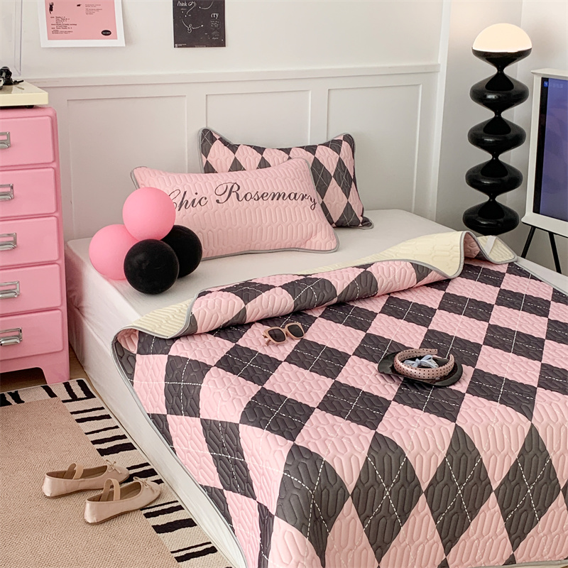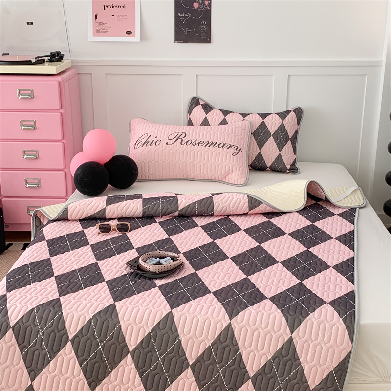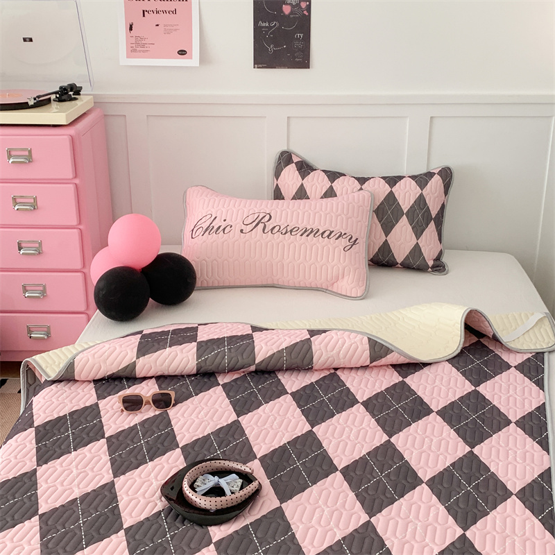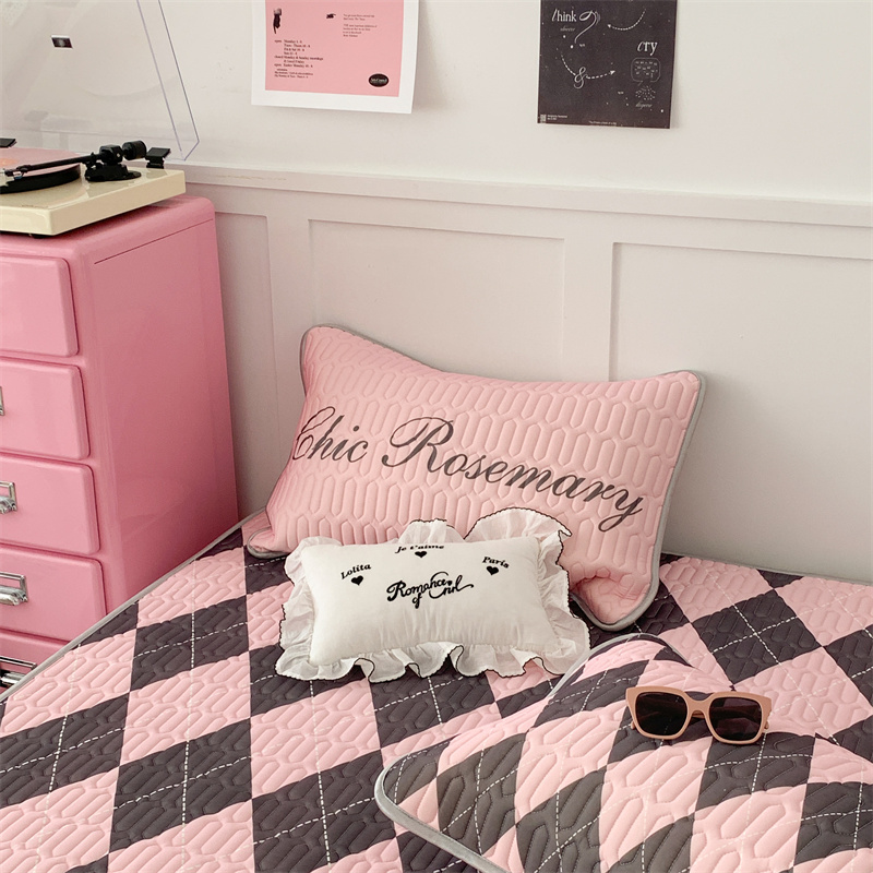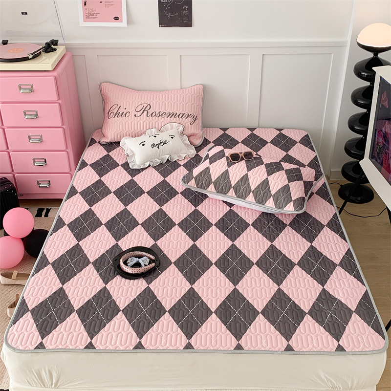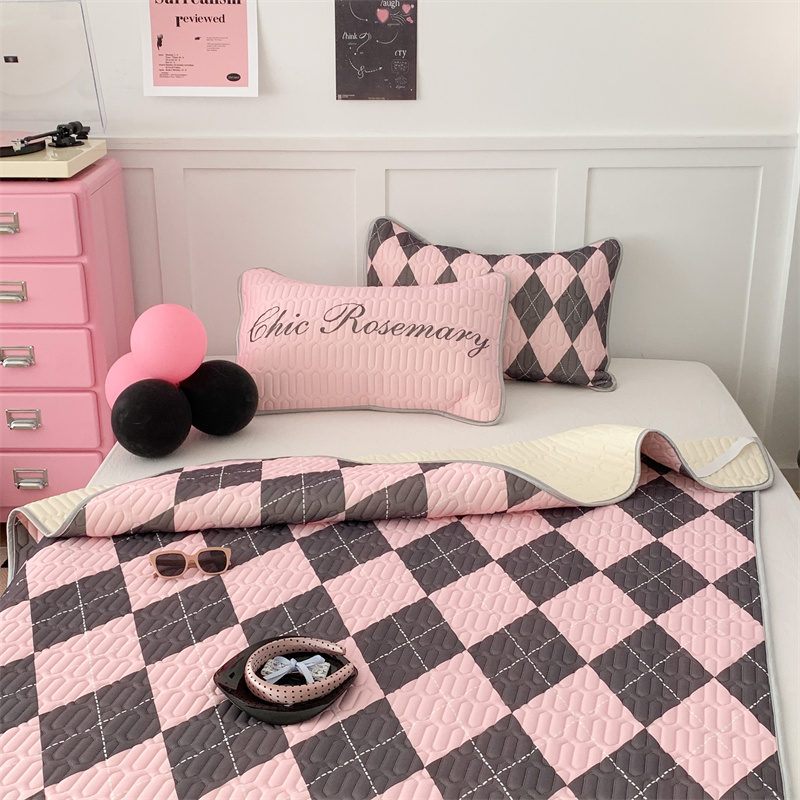 昔可家纺 2023新款甜酷黑粉系列乳胶凉席 学院菱格黑粉色