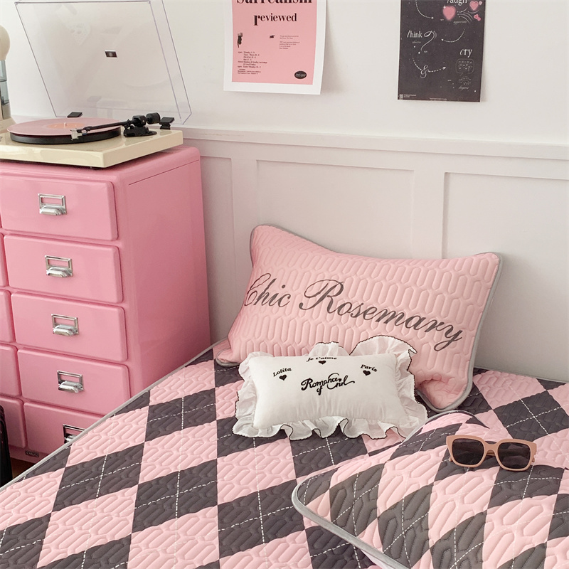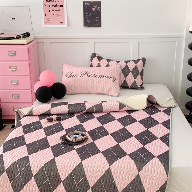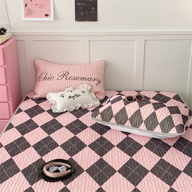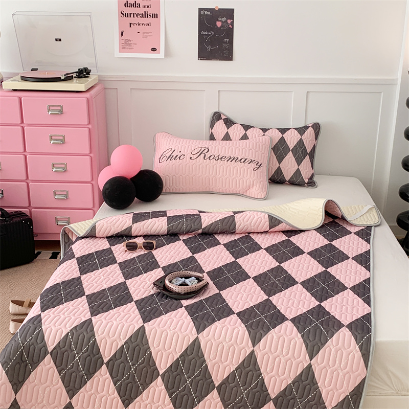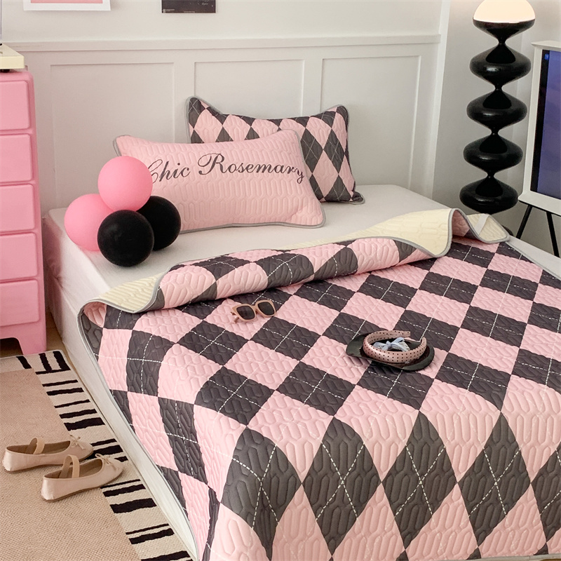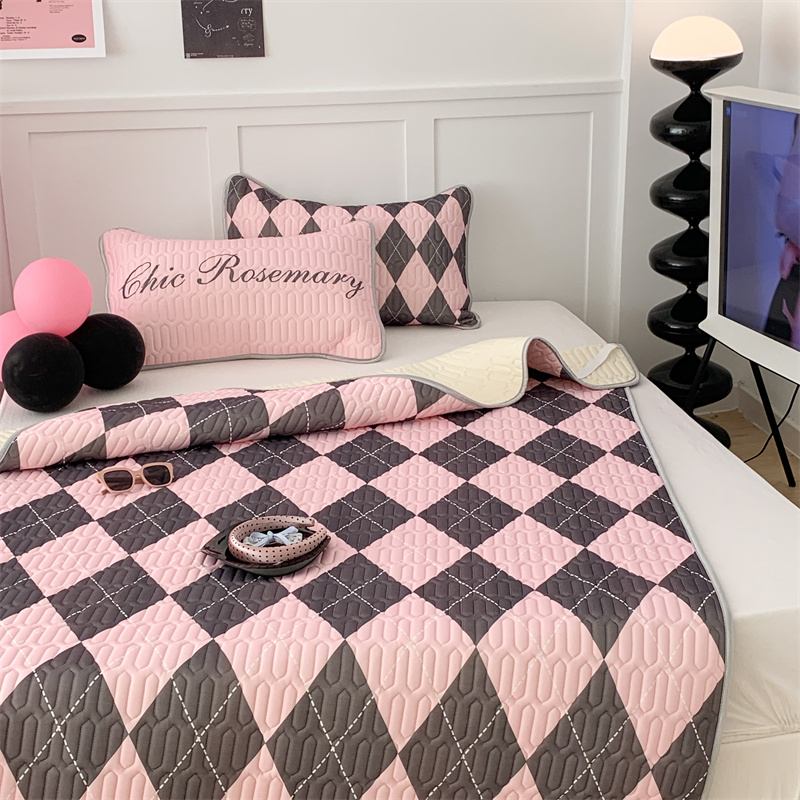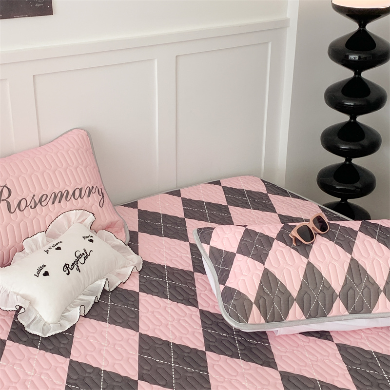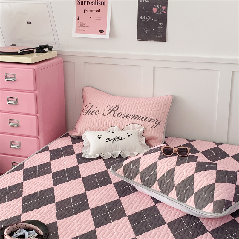 昔可家纺 2023新款甜酷黑粉系列乳胶凉席 学院菱格黑粉色