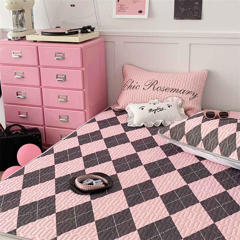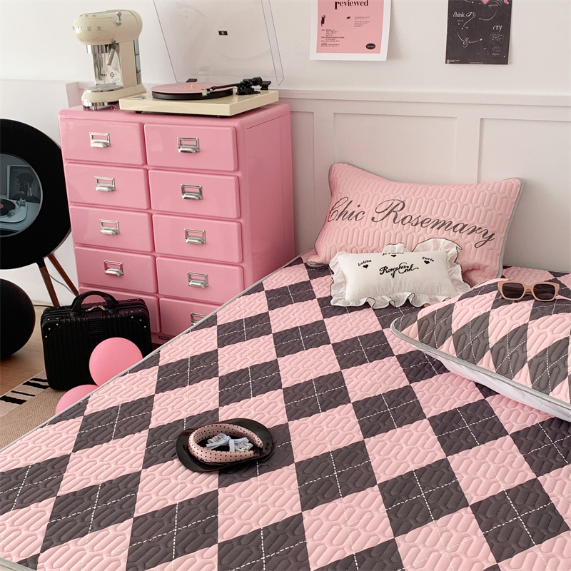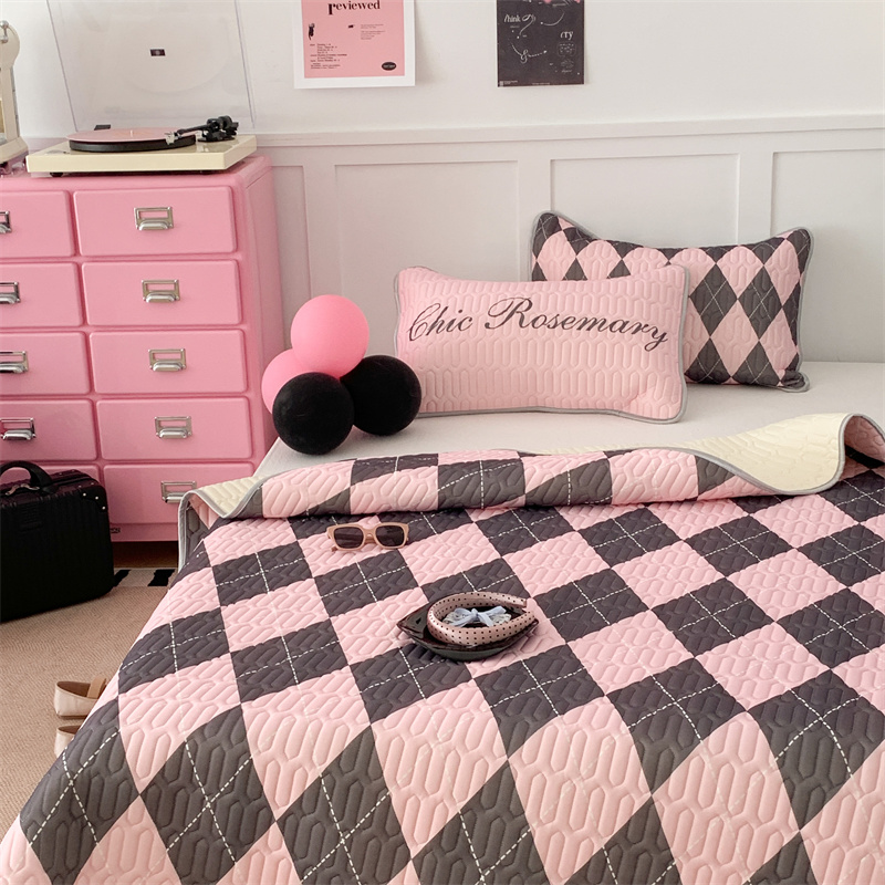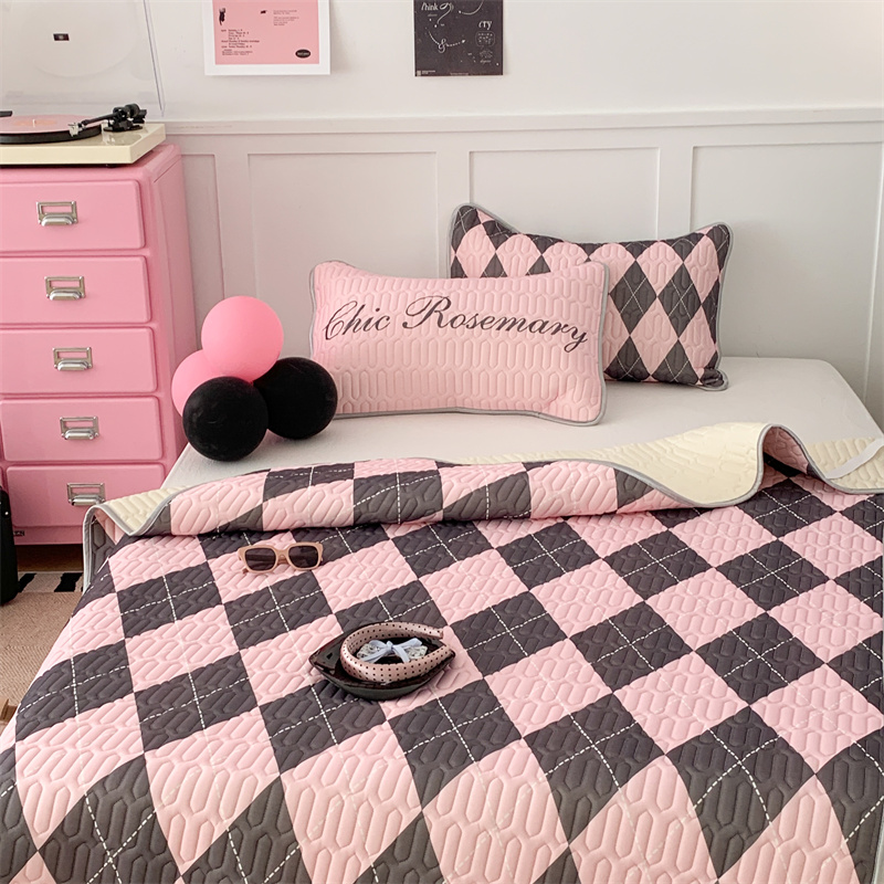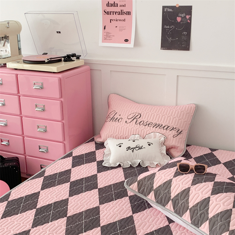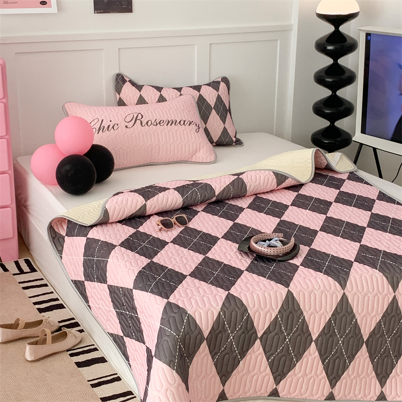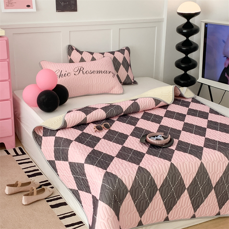 昔可家纺 2023新款甜酷黑粉系列乳胶凉席 学院菱格黑粉色